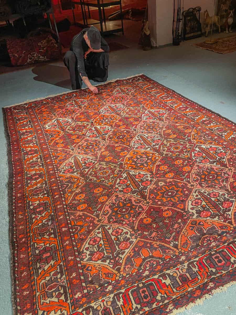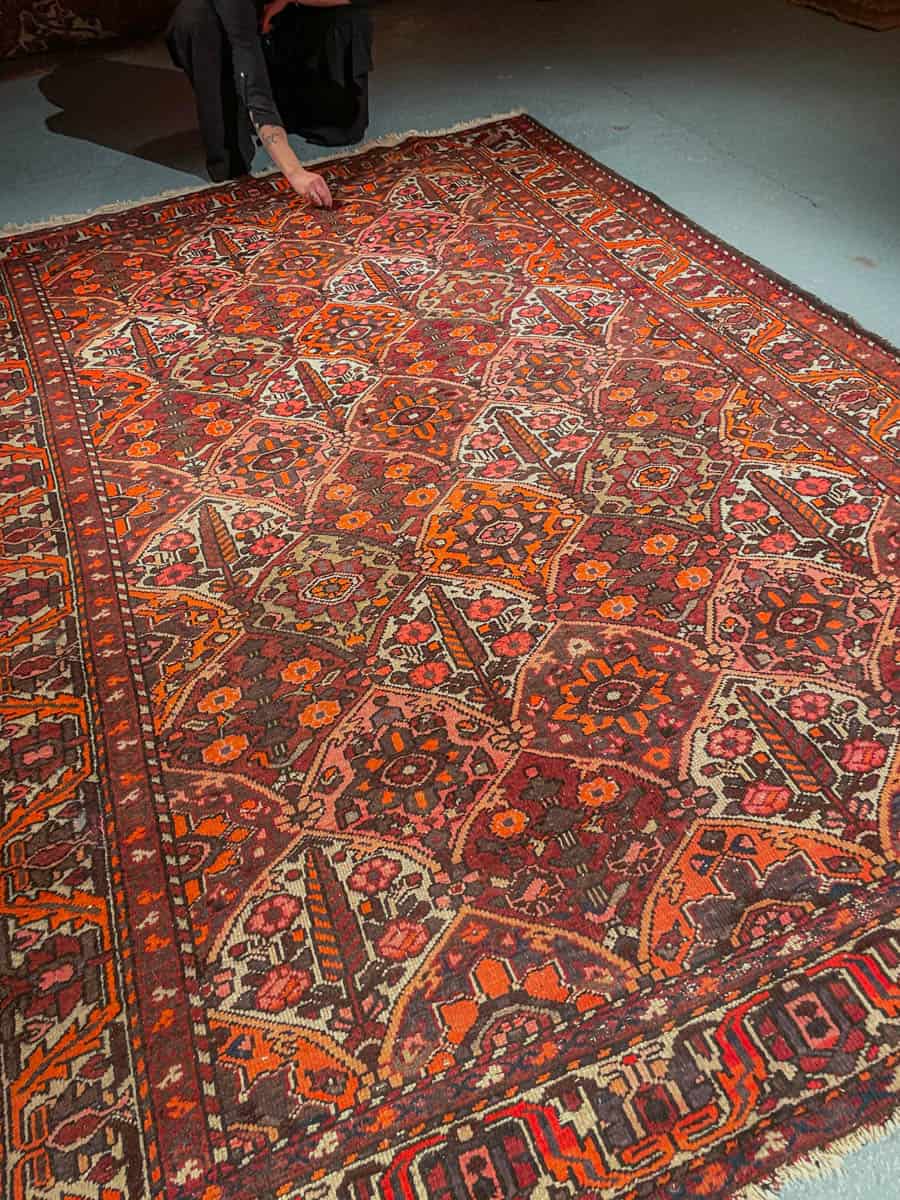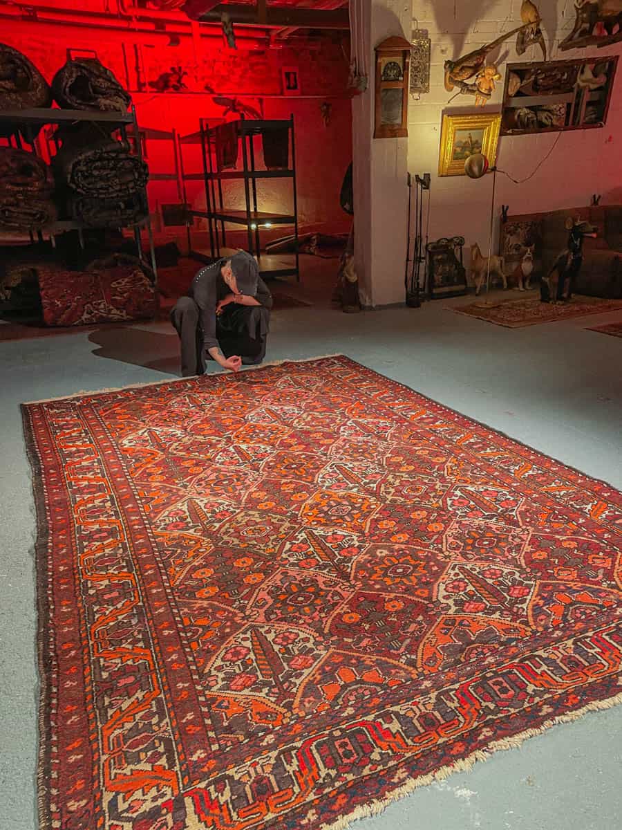 Tämä matto sijaitsee Galleriallamme osoitteessa Kankurinkatu 7, Punavuori – jos haluat tulla katsomaan sitä paikan päälle, sovithan näytön viestitse tai puhelimitse.