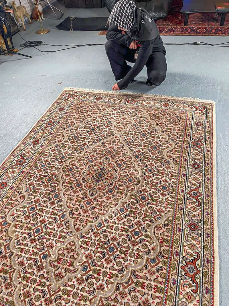 Tämä matto sijaitsee Galleriallamme osoitteessa Kankurinkatu 7, Punavuori – jos haluat tulla katsomaan sitä paikan päälle, sovithan näytön viestitse tai puhelimitse.