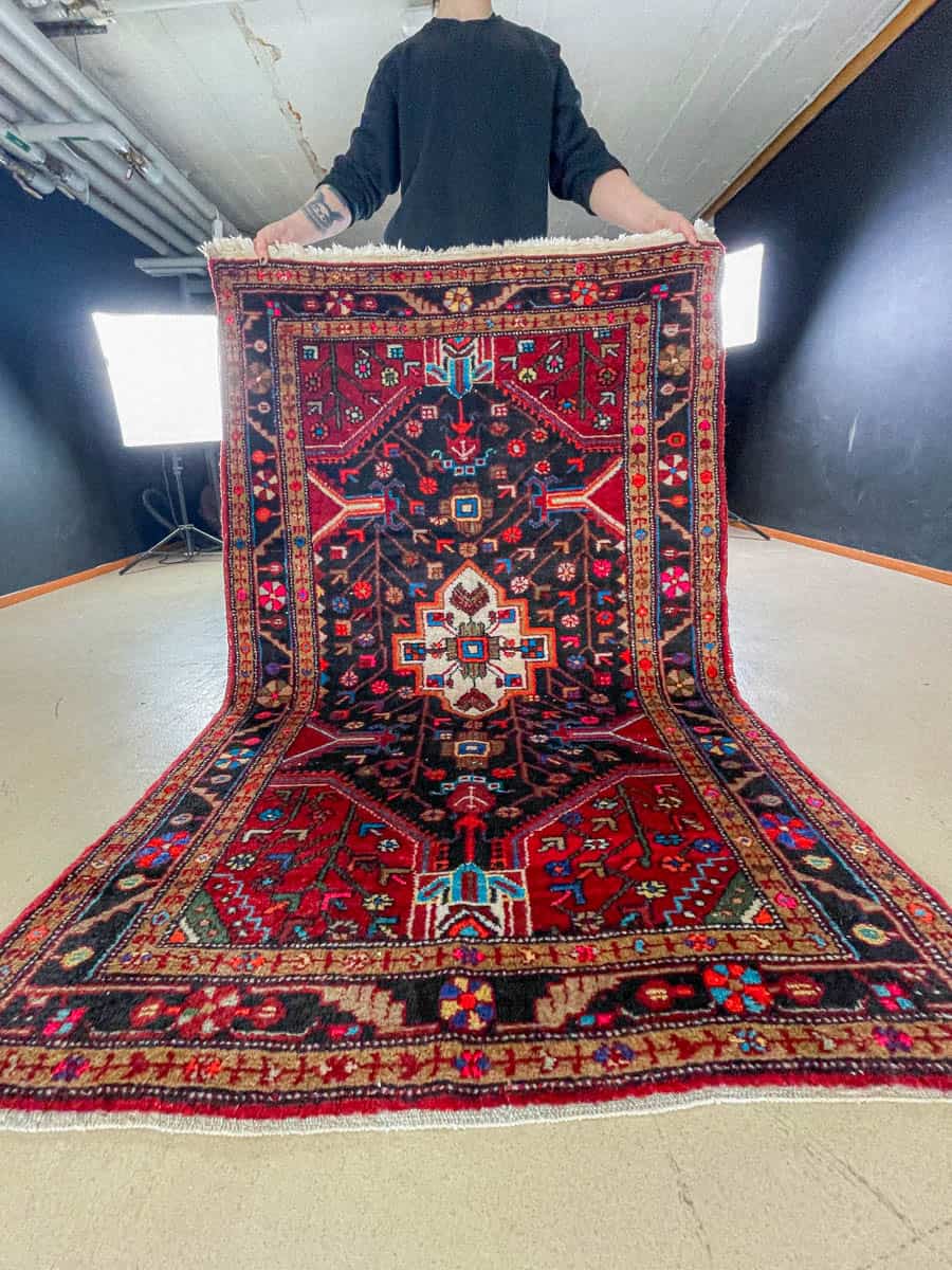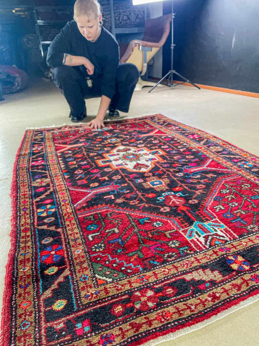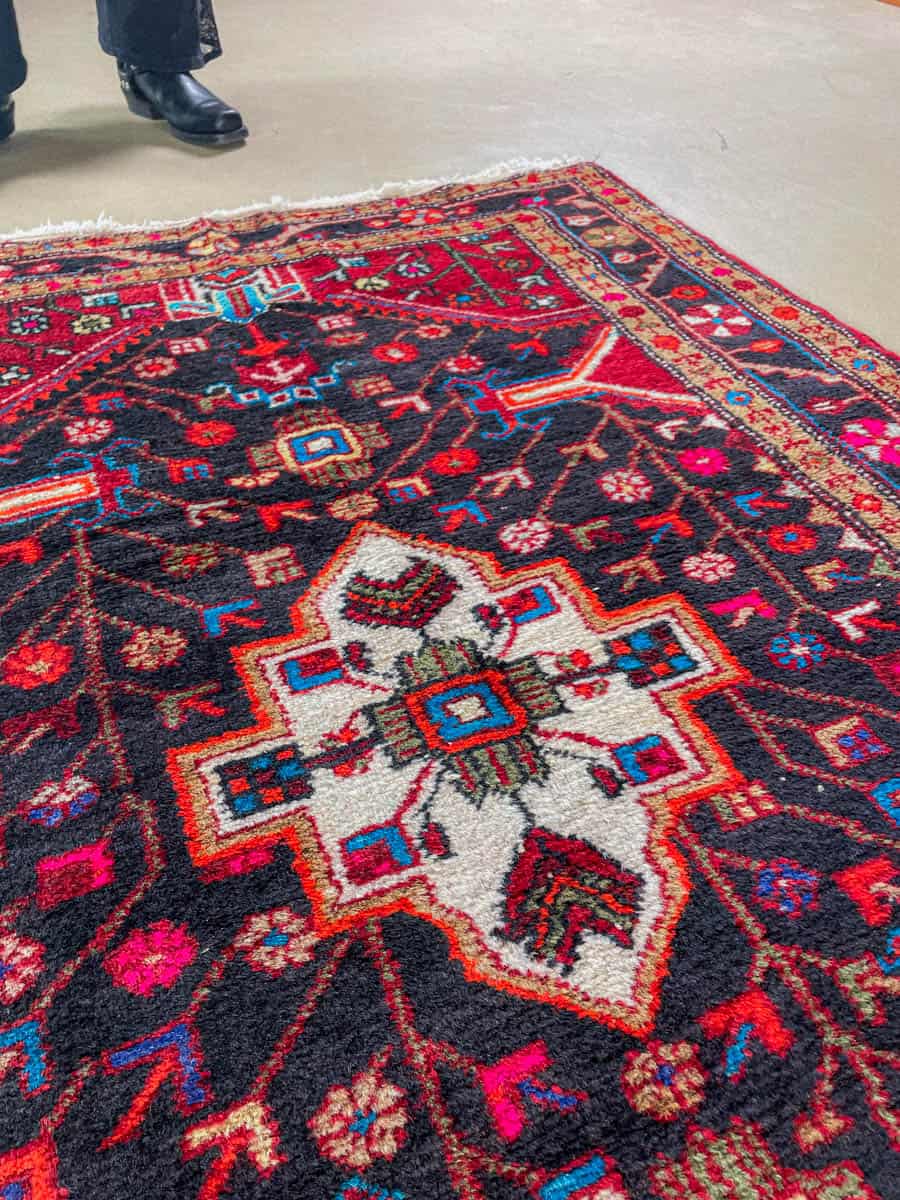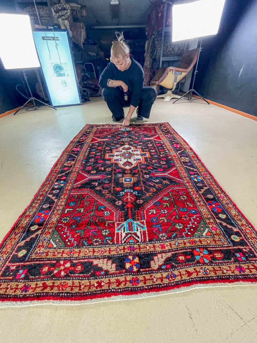 Tämä matto sijaitsee Galleriallamme osoitteessa Kankurinkatu 7, Punavuori – jos haluat tulla katsomaan sitä paikan päälle, sovithan näytön viestitse tai puhelimitse.