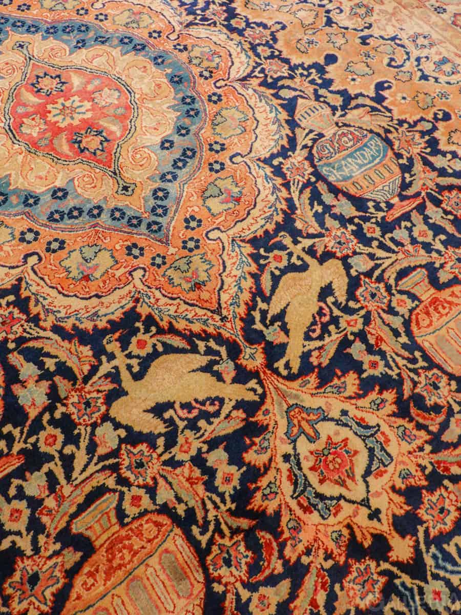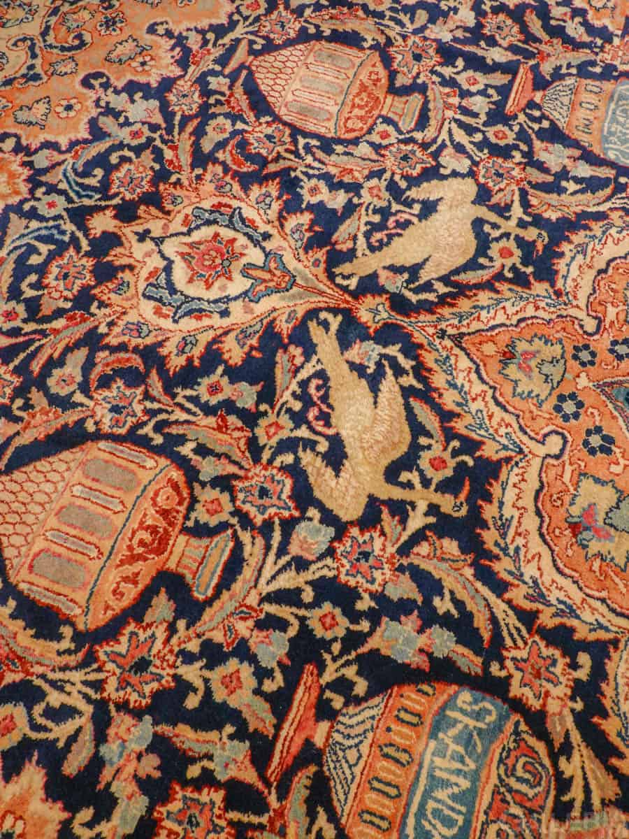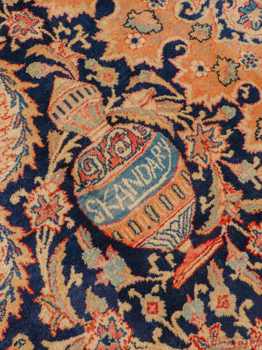 Todella näyttävä Kashmar yksityiskohtaisella kuvioinnilla. Kauniin tummansinisellä keskikentällä lepää Kashmar-tyylille ominaisia vaaseja ja kasvimotiiveja.