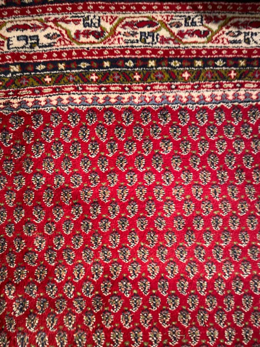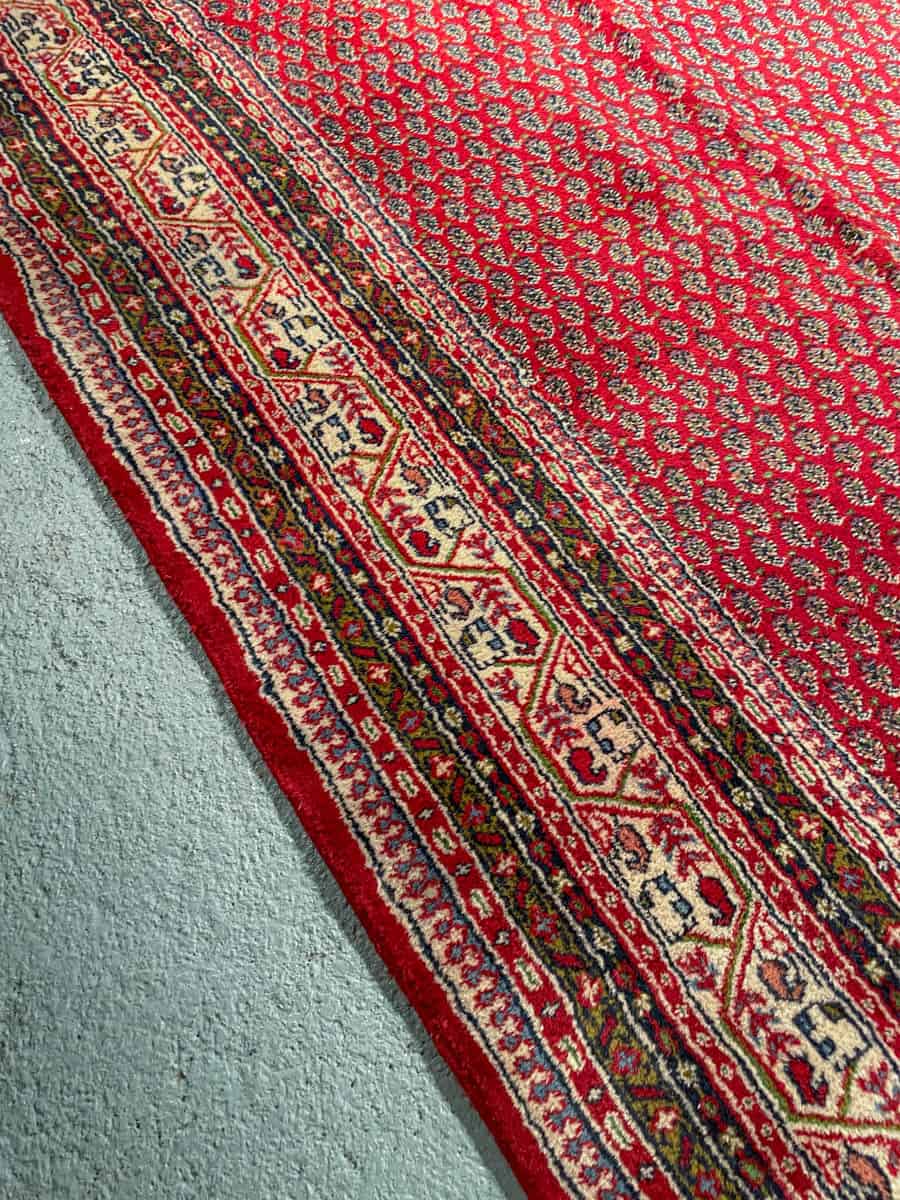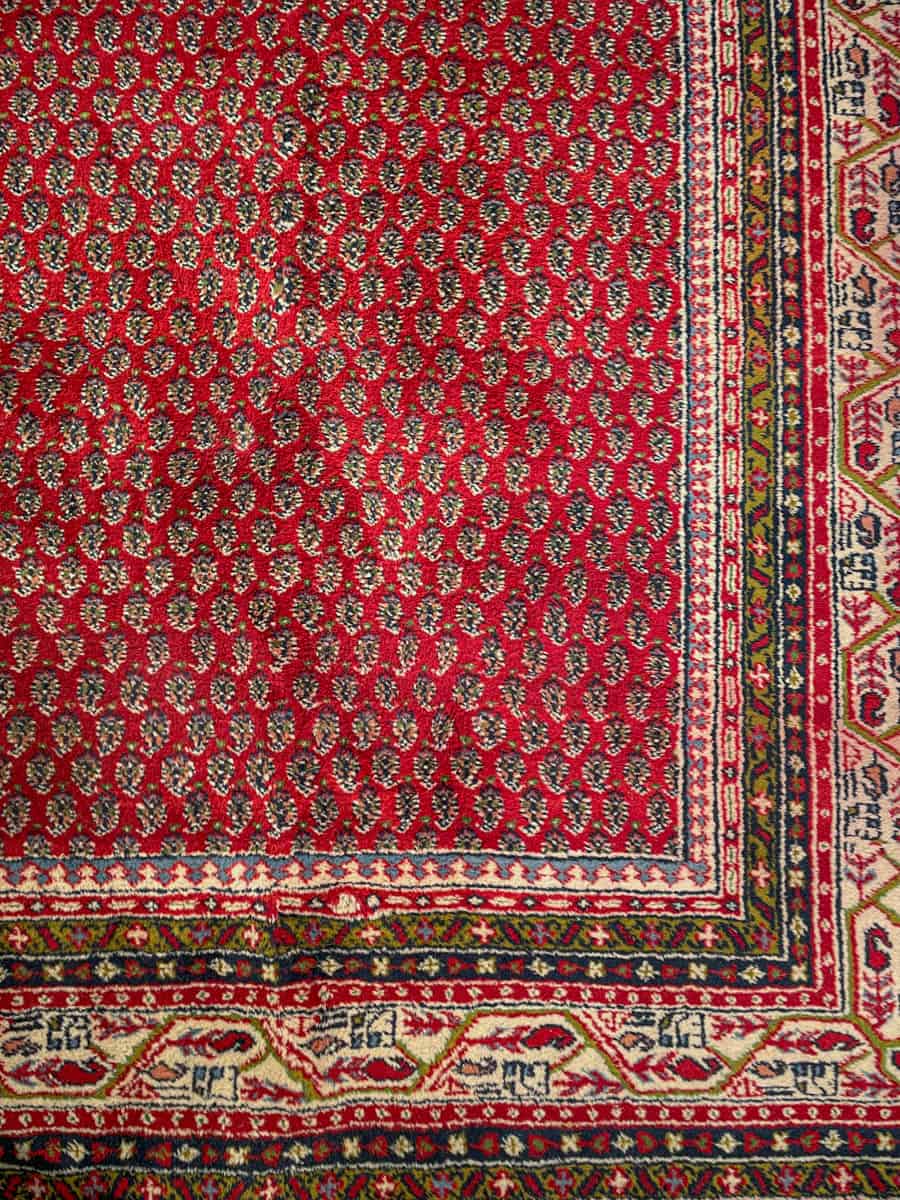 Upea perinteisen punainen käsinsolmittu persialainen Sarouk Mir -villamatto.
