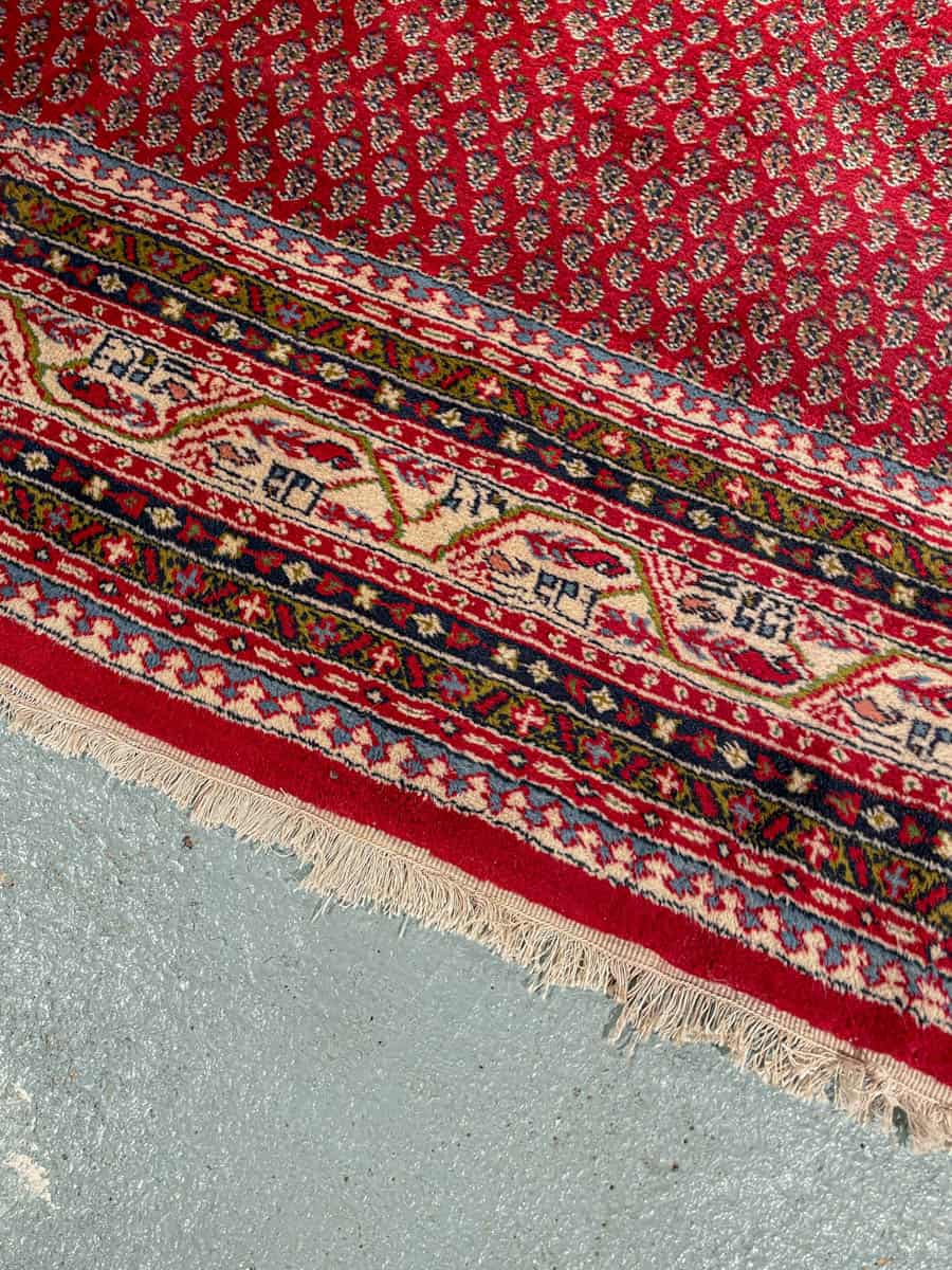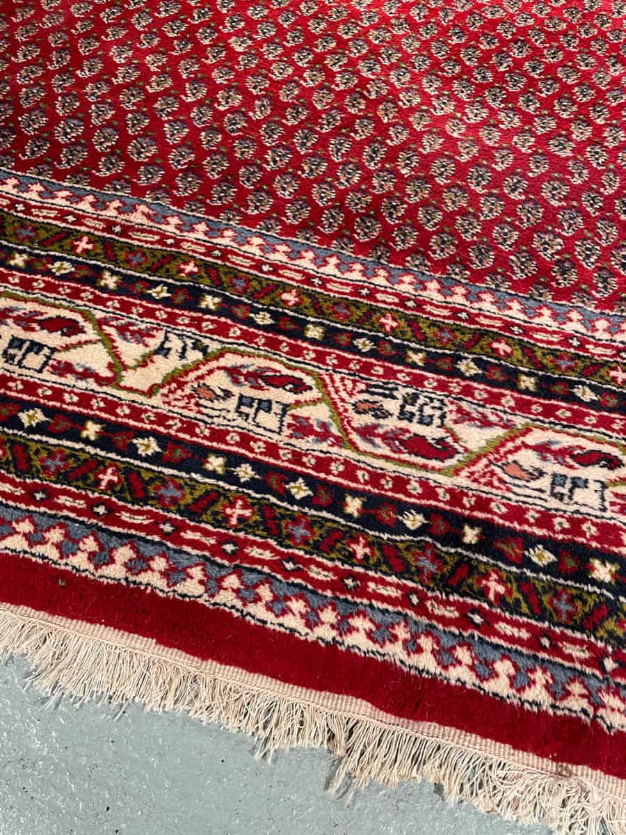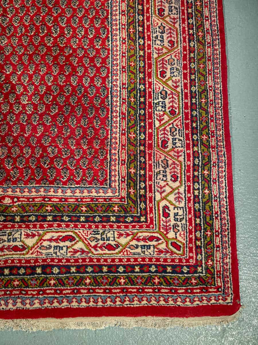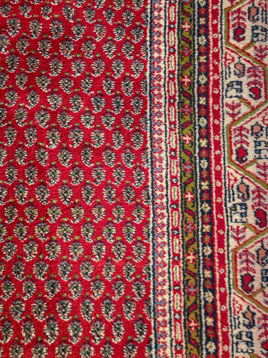 Upea perinteisen punainen käsinsolmittu persialainen Sarouk Mir -villamatto.