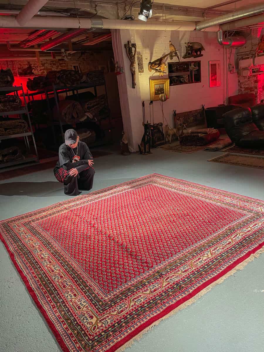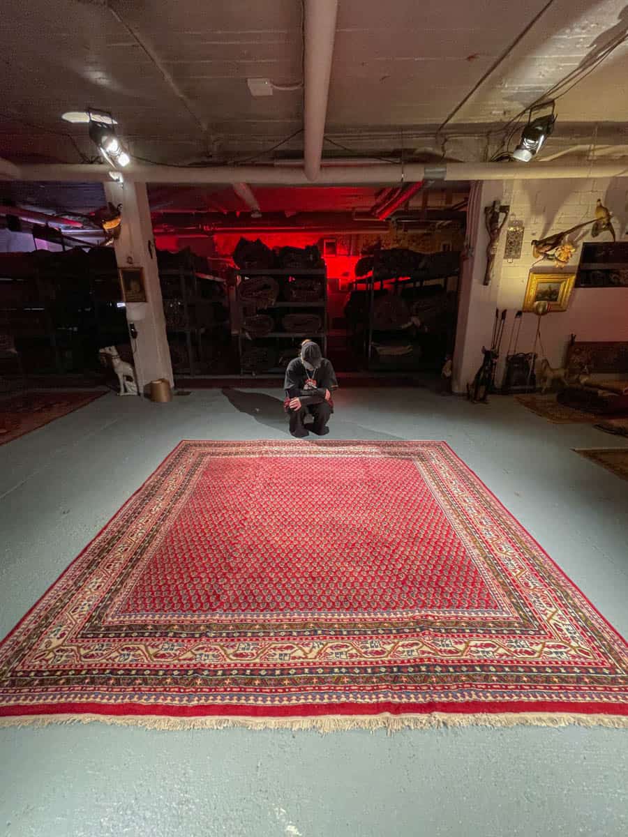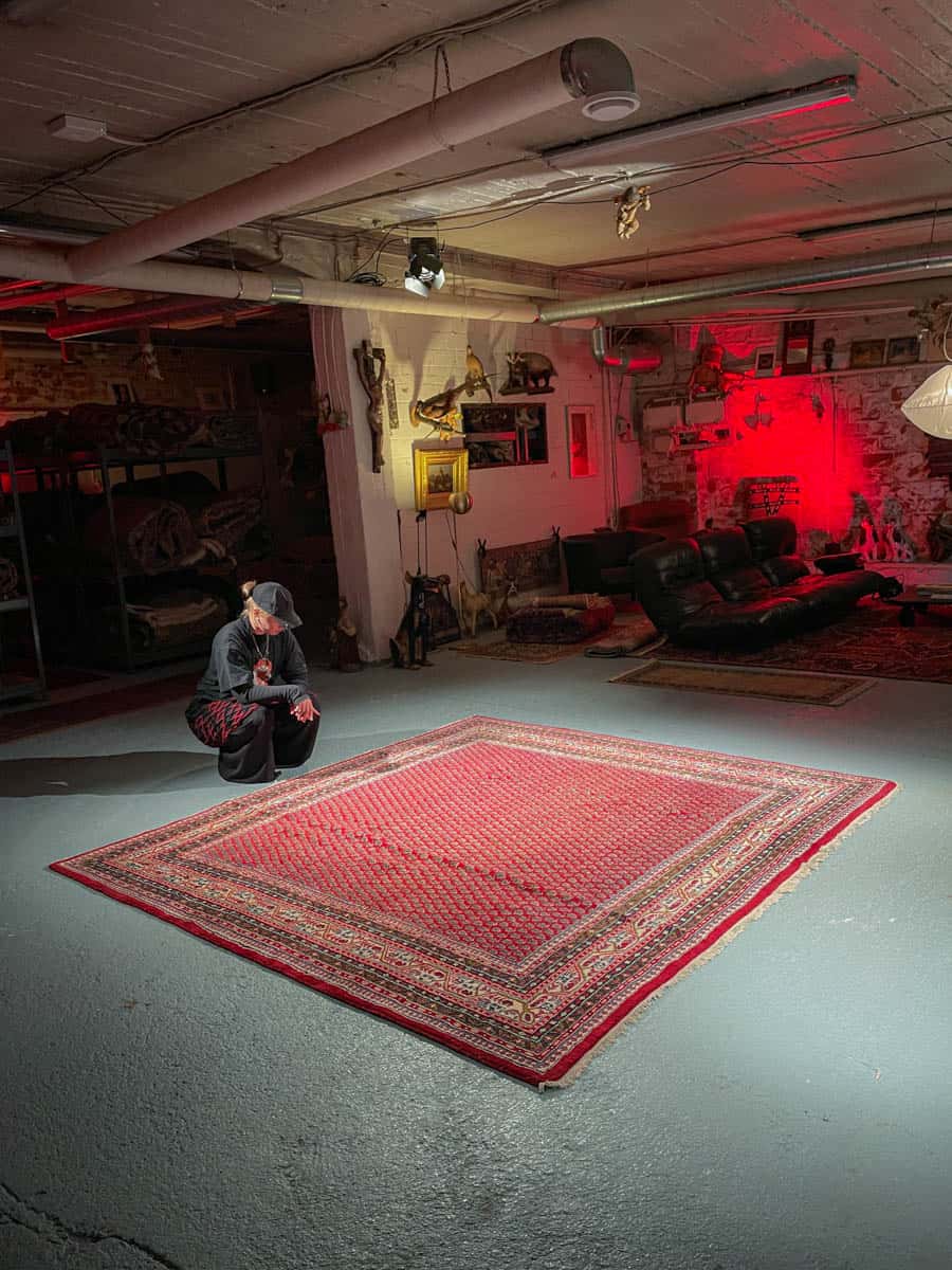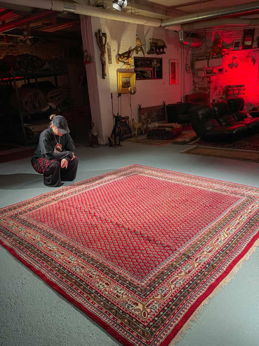 Tämä matto sijaitsee Galleriallamme osoitteessa Kankurinkatu 7, Punavuori – jos haluat tulla katsomaan sitä paikan päälle, sovithan näytön viestitse tai puhelimitse.