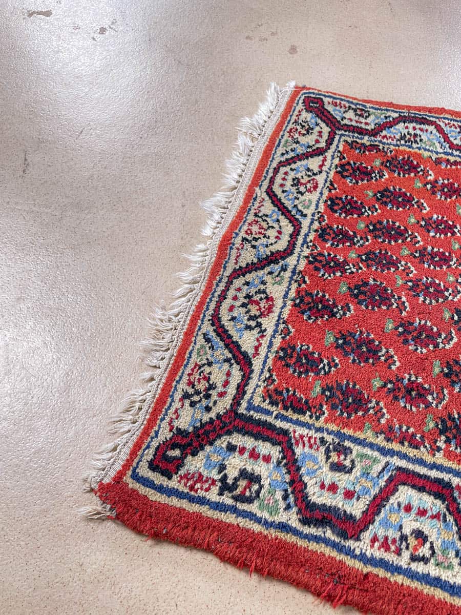 Sympaattinen pieni Sarouk Mir oranssilla pohjalla. Käsinsolmittu villasta.
