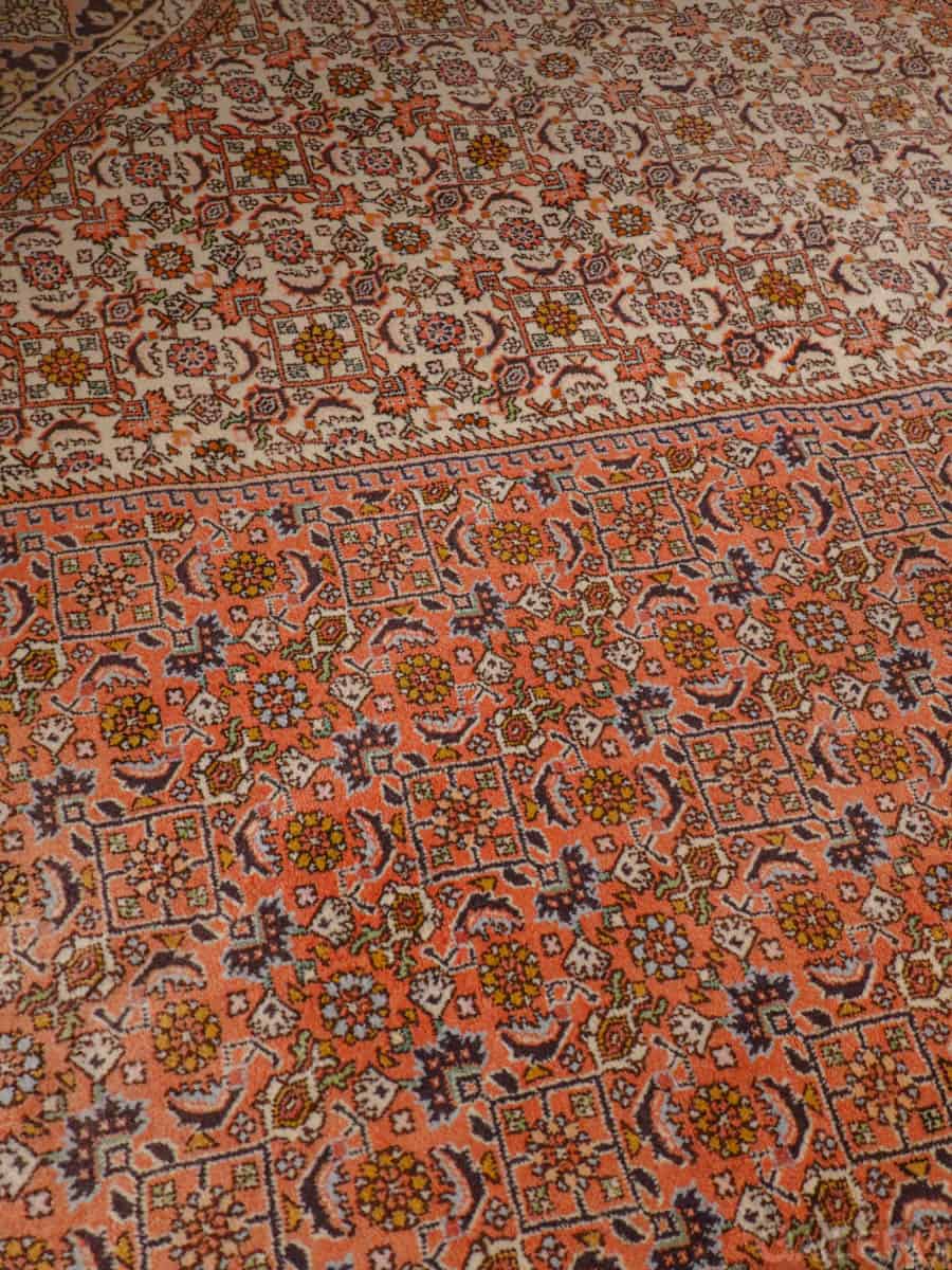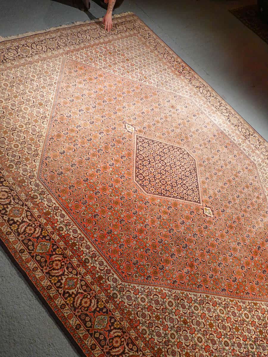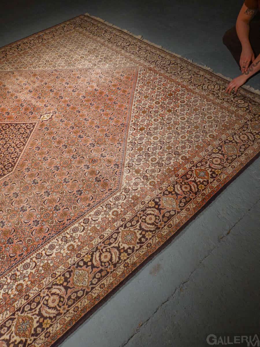 Tyylikäs persialainen Bijar, jossa rauhallisen elegantti värimaailma. Kuvioinnissa toistuu perinteinen Herati-kuviointi.