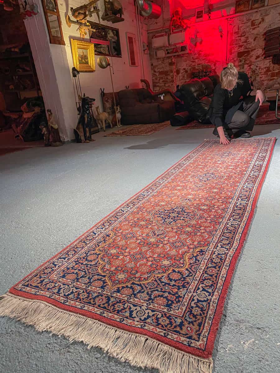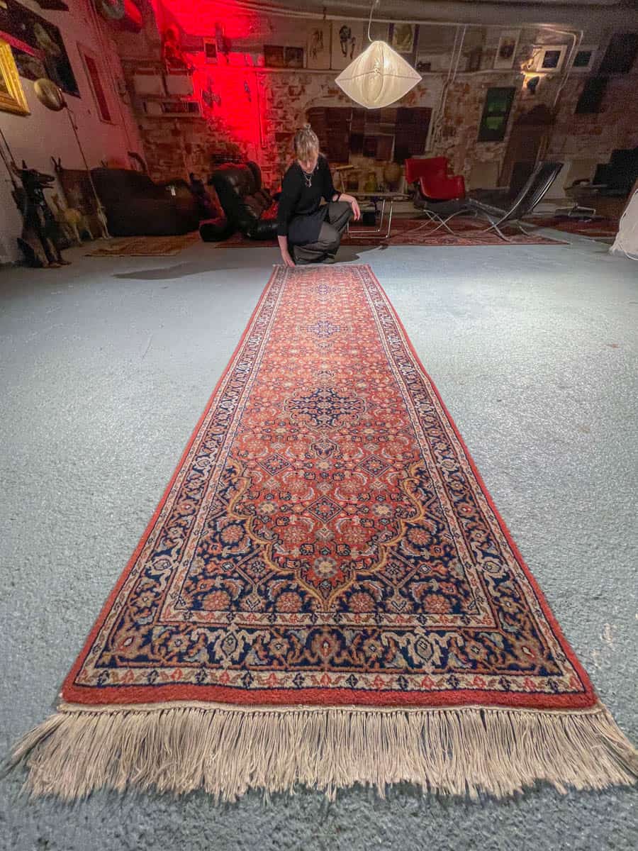 Tämä matto sijaitsee Galleriallamme osoitteessa Kankurinkatu 7, Punavuori – jos haluat tulla katsomaan sitä paikan päälle, sovithan näytön viestitse tai puhelimitse.