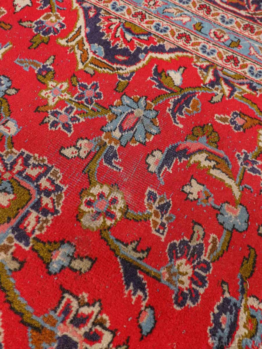 Käsinsolmittu perinteiseen persialaiseen tyyliin. Upea yksityiskohtainen Keshan-kuviointi ja punainen väritys. Käsinsolmittu villasta.