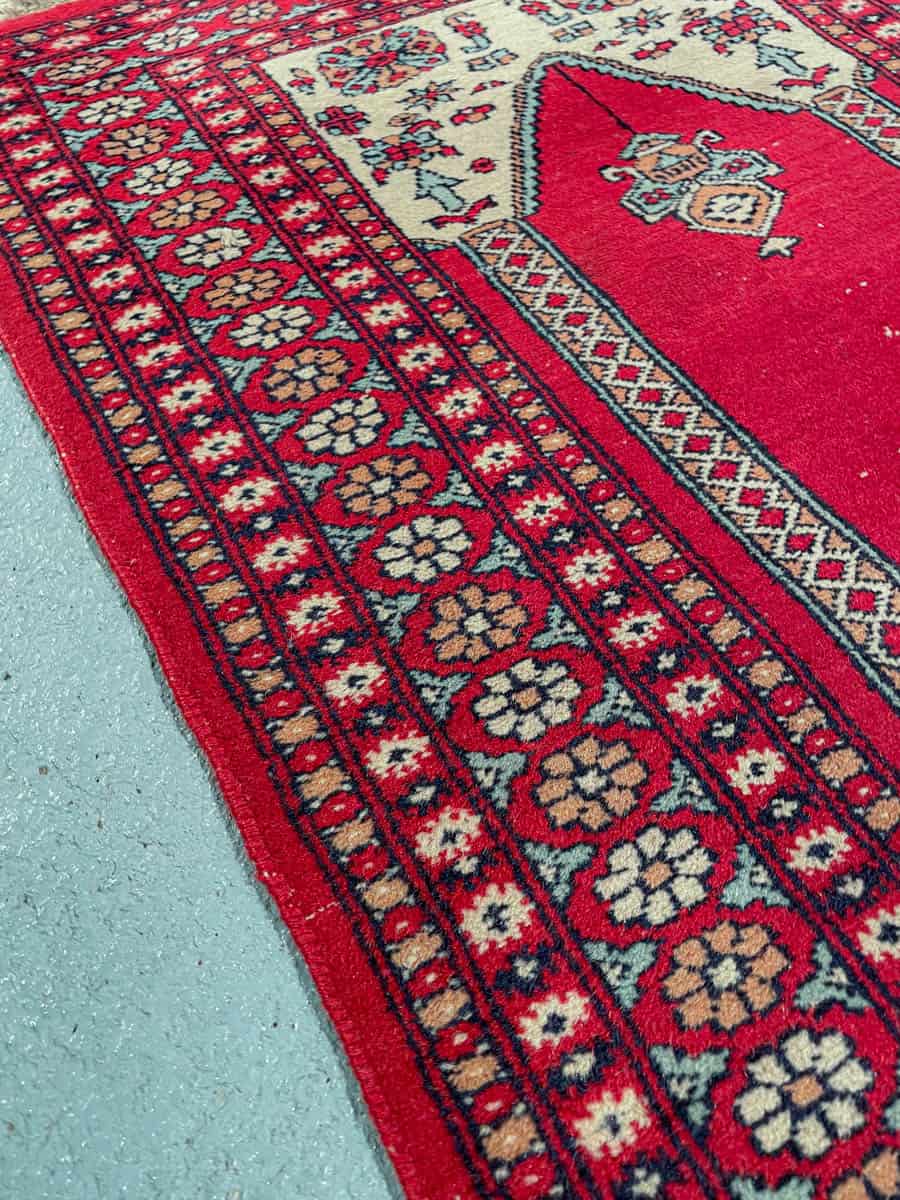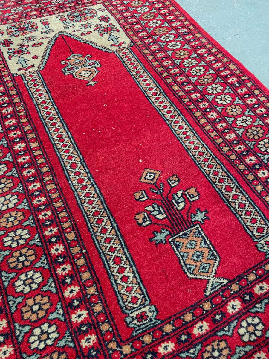 Perinteinen Hamadan geometrisella kuvioinnilla ja punaisella väriteemalla. Käsinsolmittu villasta.