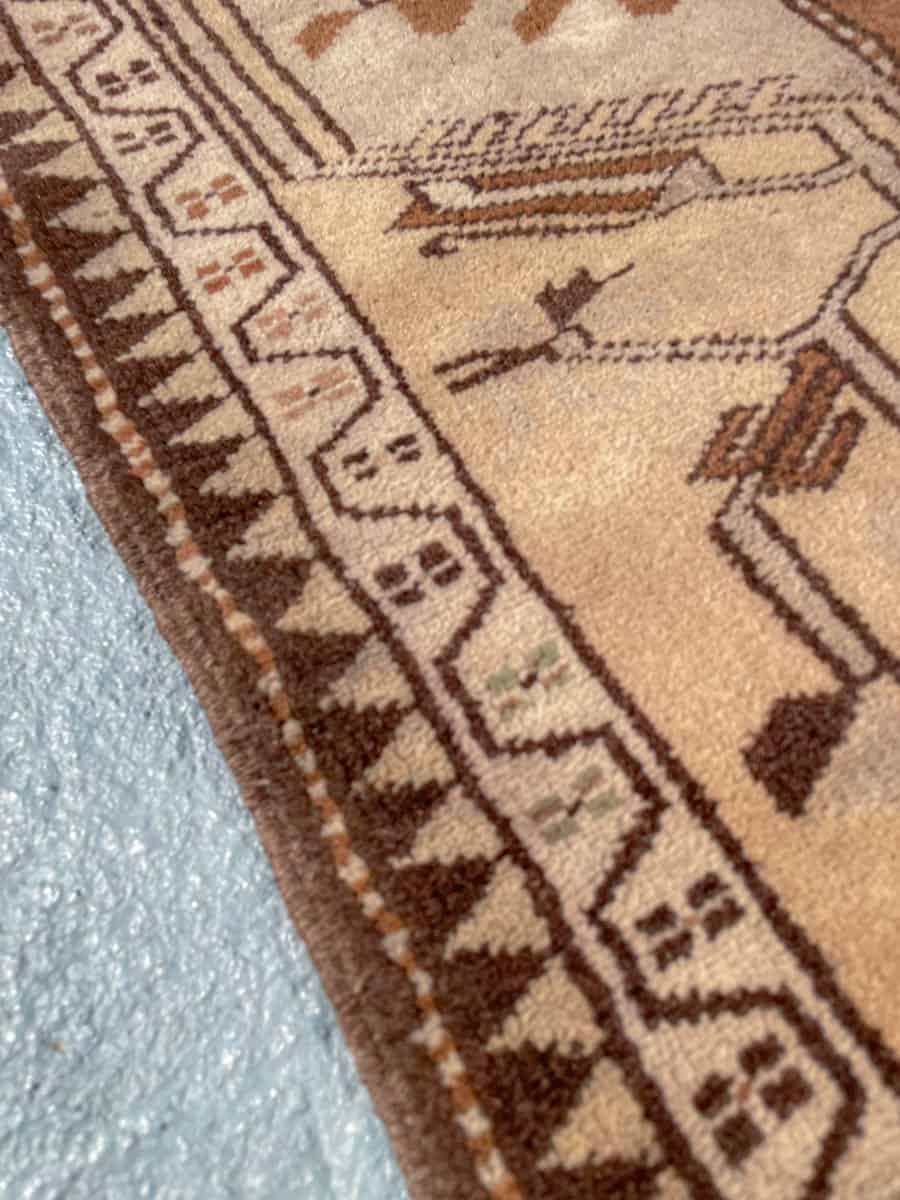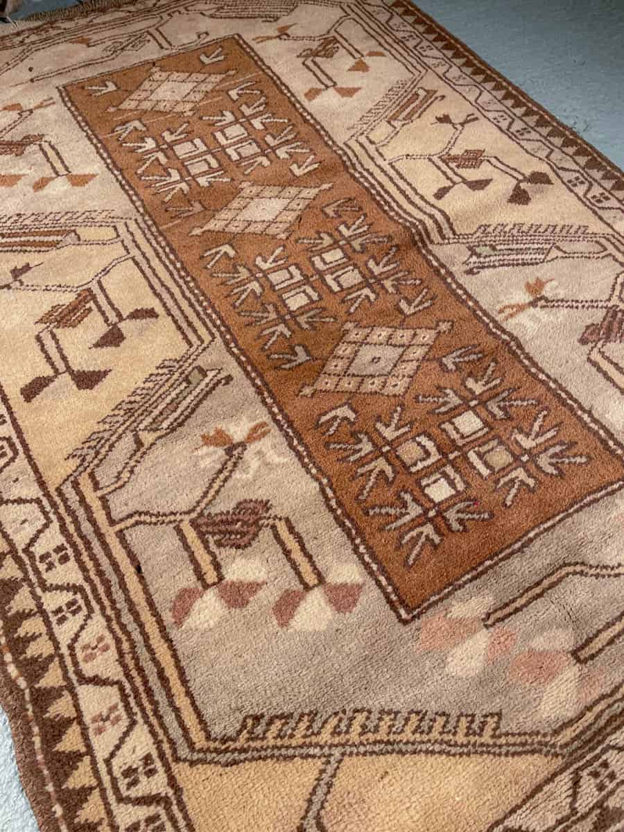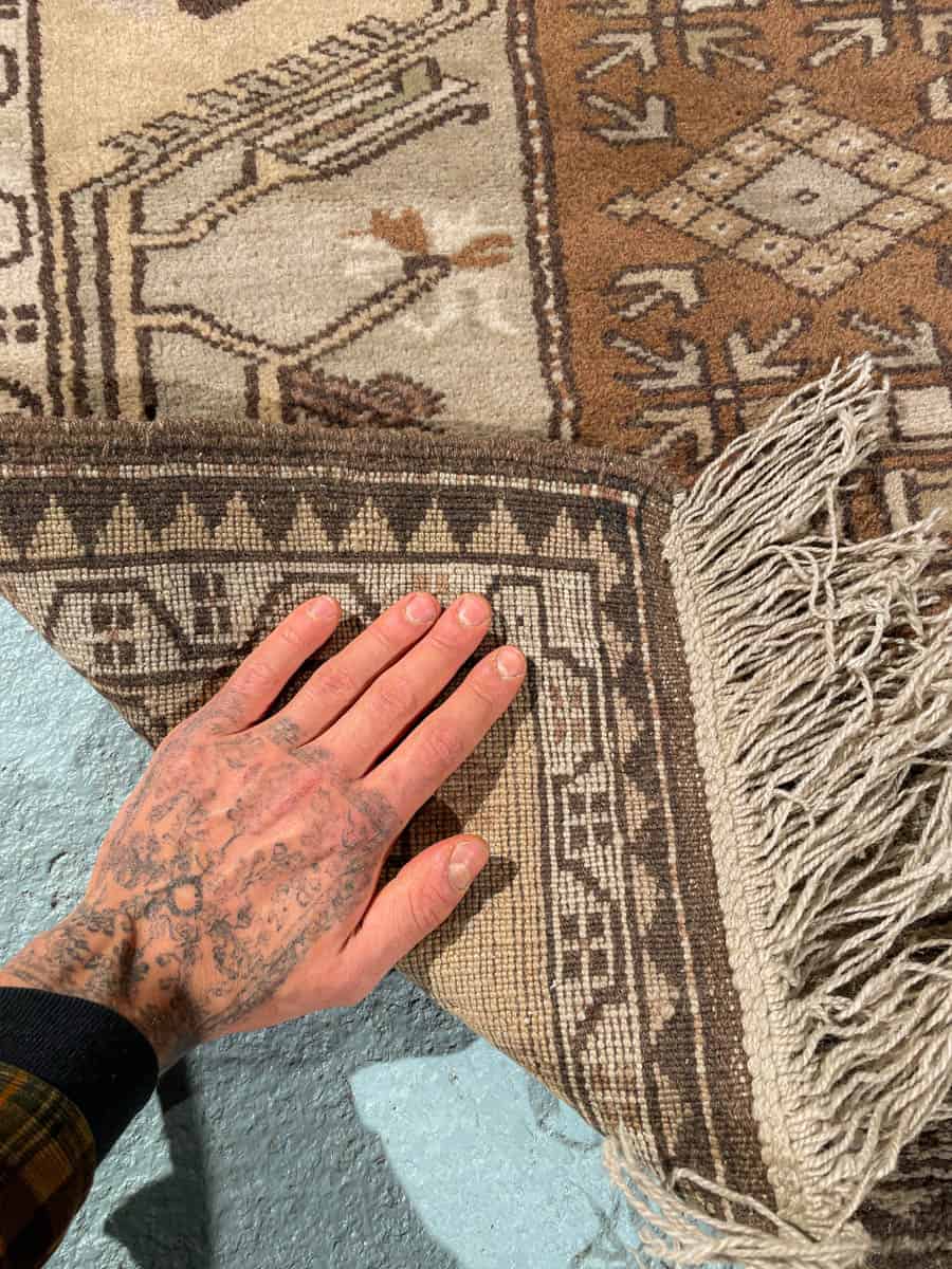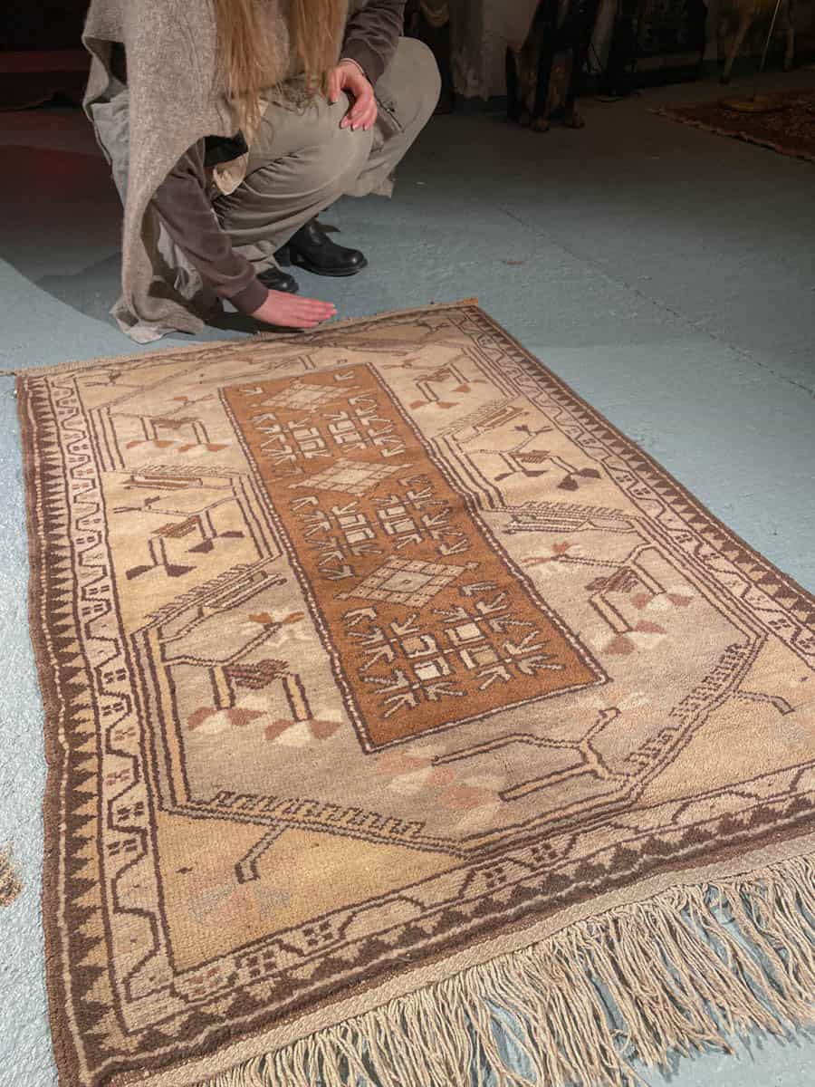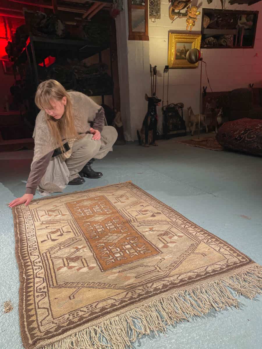 Tämä matto sijaitsee Galleriallamme osoitteessa Kankurinkatu 7, Punavuori – jos haluat tulla katsomaan sitä paikan päälle, sovithan näytön viestitse tai puhelimitse.