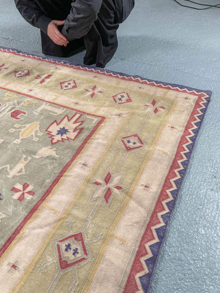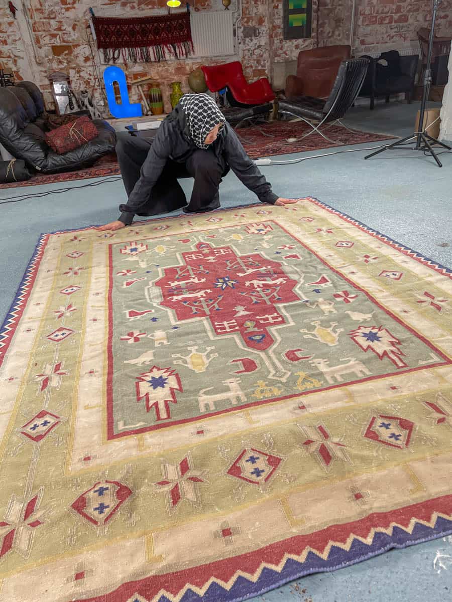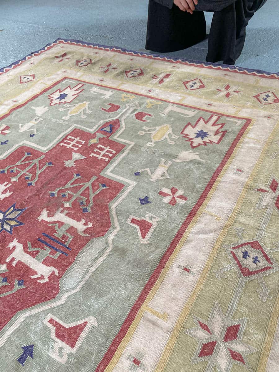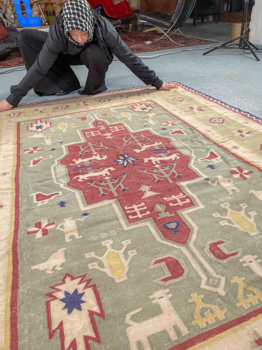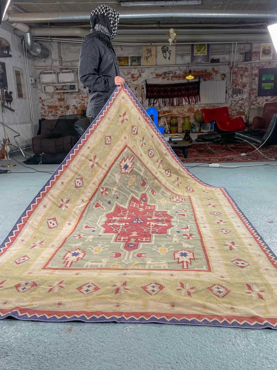 Tämä matto sijaitsee Galleriallamme osoitteessa Kankurinkatu 7, Punavuori – jos haluat tulla katsomaan sitä paikan päälle, sovithan näytön viestitse tai puhelimitse.
