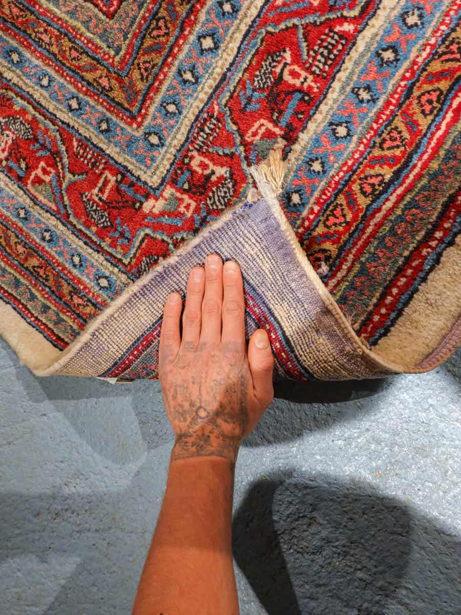 Tämä matto sijaitsee Galleriallamme osoitteessa Kankurinkatu 7, Punavuori – jos haluat tulla katsomaan sitä paikan päälle, sovithan näytön viestitse tai puhelimitse.