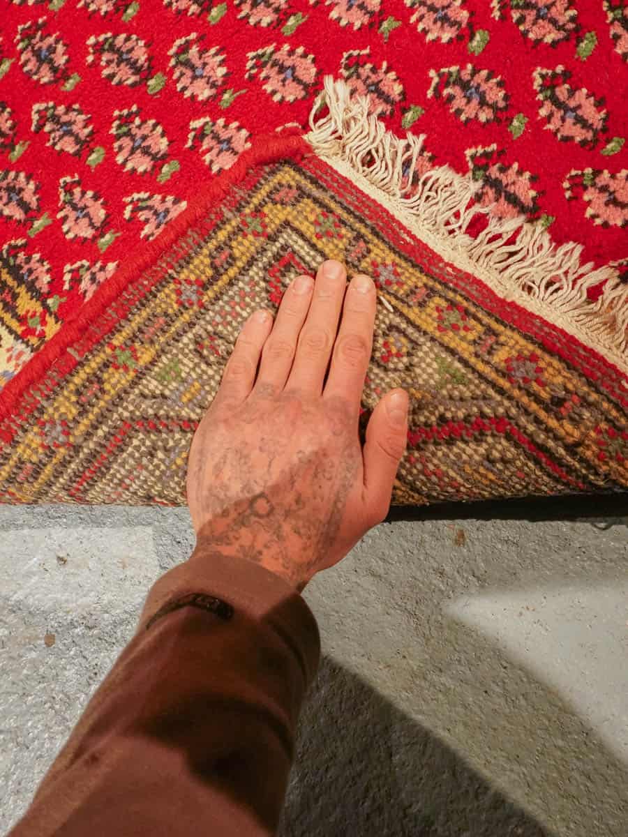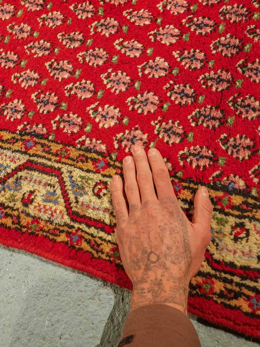 Tämä matto sijaitsee Galleriallamme osoitteessa Kankurinkatu 7, Punavuori – jos haluat tulla katsomaan sitä paikan päälle, sovithan näytön viestitse tai puhelimitse.