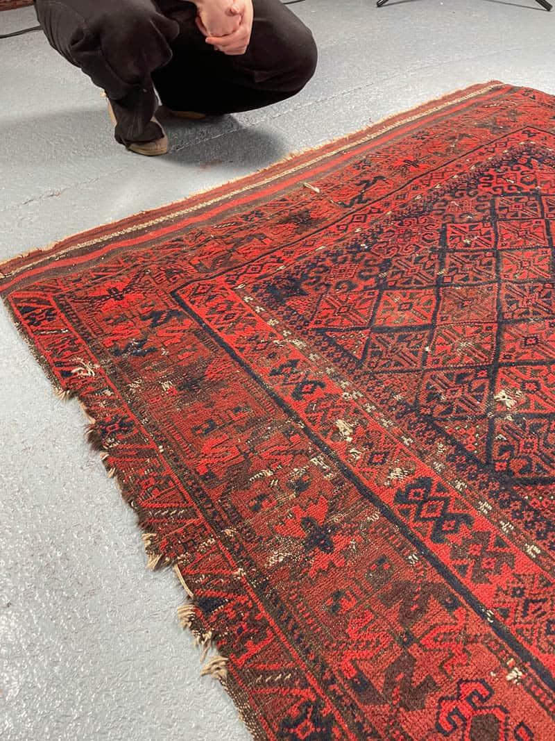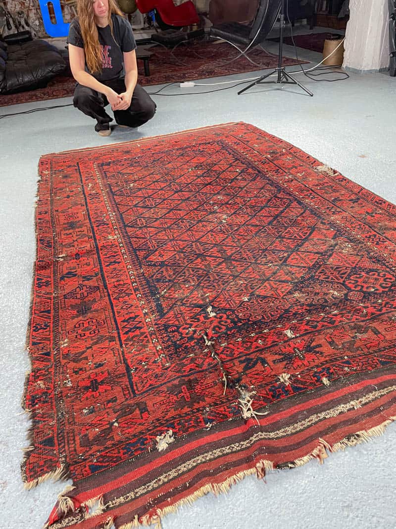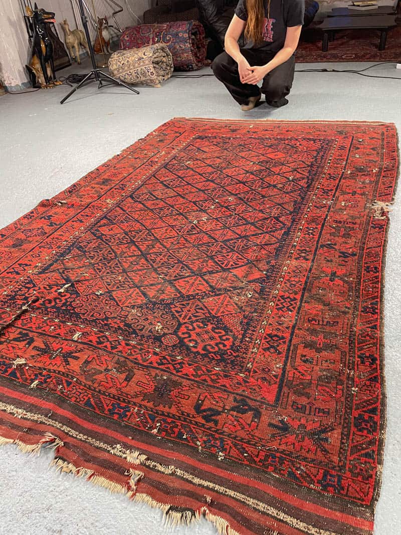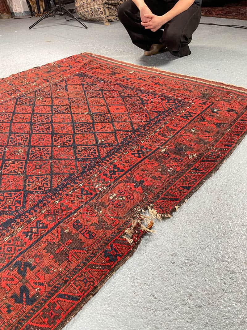 Tämä matto sijaitsee Galleriallamme osoitteessa Kankurinkatu 7, Punavuori – jos haluat tulla katsomaan sitä paikan päälle, sovithan näytön viestitse tai puhelimitse.