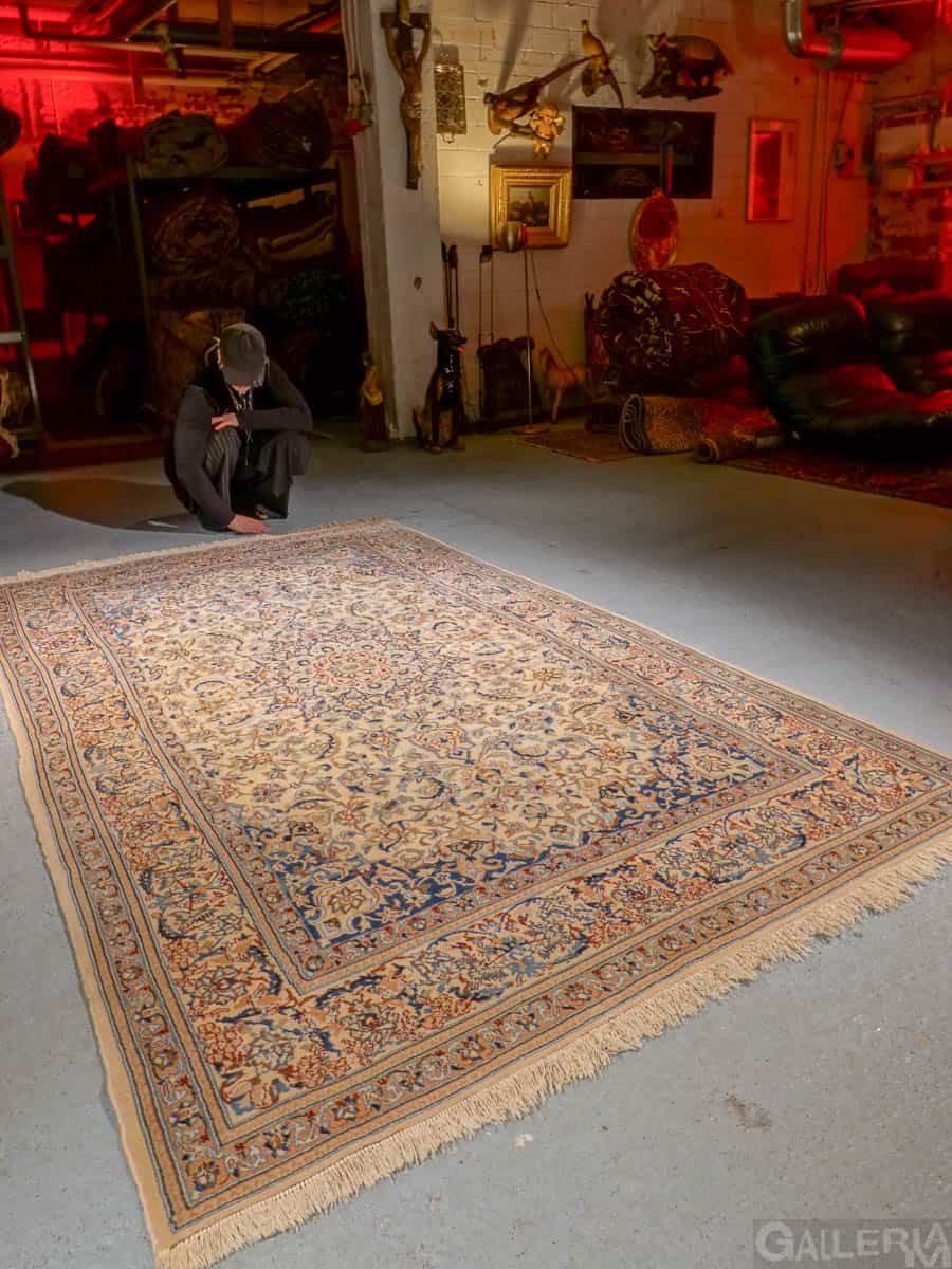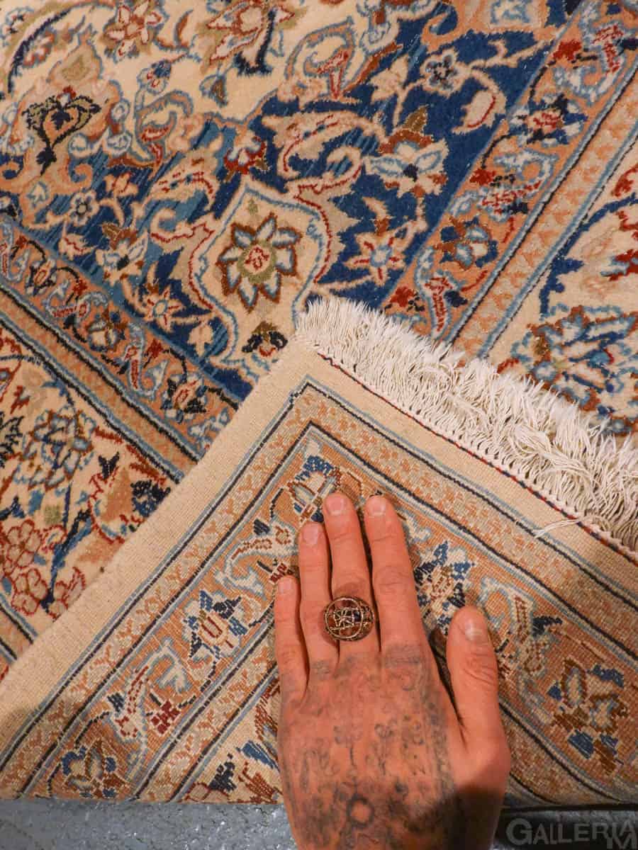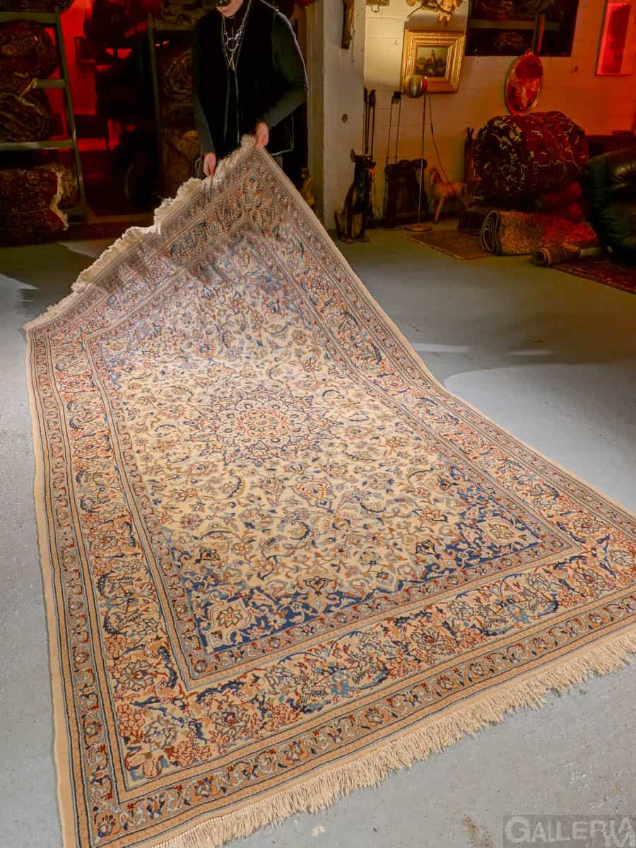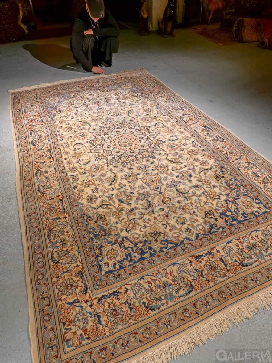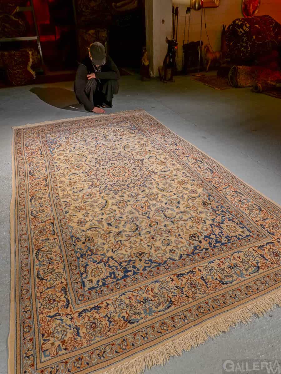 Tyrmäävä persialainen Nain silkkidetaljeilla ja yksityiskohtaisilla kuvioinneilla. Vangitsevan hypnoottinen keskimedaljonki.