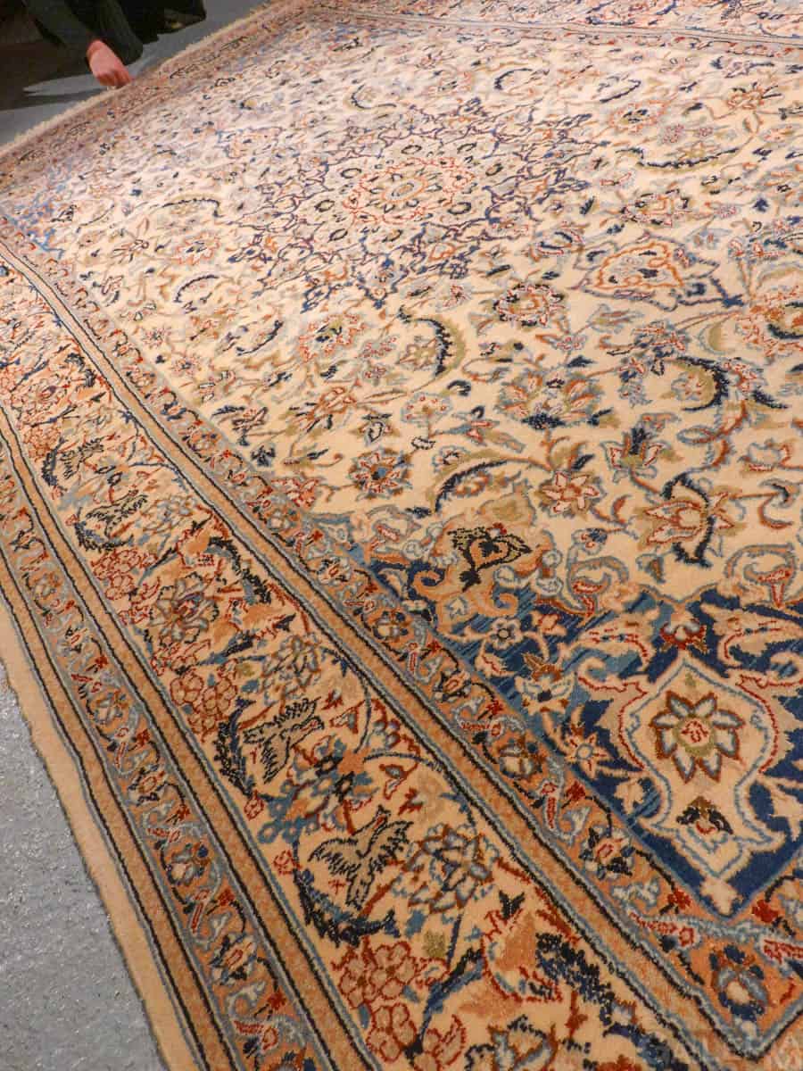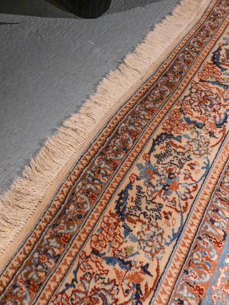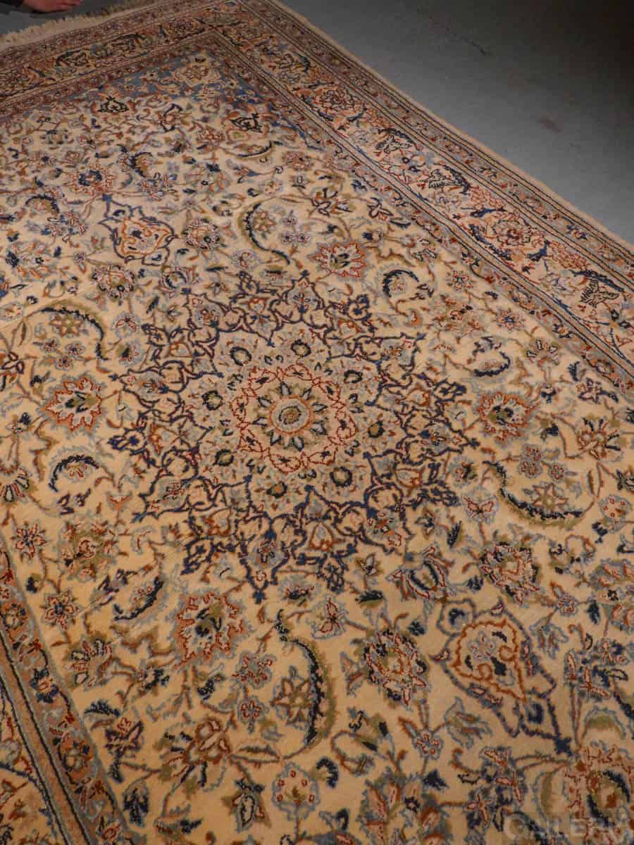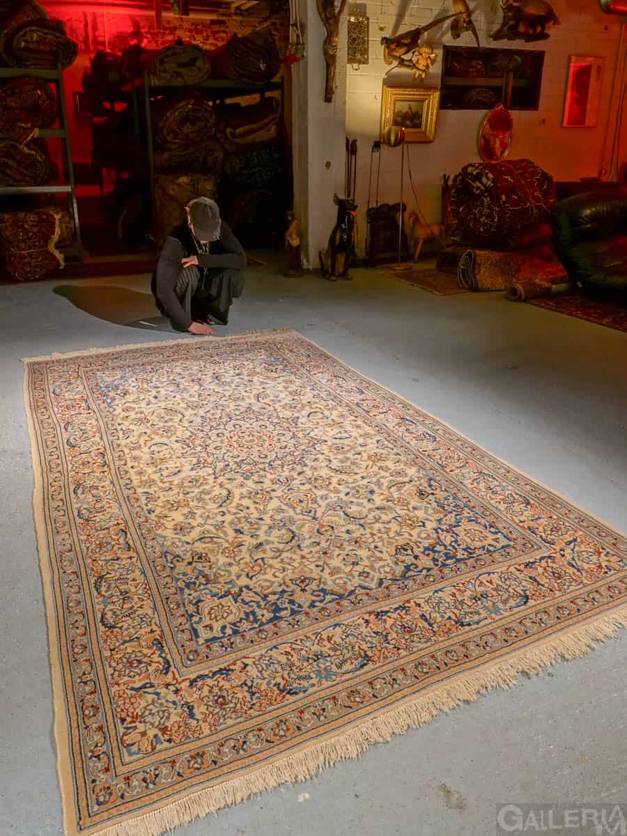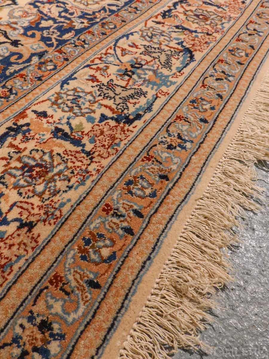 Tyrmäävä persialainen Nain silkkidetaljeilla ja yksityiskohtaisilla kuvioinneilla. Vangitsevan hypnoottinen keskimedaljonki.