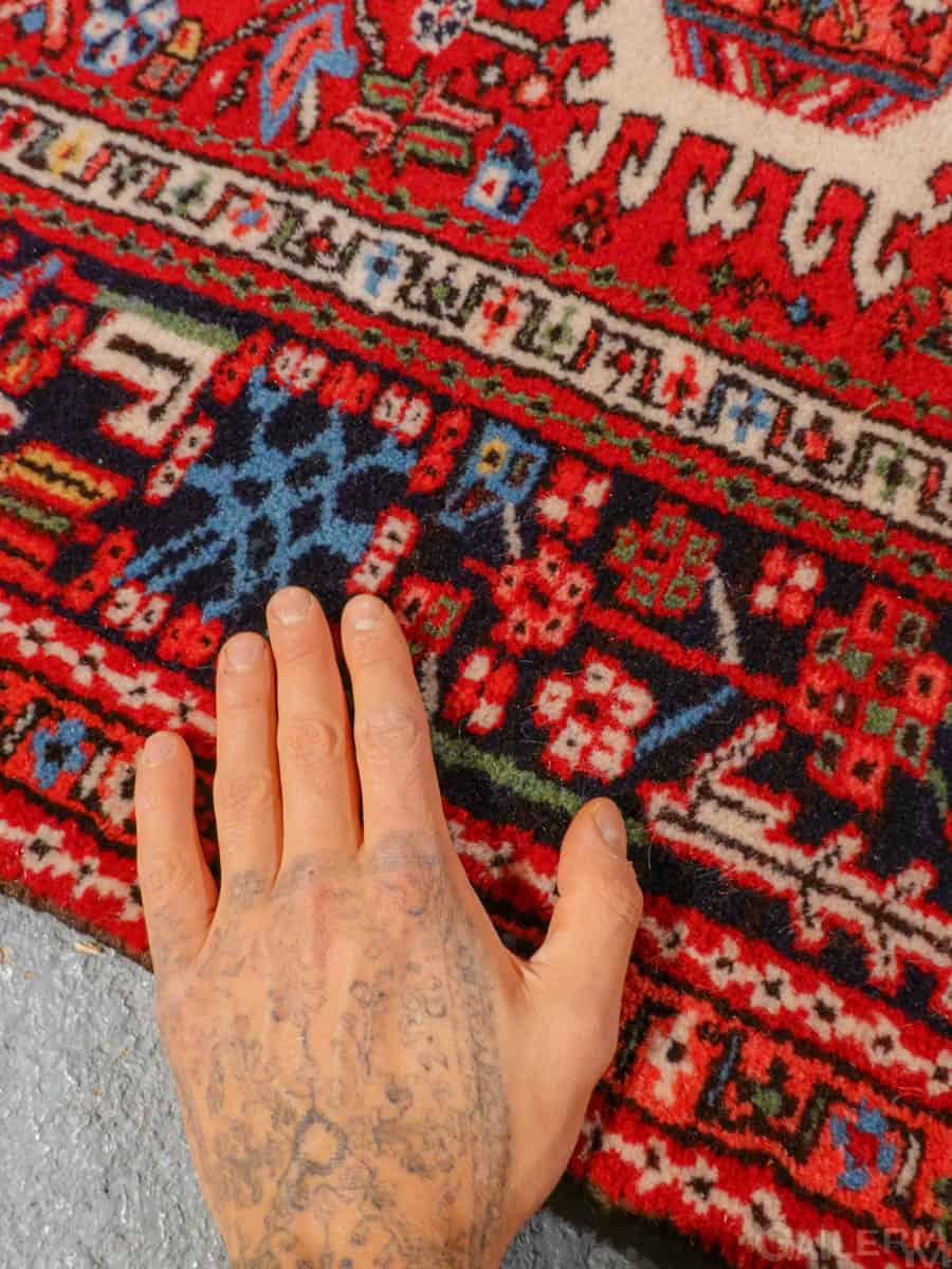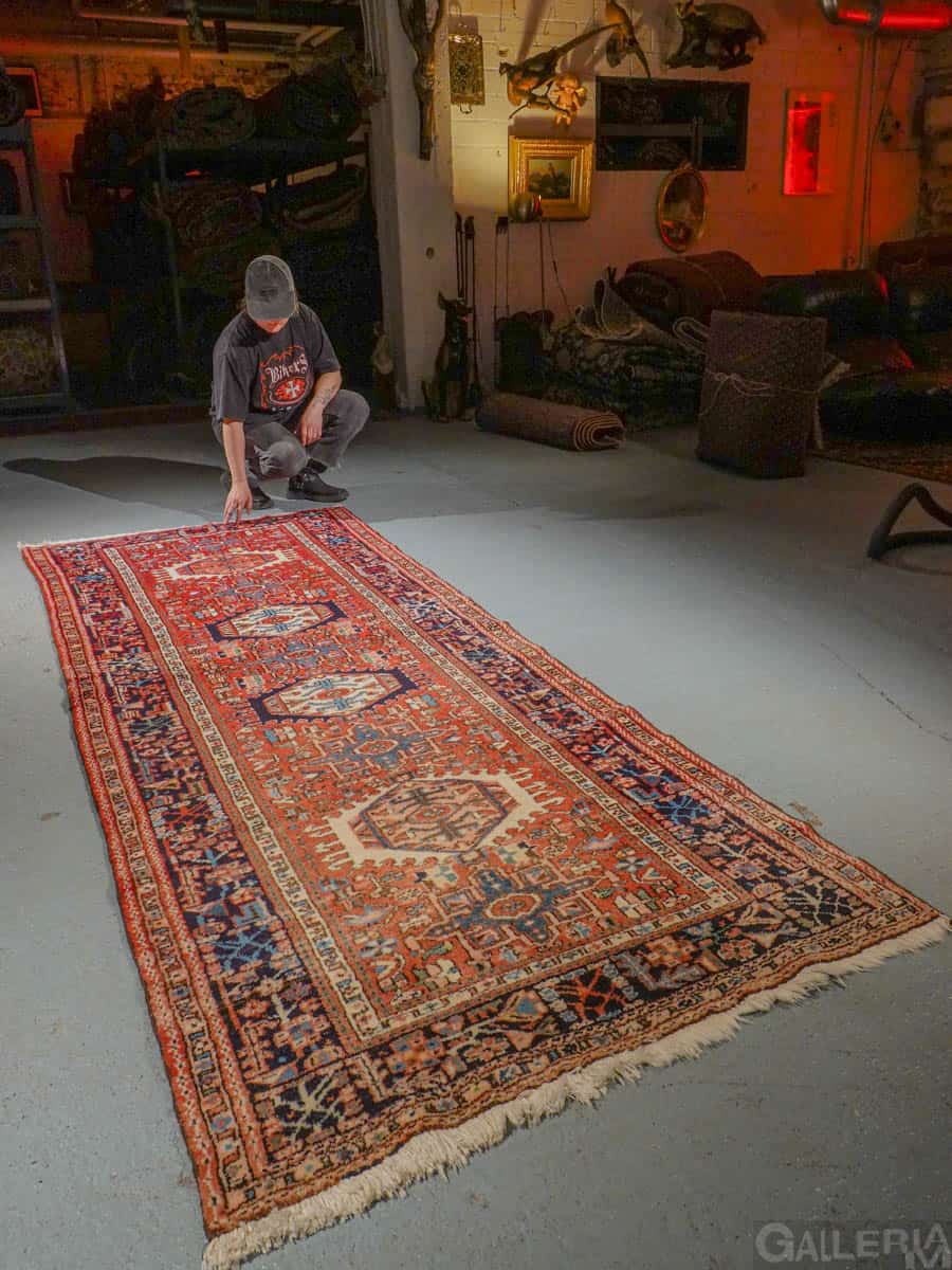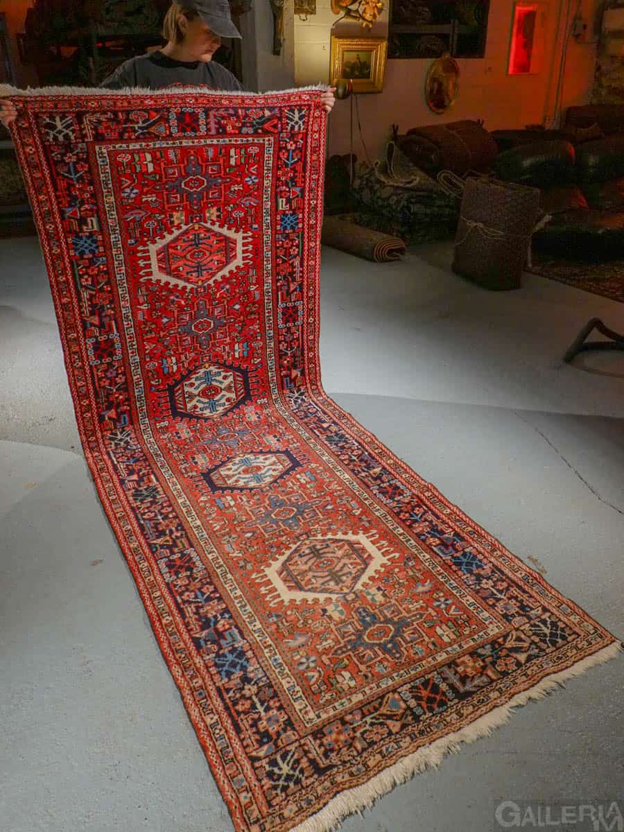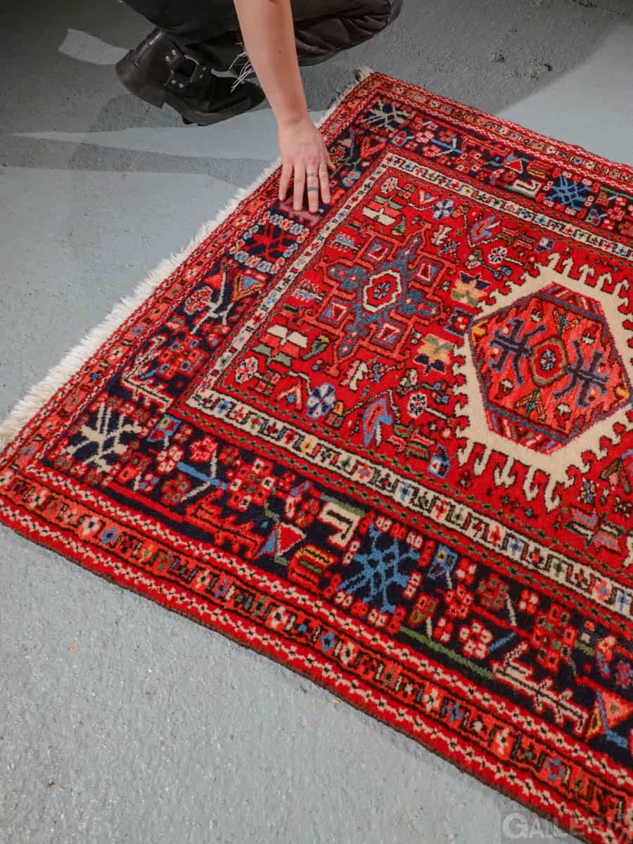 Tämä matto sijaitsee Galleriallamme osoitteessa Kankurinkatu 7, Punavuori – jos haluat tulla katsomaan sitä paikan päälle, sovithan näytön viestitse tai puhelimitse.