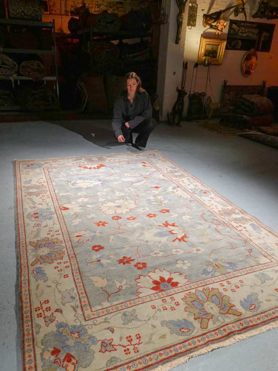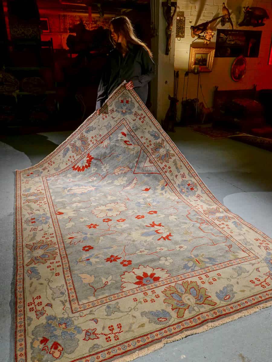 Tämä matto sijaitsee Galleriallamme osoitteessa Kankurinkatu 7, Punavuori – jos haluat tulla katsomaan sitä paikan päälle, sovithan näytön viestitse tai puhelimitse.