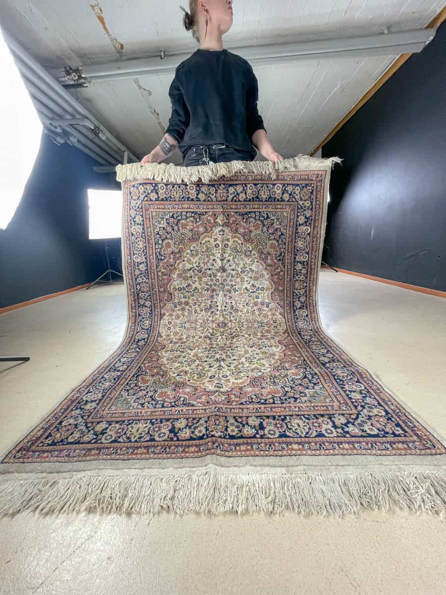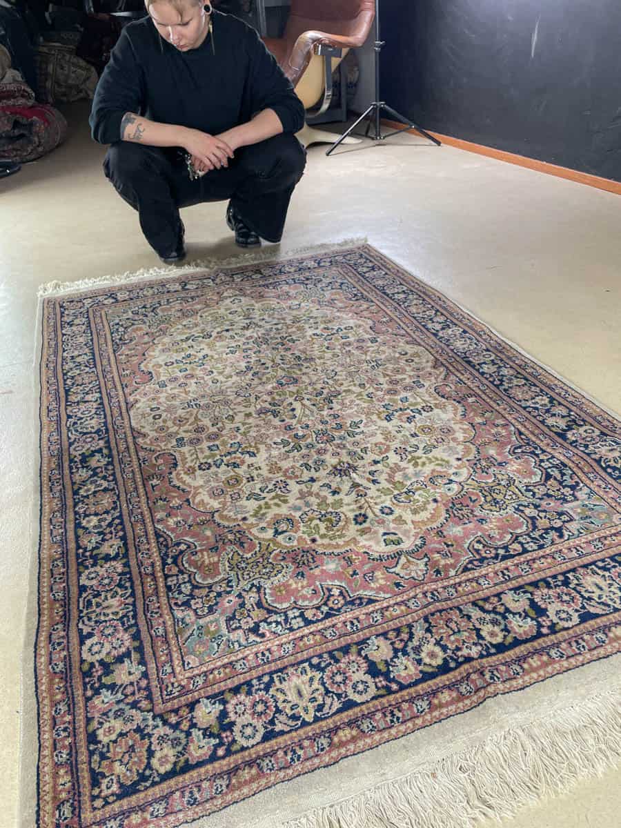 Tämä matto sijaitsee Galleriallamme osoitteessa Kankurinkatu 7, Punavuori – jos haluat tulla katsomaan sitä paikan päälle, sovithan näytön viestitse tai puhelimitse.