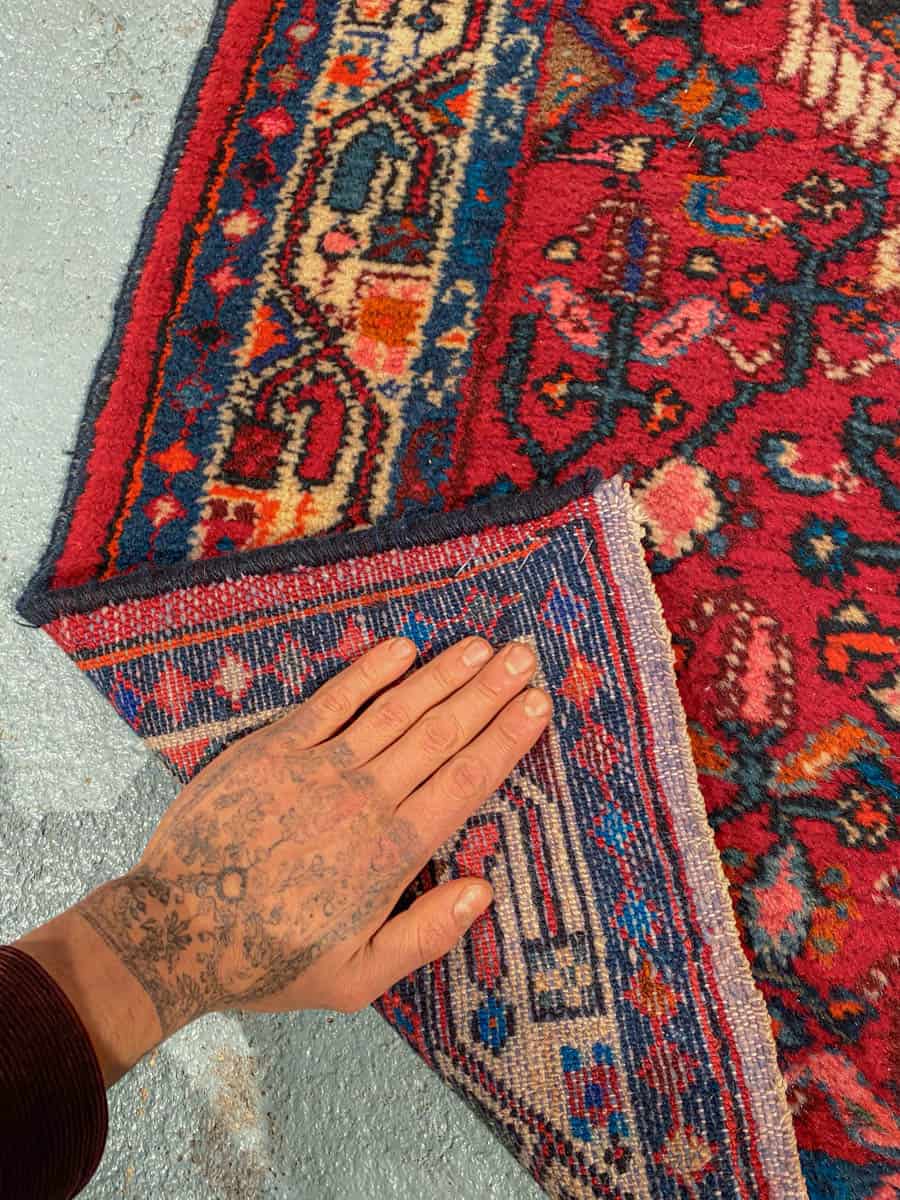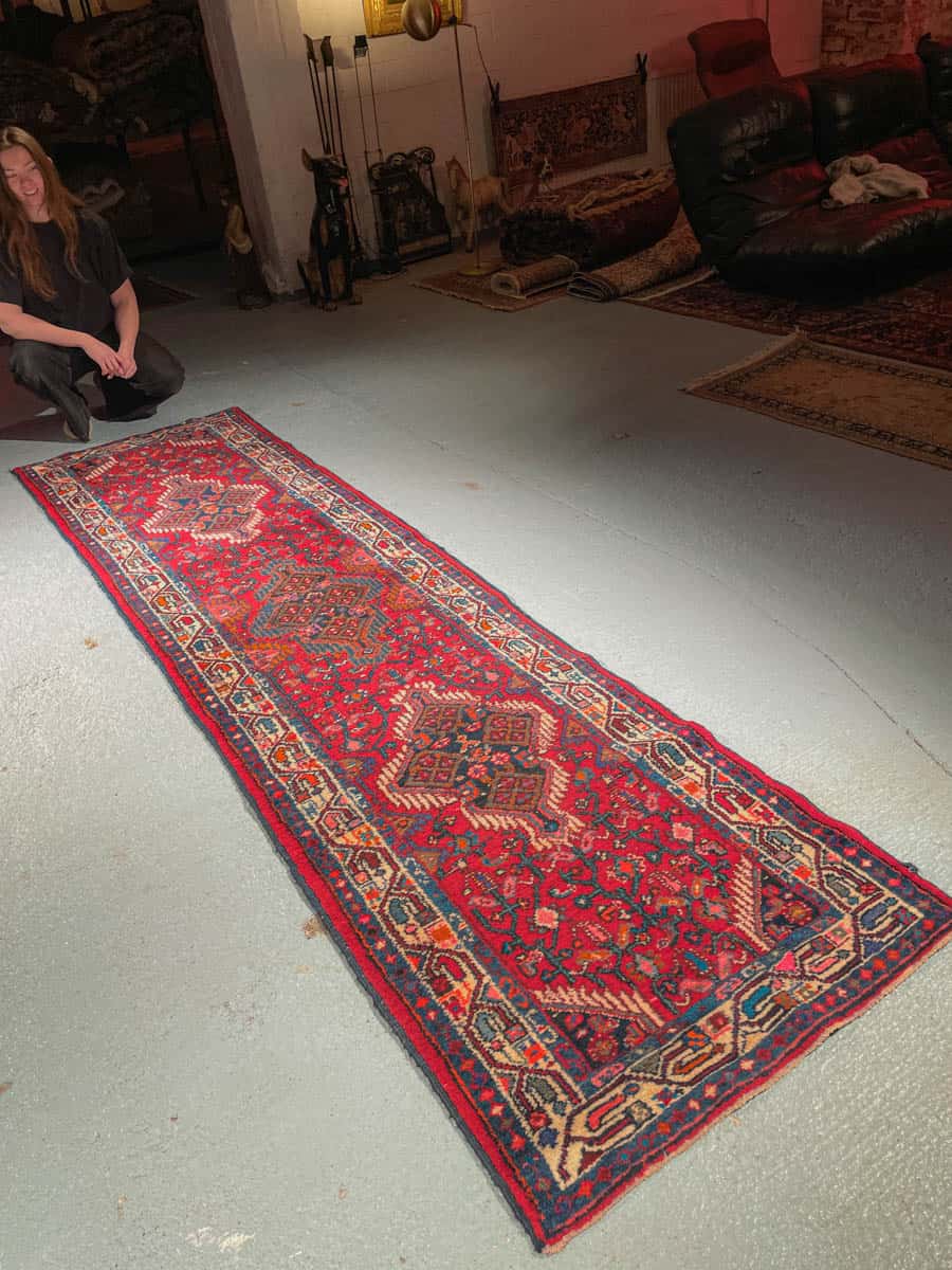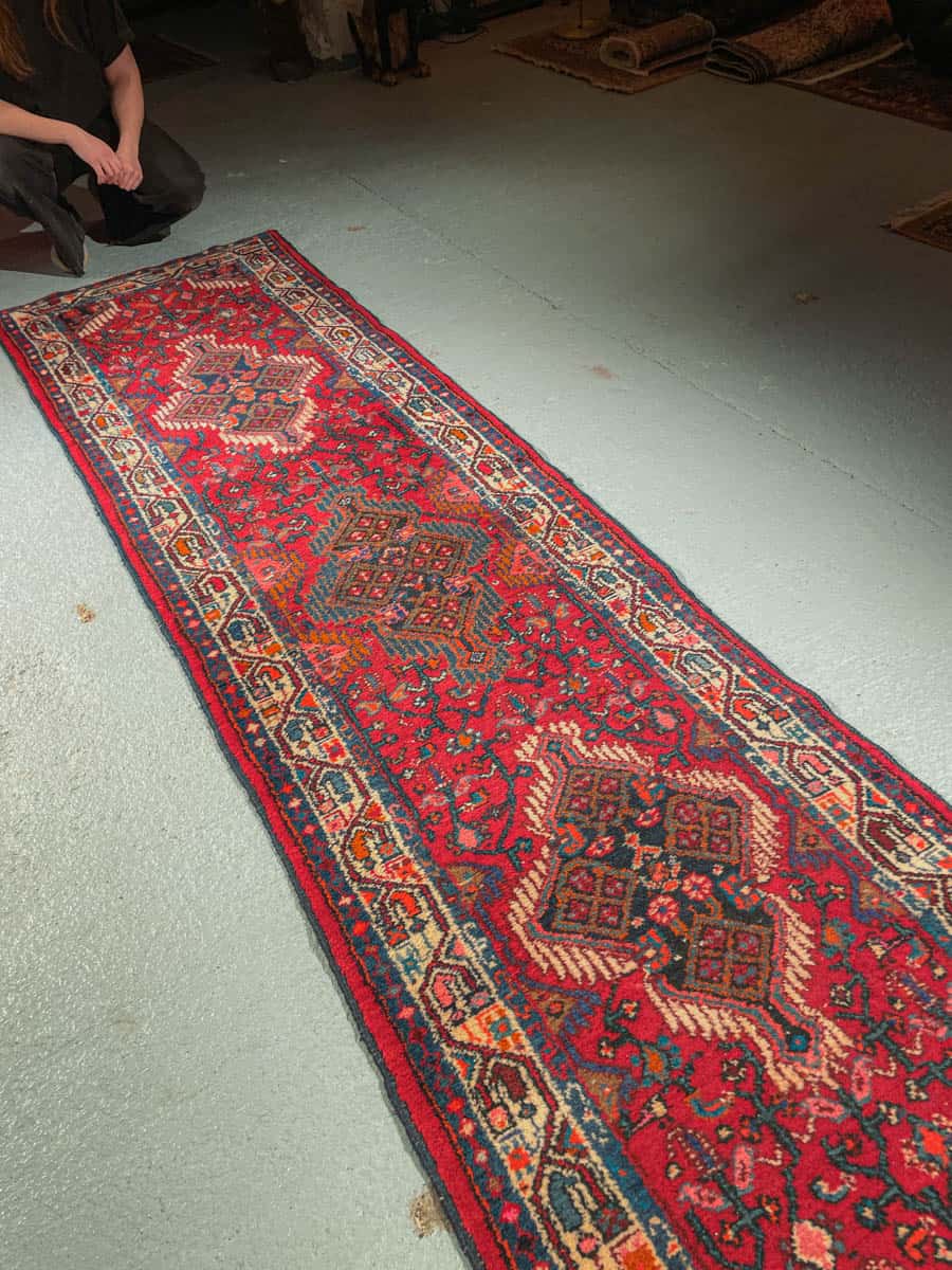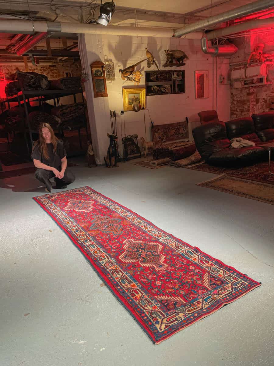 Tämä matto sijaitsee Galleriallamme osoitteessa Kankurinkatu 7, Punavuori – jos haluat tulla katsomaan sitä paikan päälle, sovithan näytön viestitse tai puhelimitse.