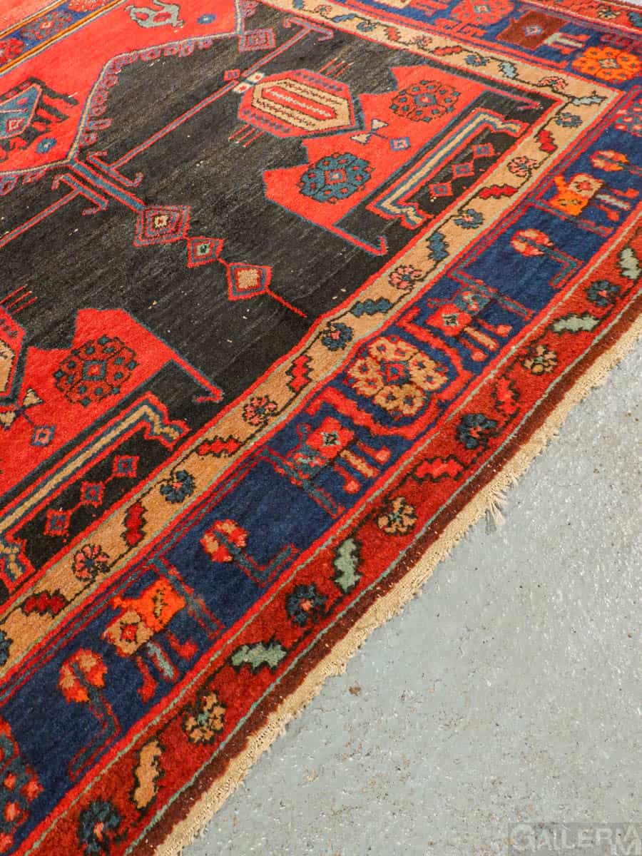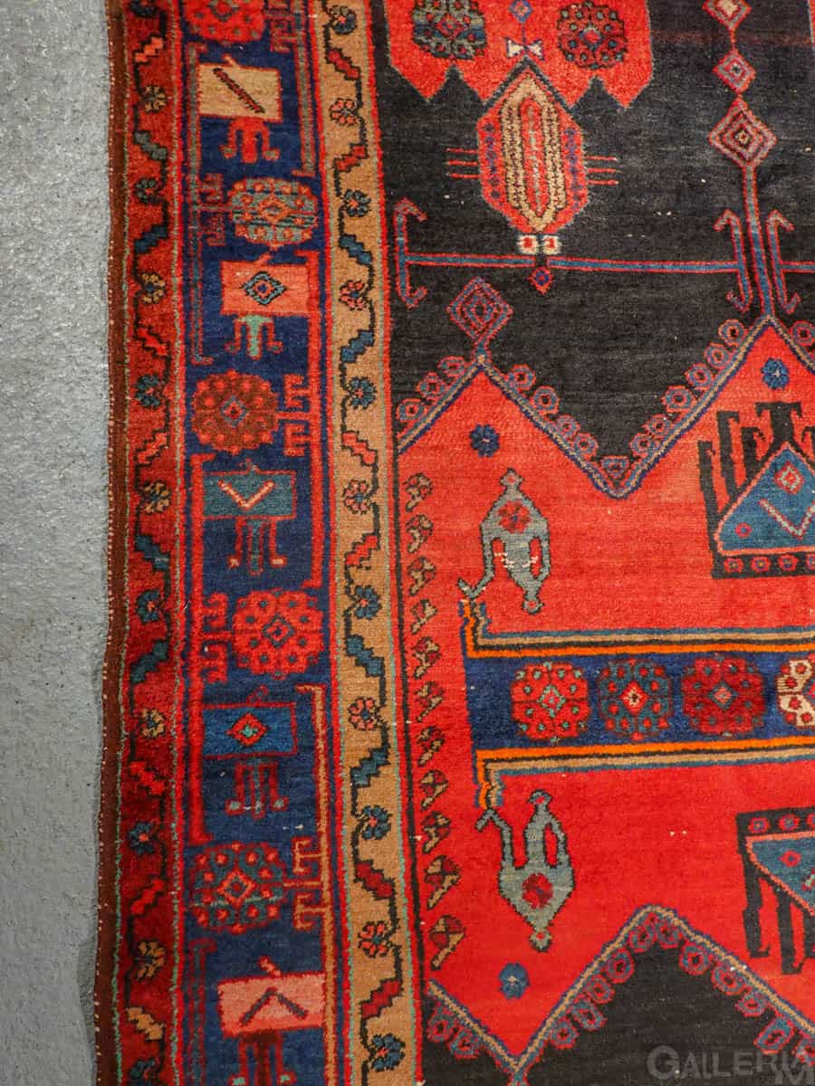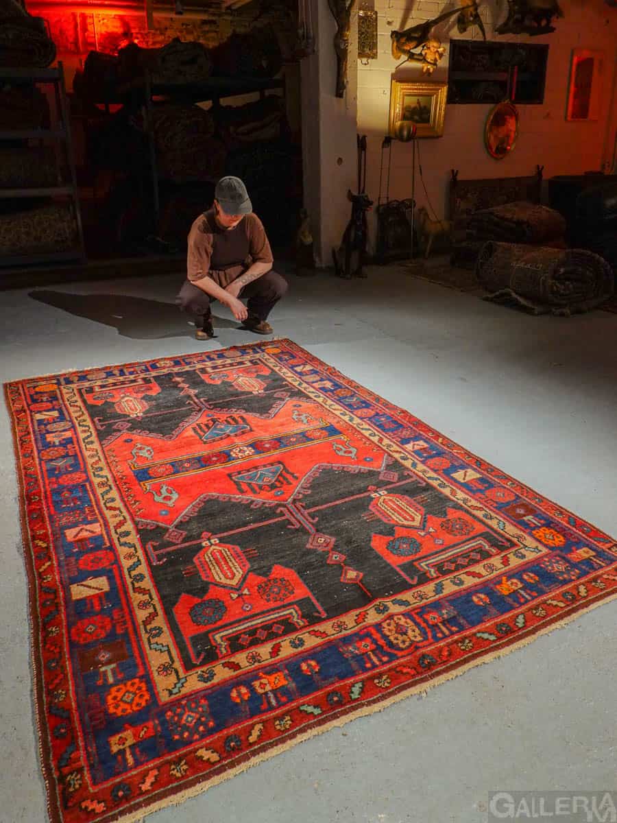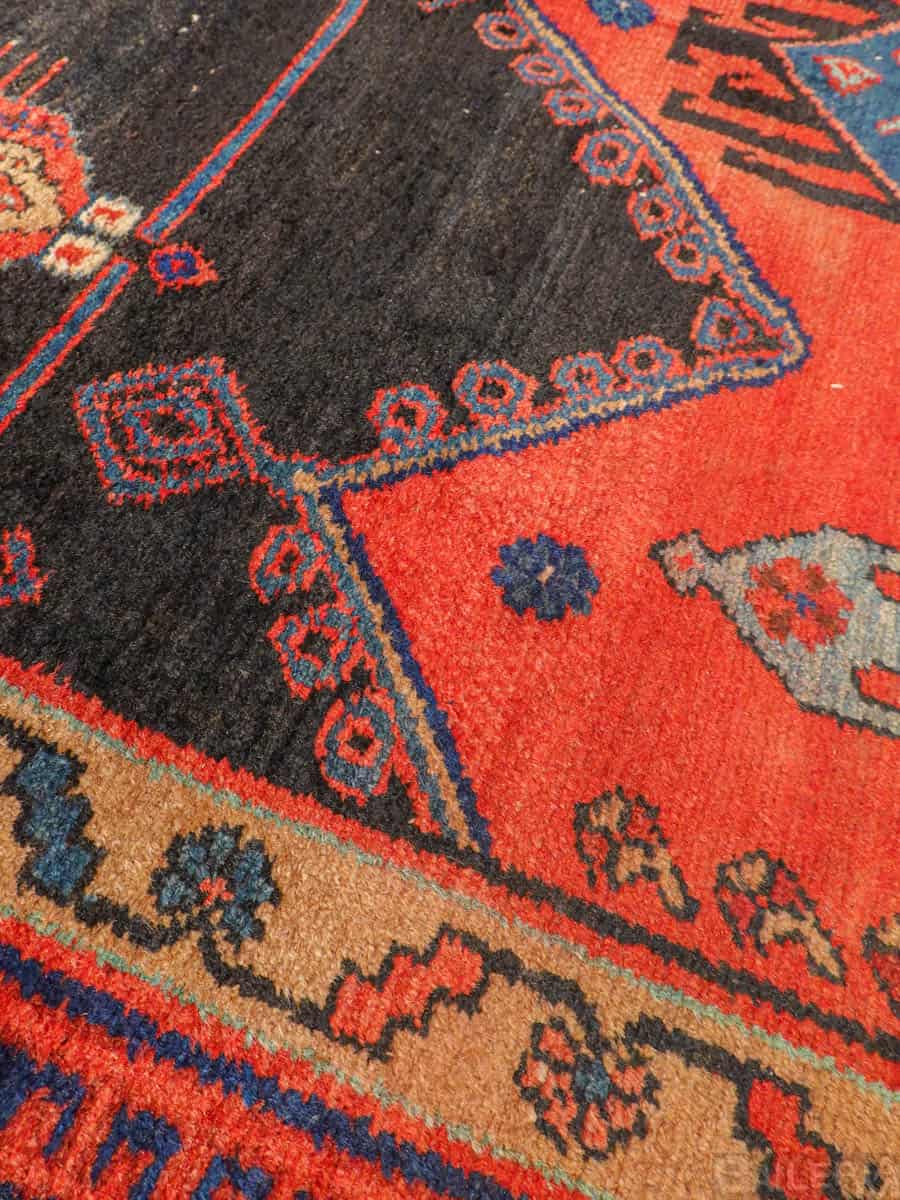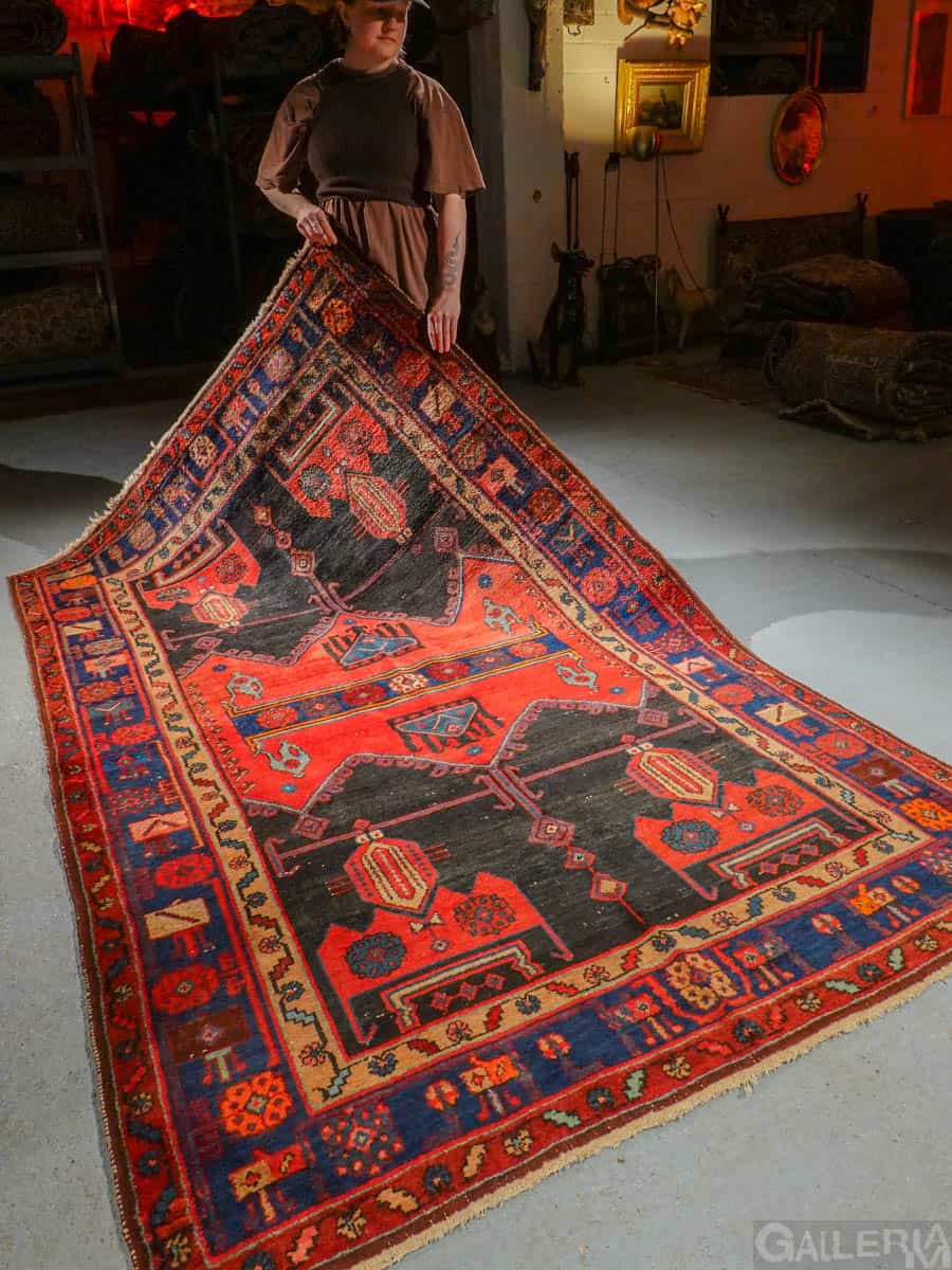 Geometrinen Hamadan upeilla ja säväyttävän tummilla sävyillä ja geometrisella kuvioinnilla. Käsinsolmittu villasta.