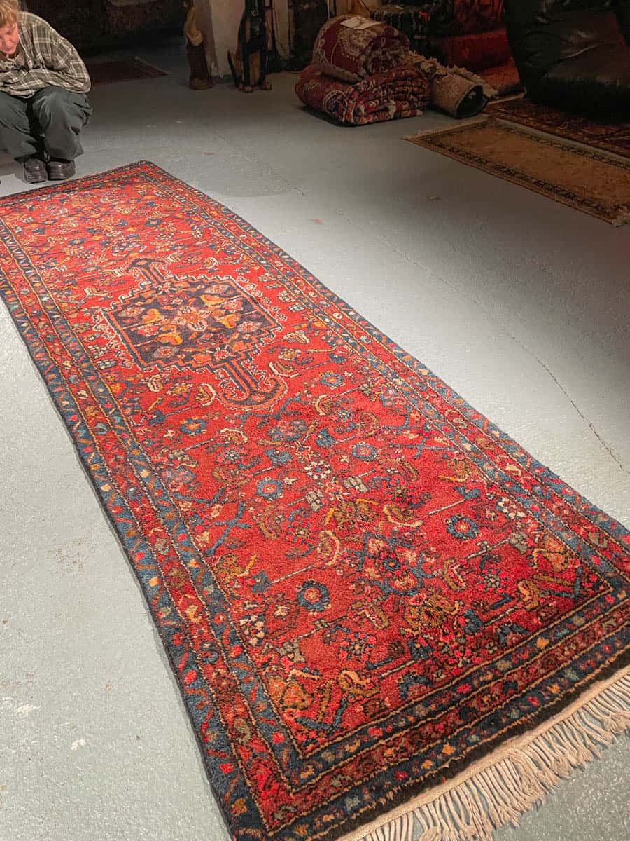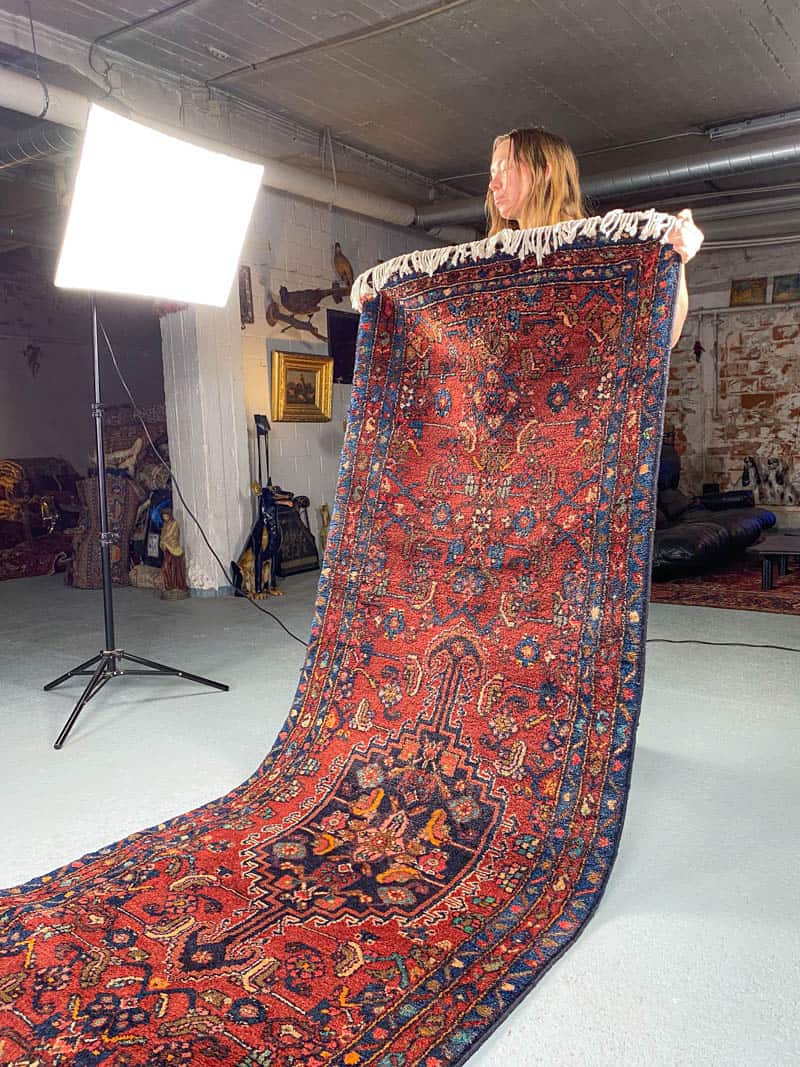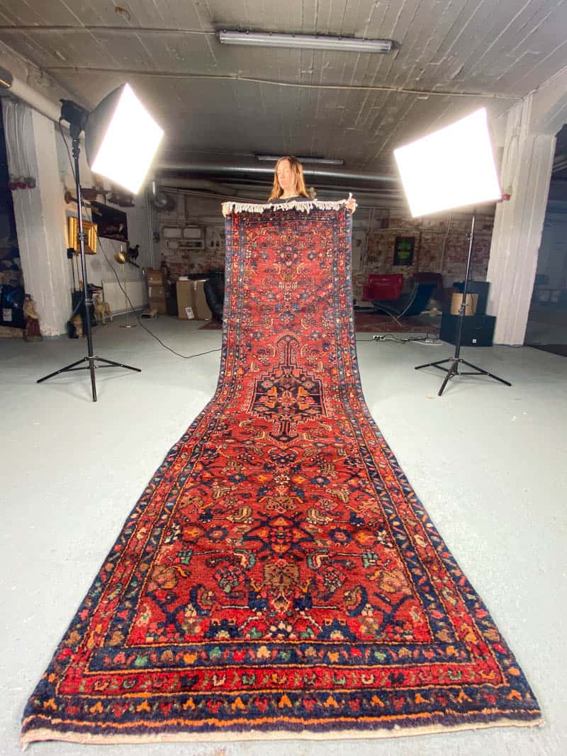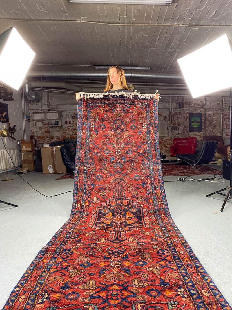 Tämä matto sijaitsee Galleriallamme osoitteessa Kankurinkatu 7, Punavuori – jos haluat tulla katsomaan sitä paikan päälle, sovithan näytön viestitse tai puhelimitse.