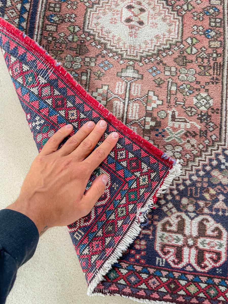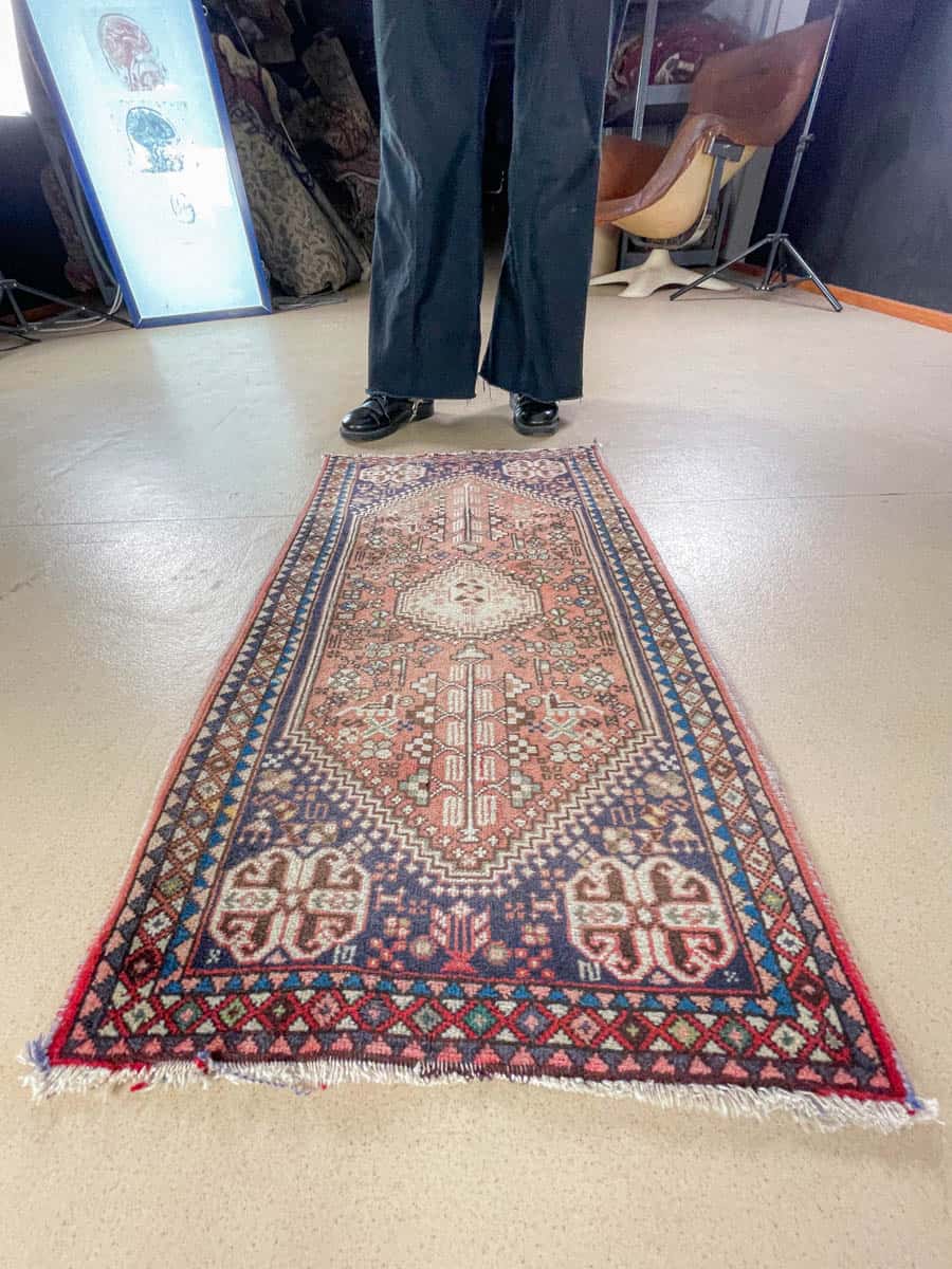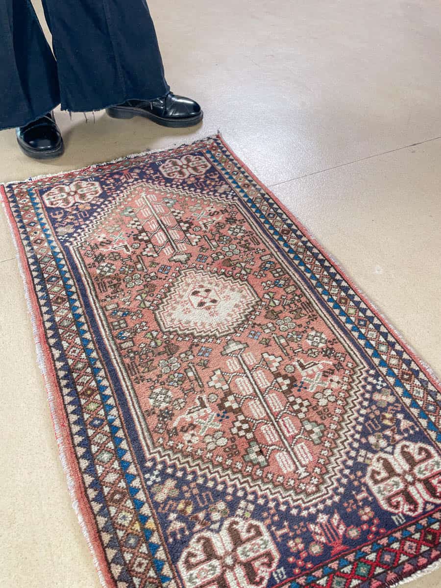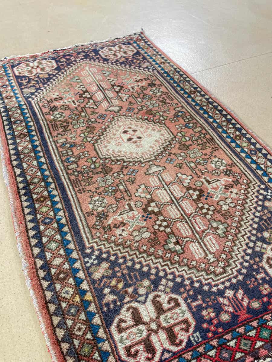Sympaattinen pieni iranilainen Abadeh. Perinteistä käsityötä; käsinsolmittu villasta.