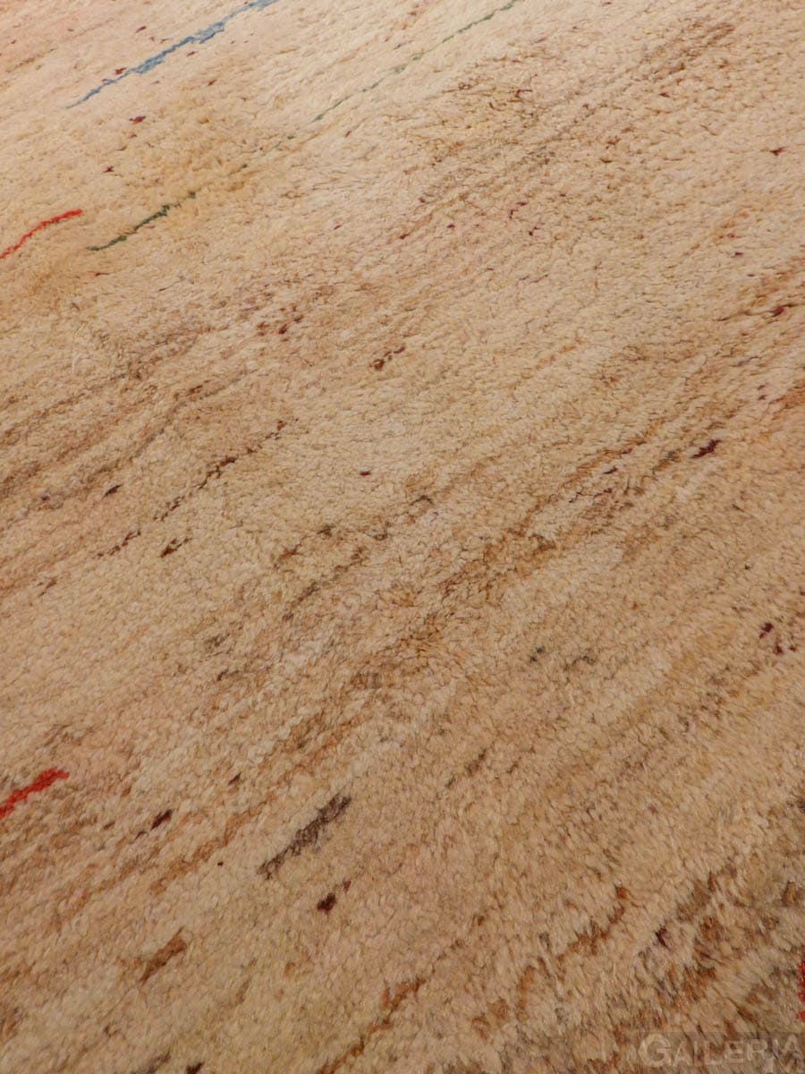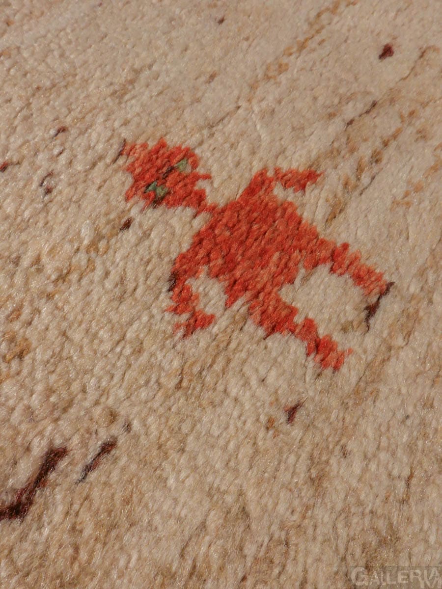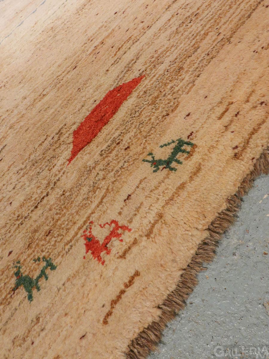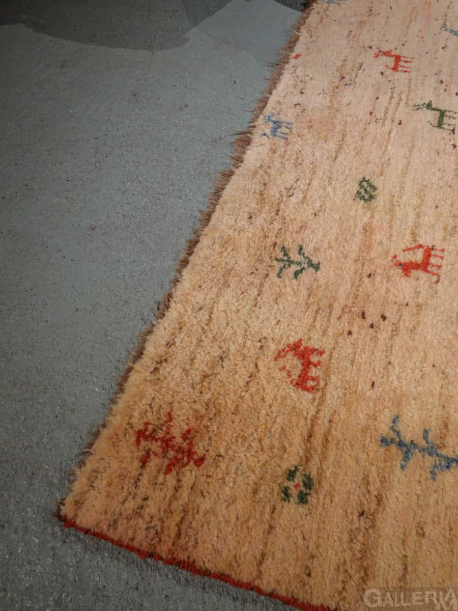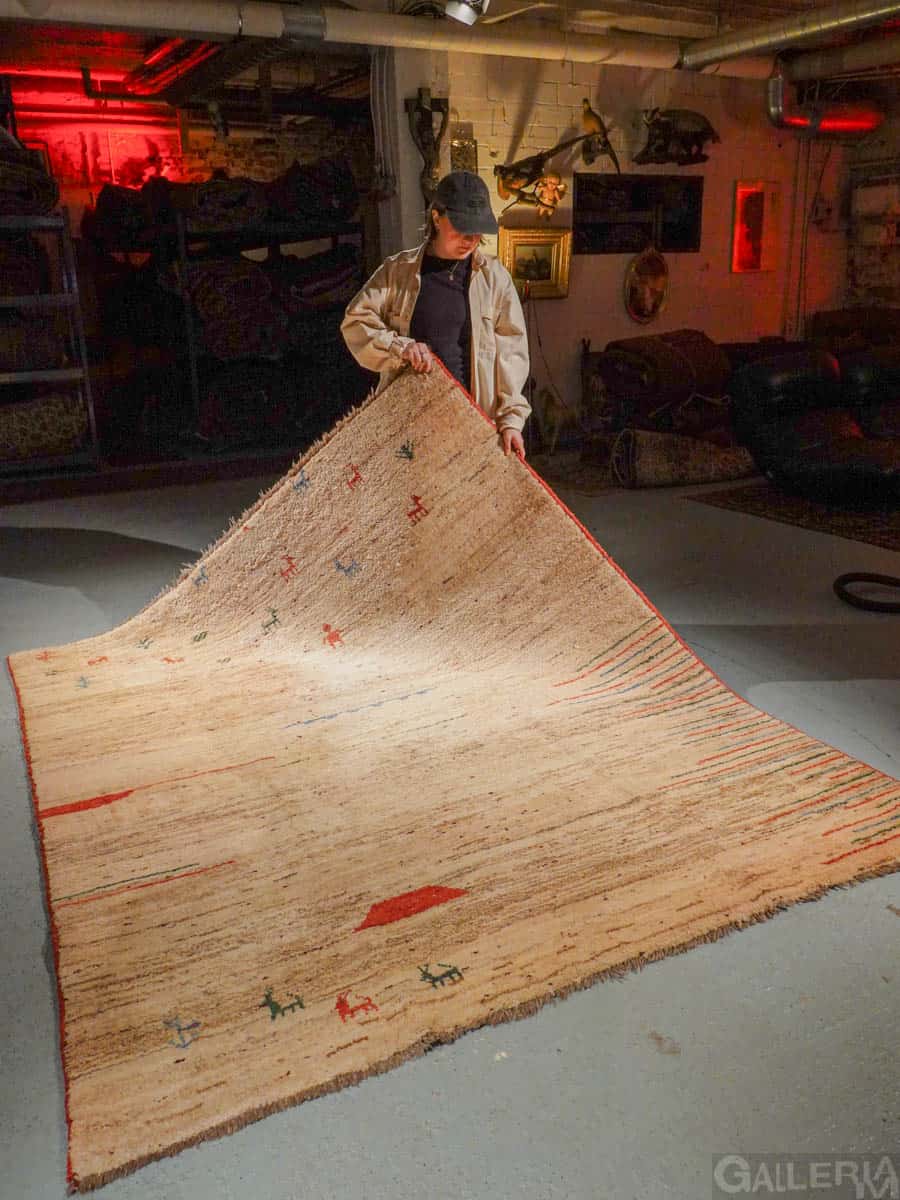 Ihastuttava vintage-Gabbeh sievän minimalistisella kuvioinnilla ja vaalealla värimaailmalla. Käsinsolmittu villasta villaloimelle.