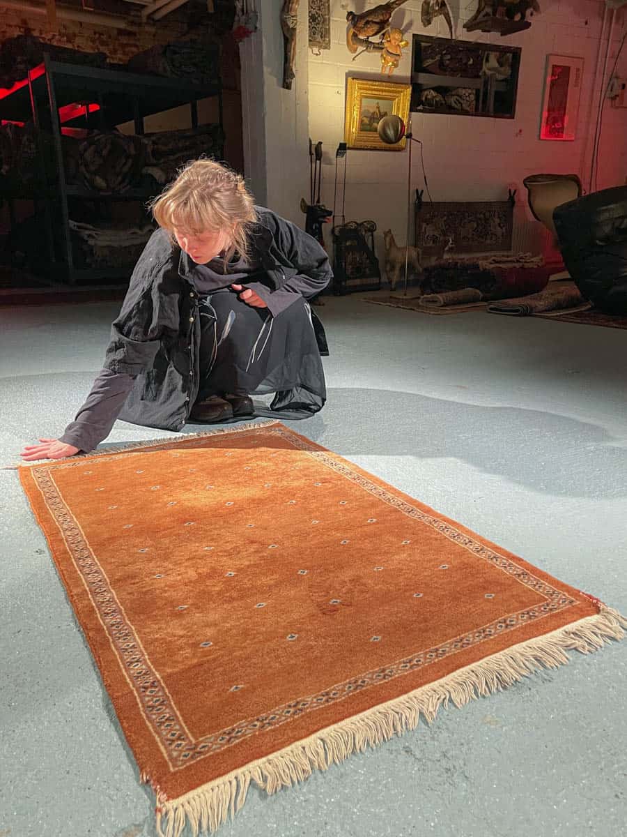 Tämä matto sijaitsee Galleriallamme osoitteessa Kankurinkatu 7, Punavuori – jos haluat tulla katsomaan sitä paikan päälle, sovithan näytön viestitse tai puhelimitse.