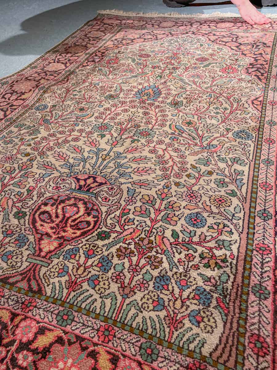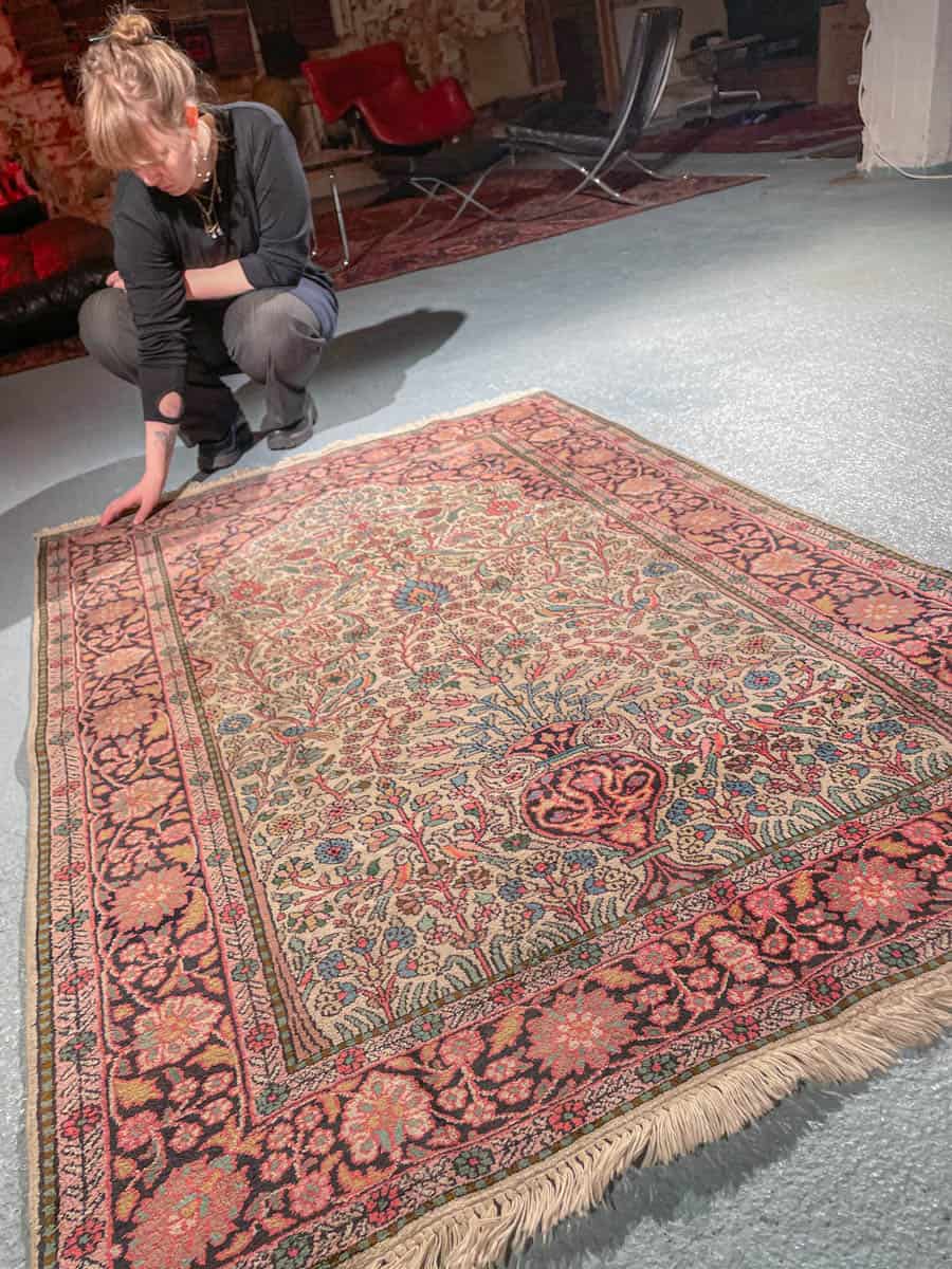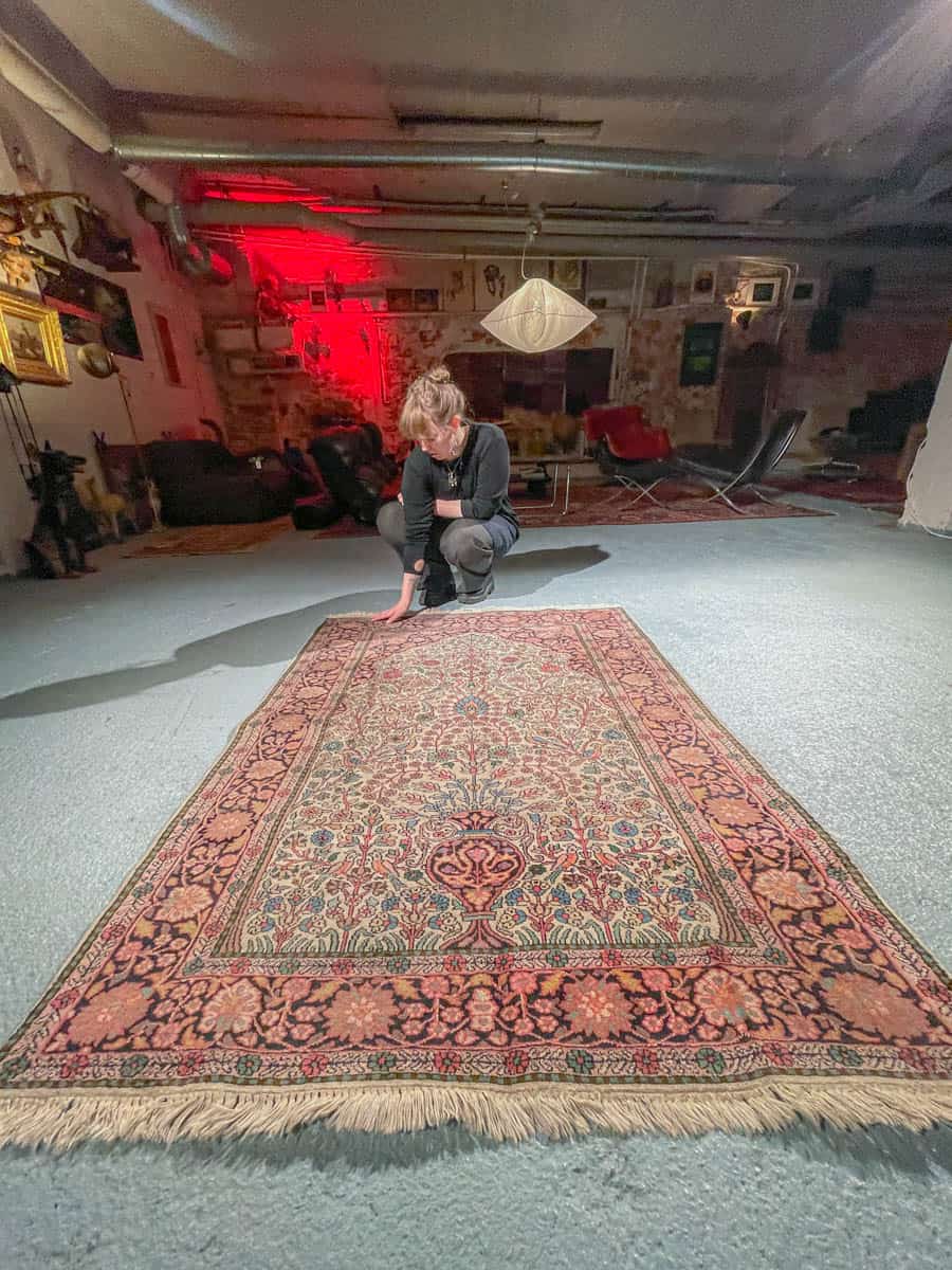 Tämä matto sijaitsee Galleriallamme osoitteessa Kankurinkatu 7, Punavuori – jos haluat tulla katsomaan sitä paikan päälle, sovithan näytön viestitse tai puhelimitse.