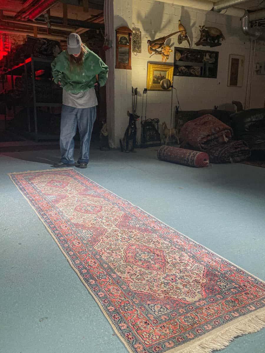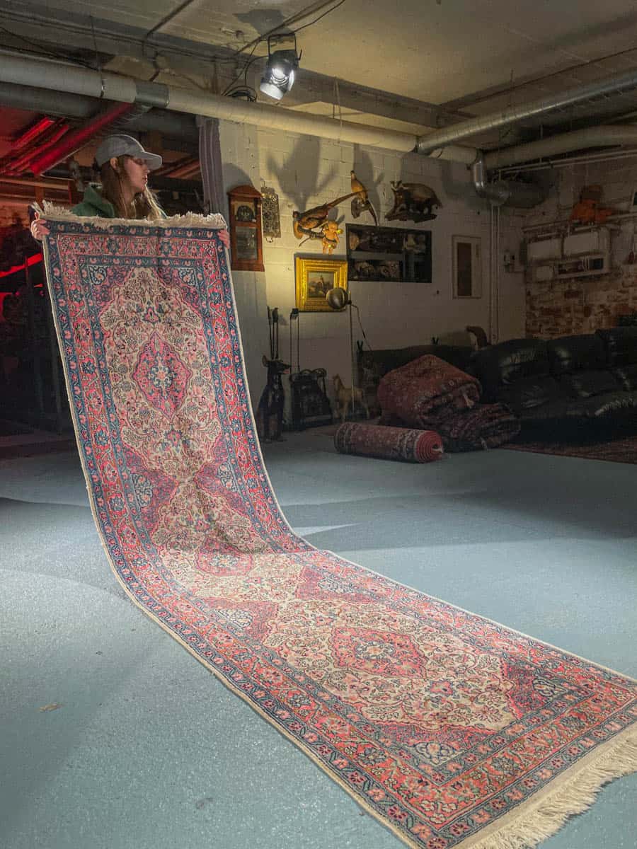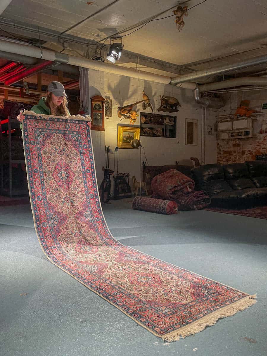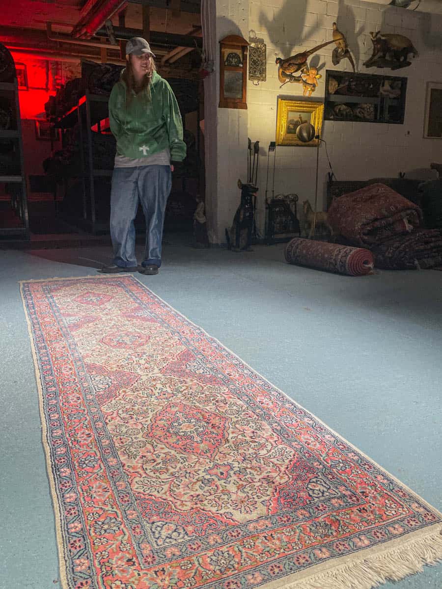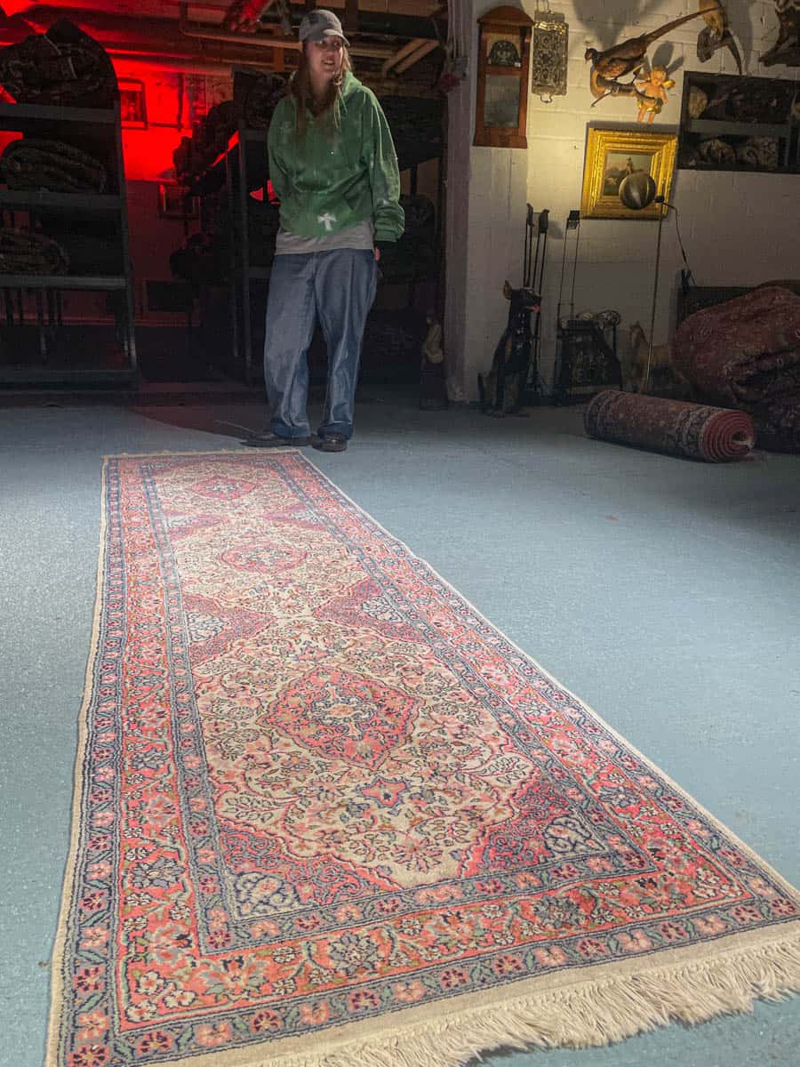 Tämä matto sijaitsee Galleriallamme osoitteessa Kankurinkatu 7, Punavuori – jos haluat tulla katsomaan sitä paikan päälle, sovithan näytön viestitse tai puhelimitse.