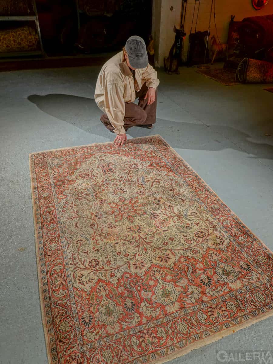 Tämä matto sijaitsee Galleriallamme osoitteessa Kankurinkatu 7, Punavuori – jos haluat tulla katsomaan sitä paikan päälle, sovithan näytön viestitse tai puhelimitse.