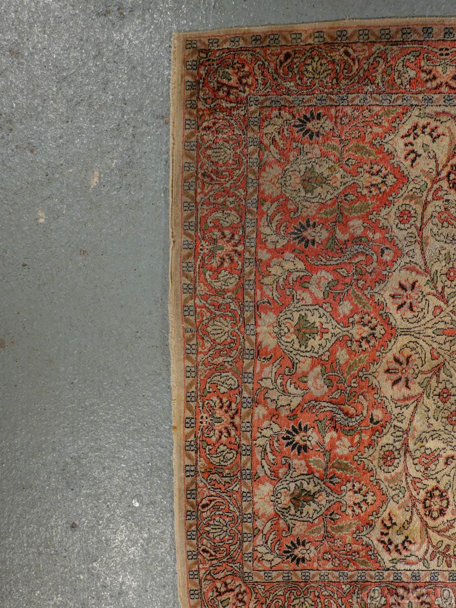 Arvokkaan hillitty Kasmir runsailla kukkaisornamenteilla ja tyylikkäällä keskimedaljongilla.