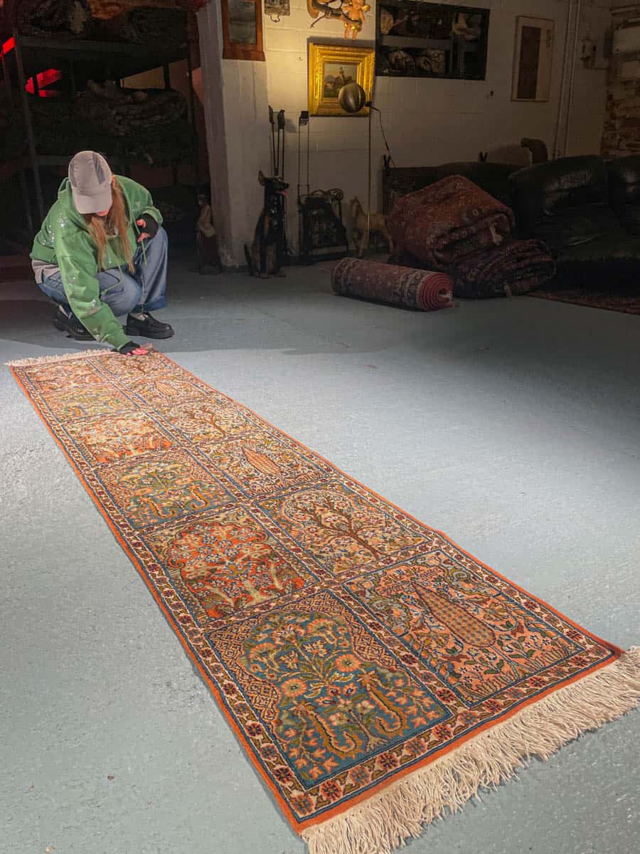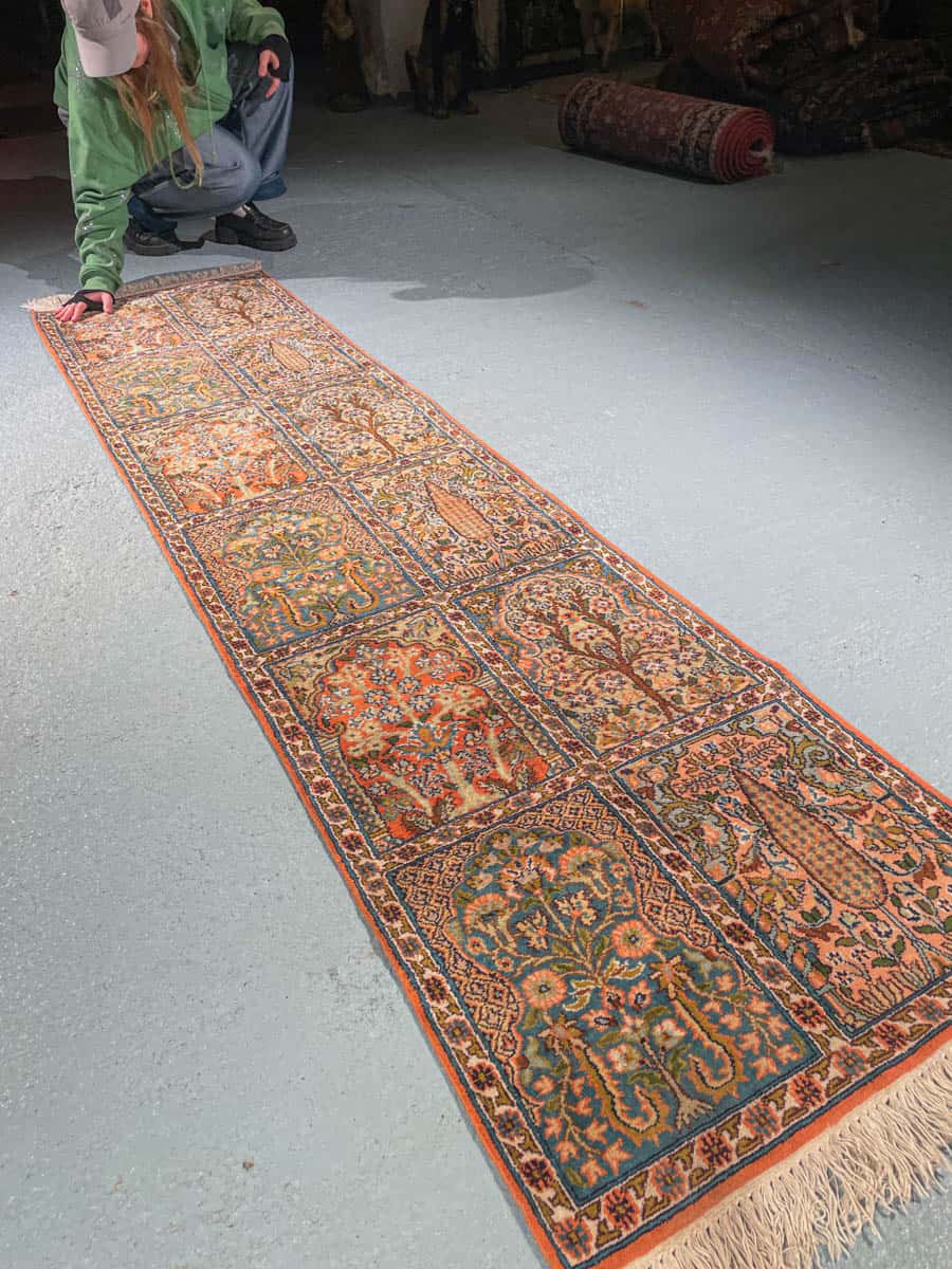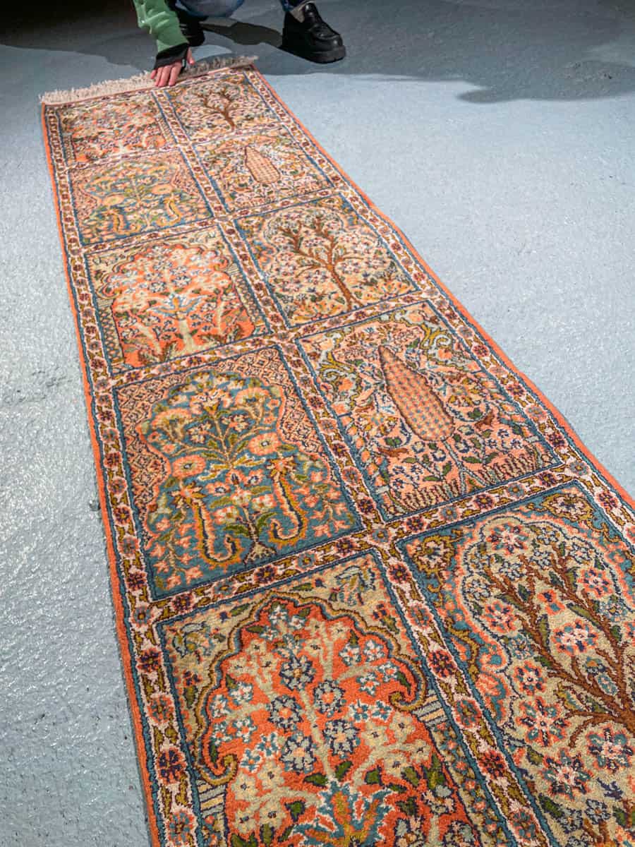 Tämä matto sijaitsee Galleriallamme osoitteessa Kankurinkatu 7, Punavuori – jos haluat tulla katsomaan sitä paikan päälle, sovithan näytön viestitse tai puhelimitse.