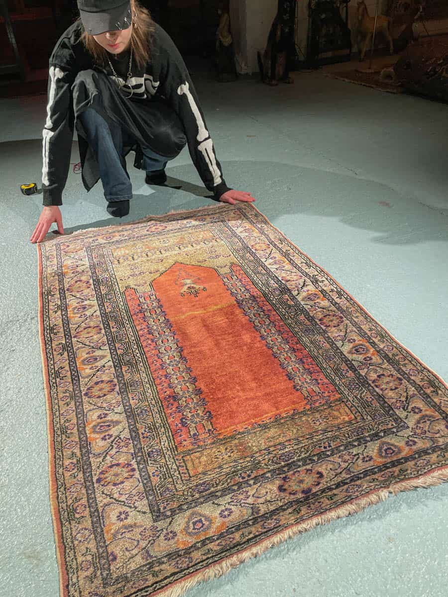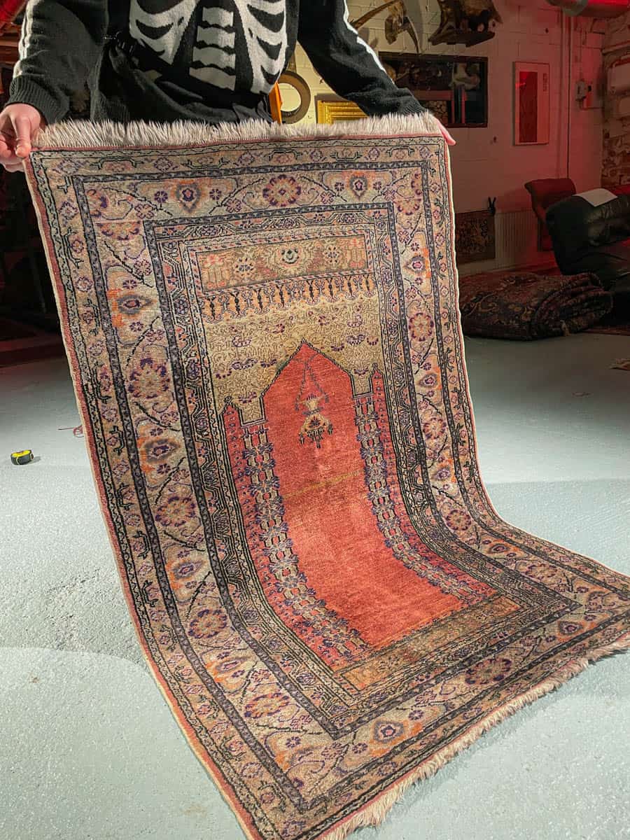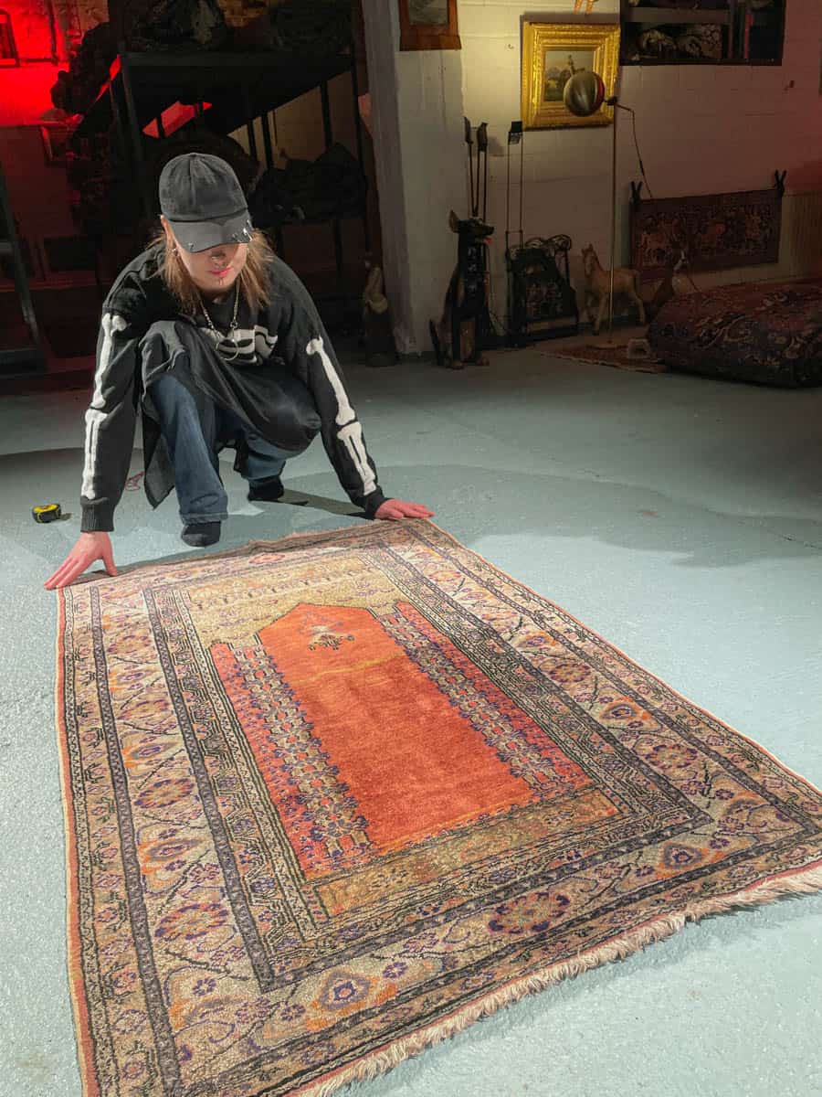 Tämä matto sijaitsee Galleriallamme osoitteessa Kankurinkatu 7, Punavuori – jos haluat tulla katsomaan sitä paikan päälle, sovithan näytön viestitse tai puhelimitse.