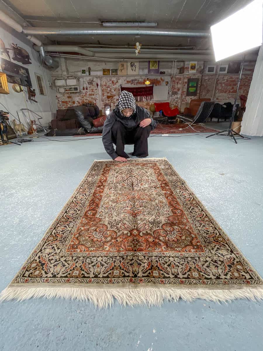 Tämä matto sijaitsee Galleriallamme osoitteessa Kankurinkatu 7, Punavuori – jos haluat tulla katsomaan sitä paikan päälle, sovithan näytön viestitse tai puhelimitse.