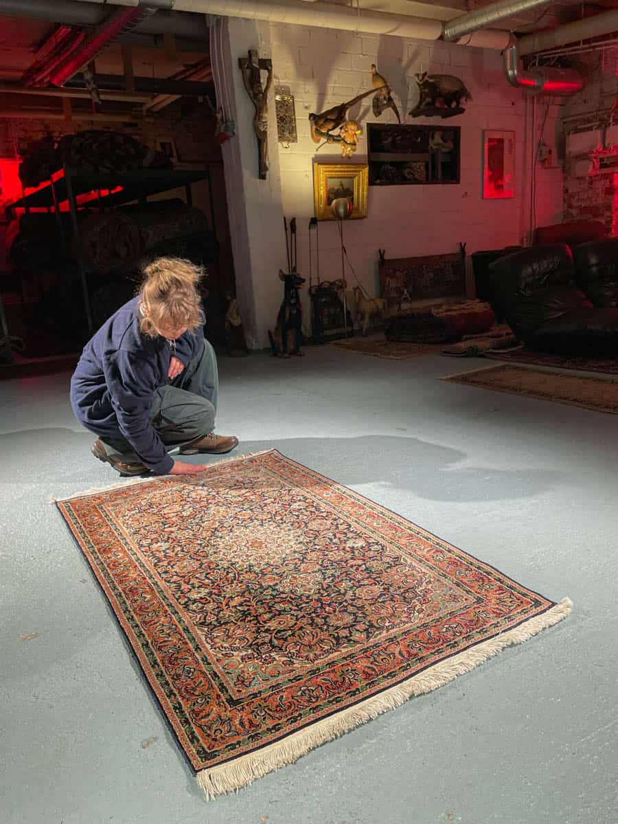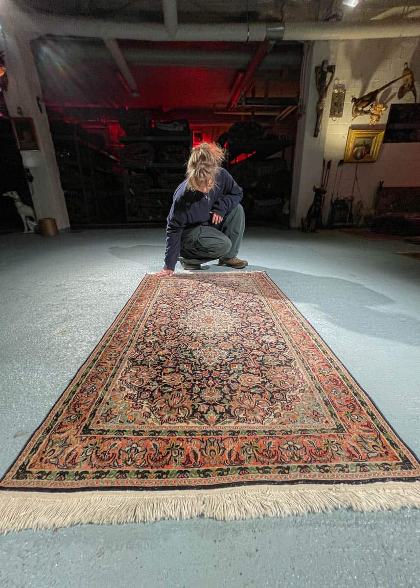 Tämä matto sijaitsee Galleriallamme osoitteessa Kankurinkatu 7, Punavuori – jos haluat tulla katsomaan sitä paikan päälle, sovithan näytön viestitse tai puhelimitse.