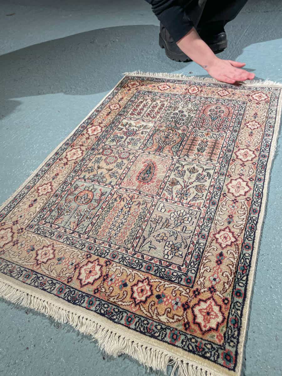 Tämä matto sijaitsee Galleriallamme osoitteessa Kankurinkatu 7, Punavuori – jos haluat tulla katsomaan sitä paikan päälle, sovithan näytön viestitse tai puhelimitse.