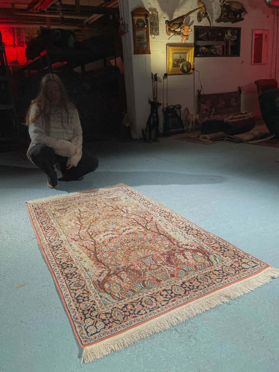 Tämä matto sijaitsee Galleriallamme osoitteessa Kankurinkatu 7, Punavuori – jos haluat tulla katsomaan sitä paikan päälle, sovithan näytön viestitse tai puhelimitse.