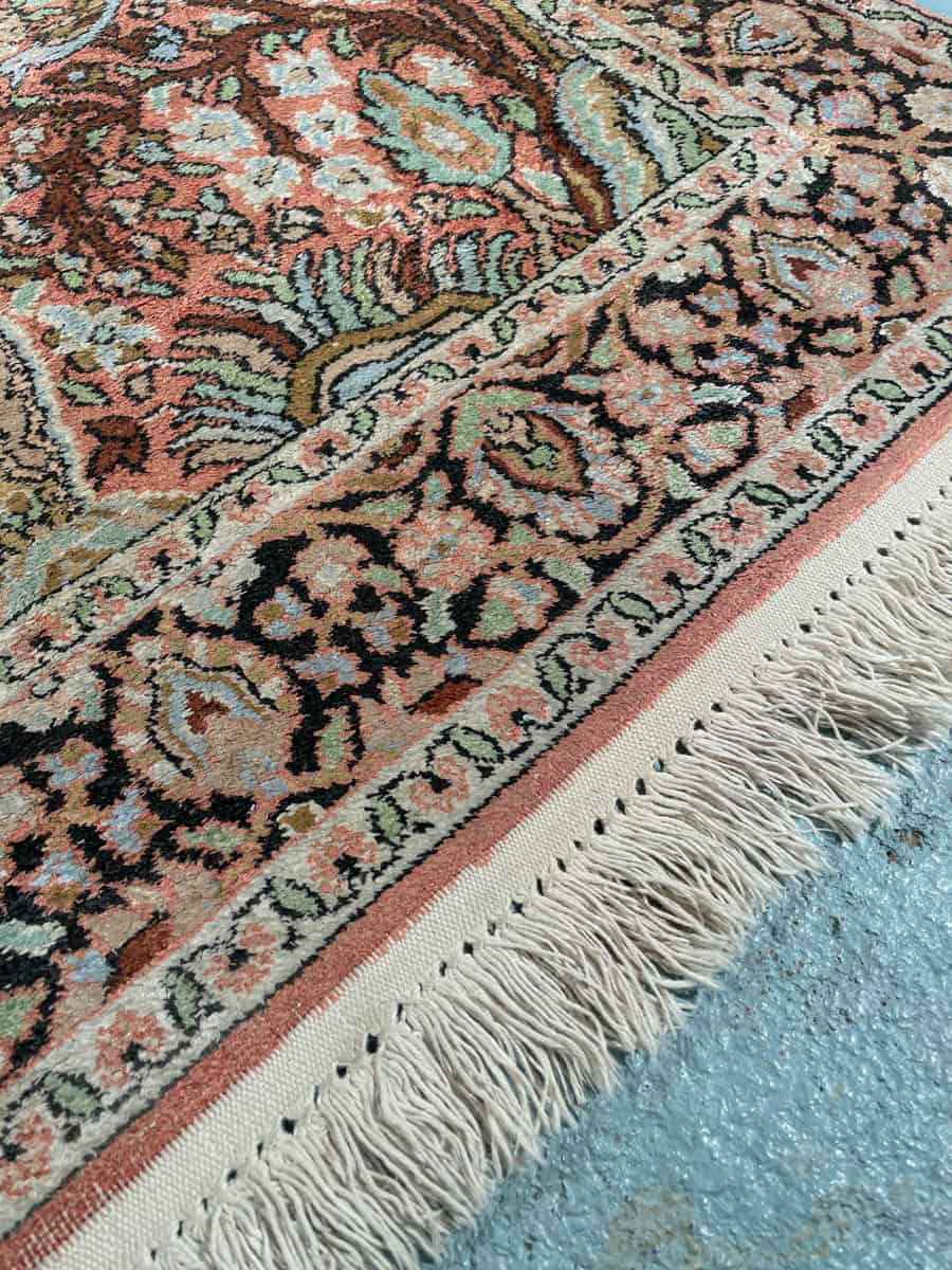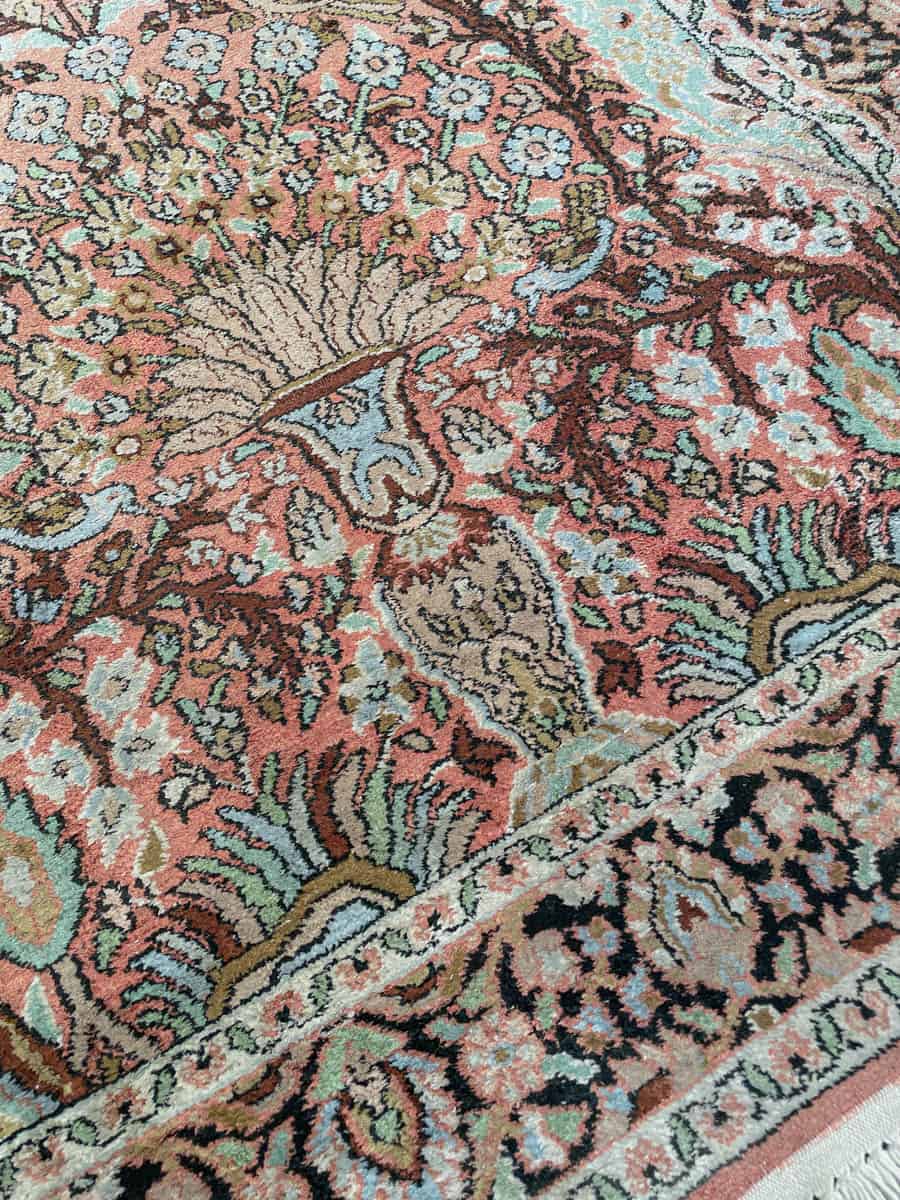 Upea maanläheinen Kasmir-silkkimatto yksityiskohtaisilla kuvioinneilla. Käsinsolmittu silkistä.