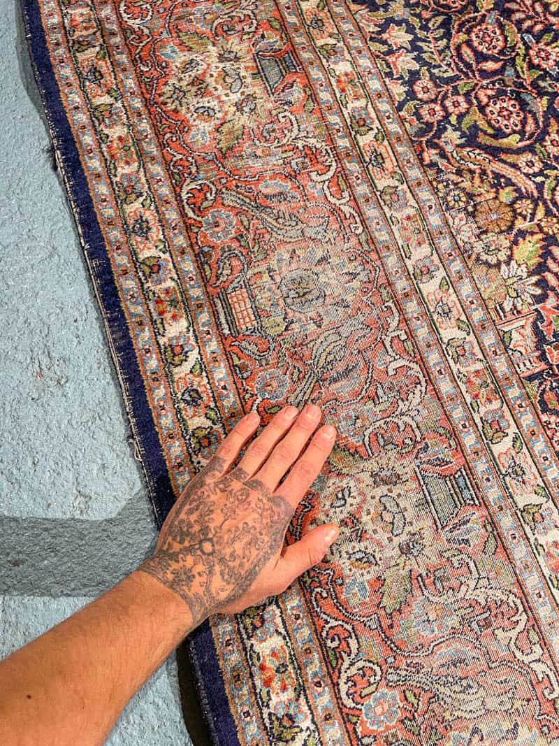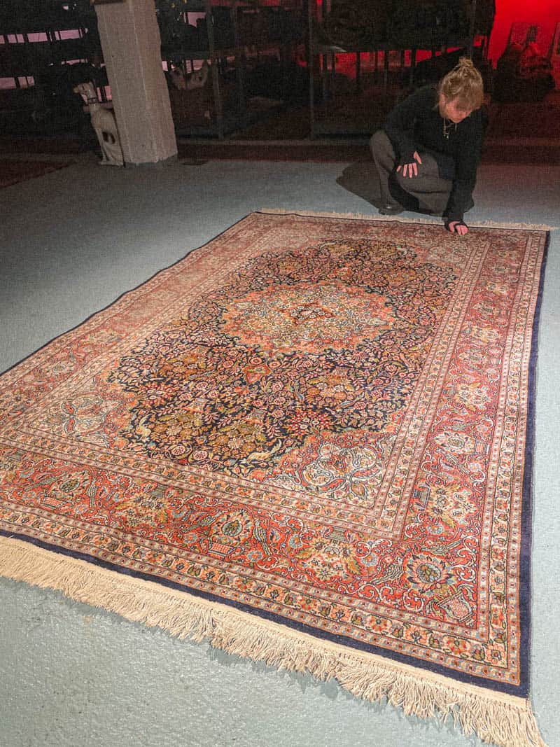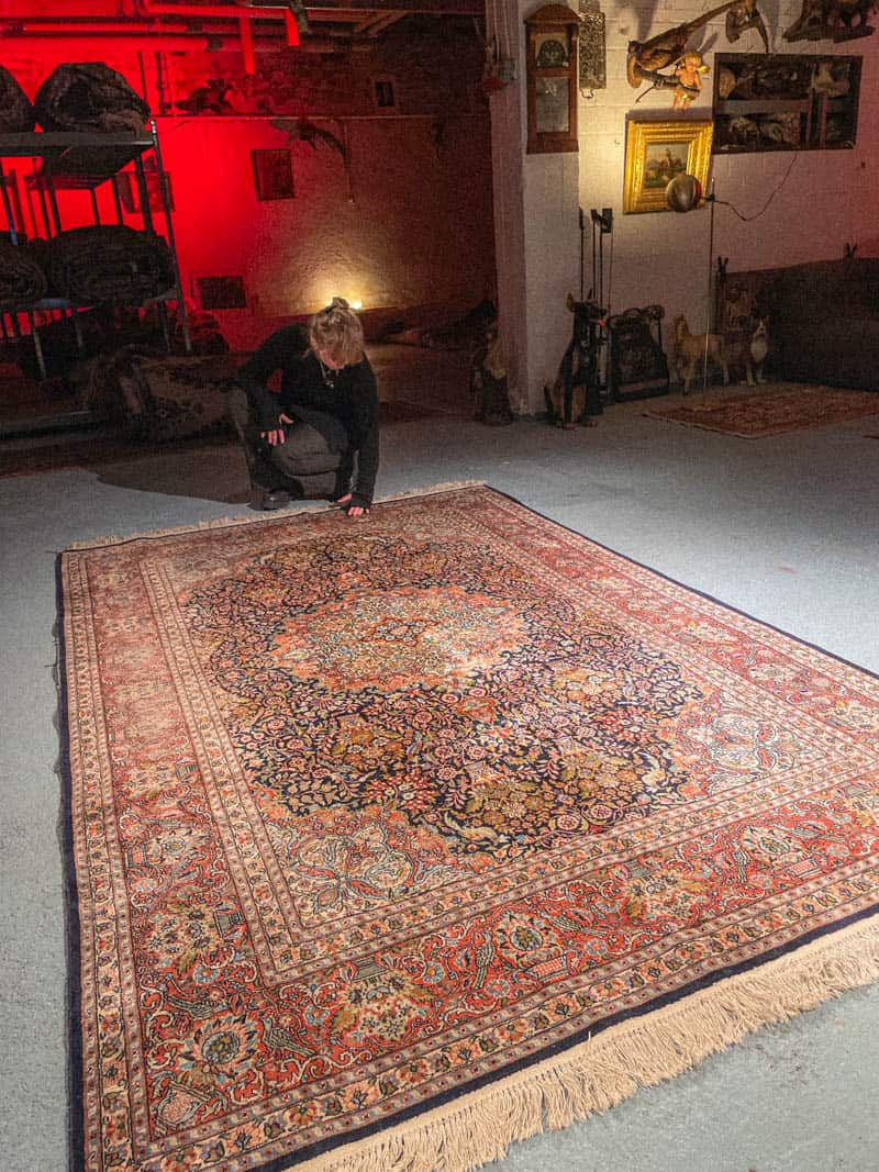 Tämä matto sijaitsee Galleriallamme osoitteessa Kankurinkatu 7, Punavuori – jos haluat tulla katsomaan sitä paikan päälle, sovithan näytön viestitse tai puhelimitse.