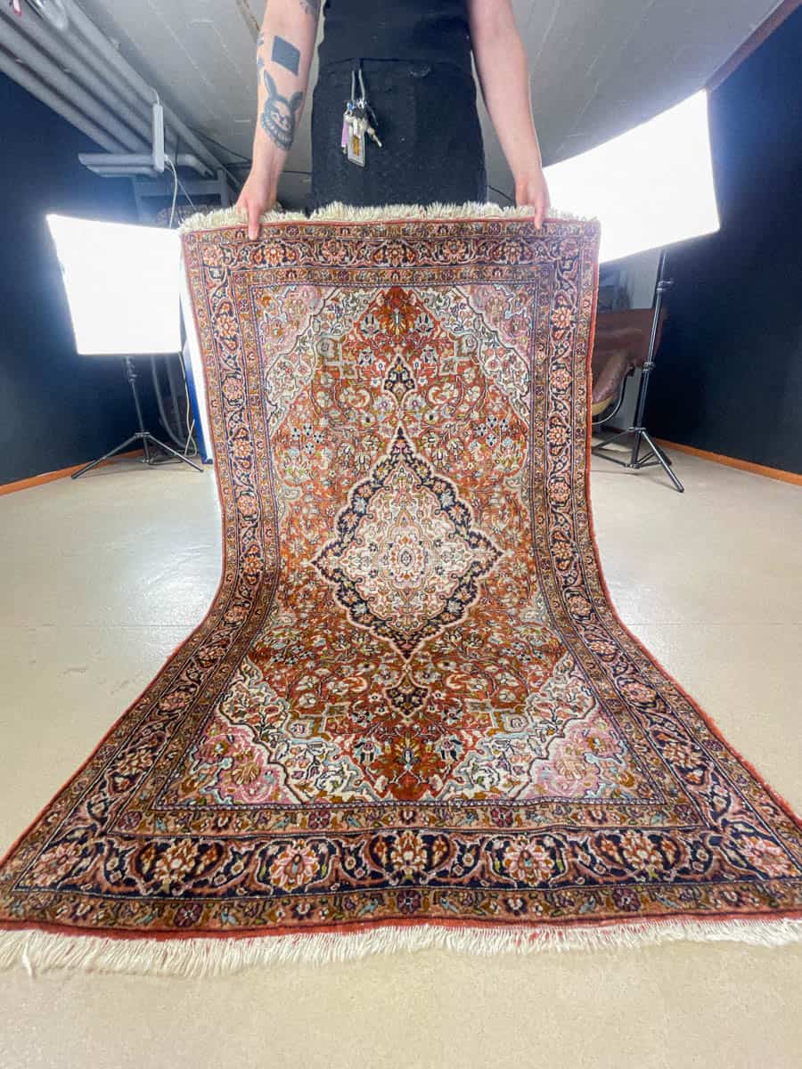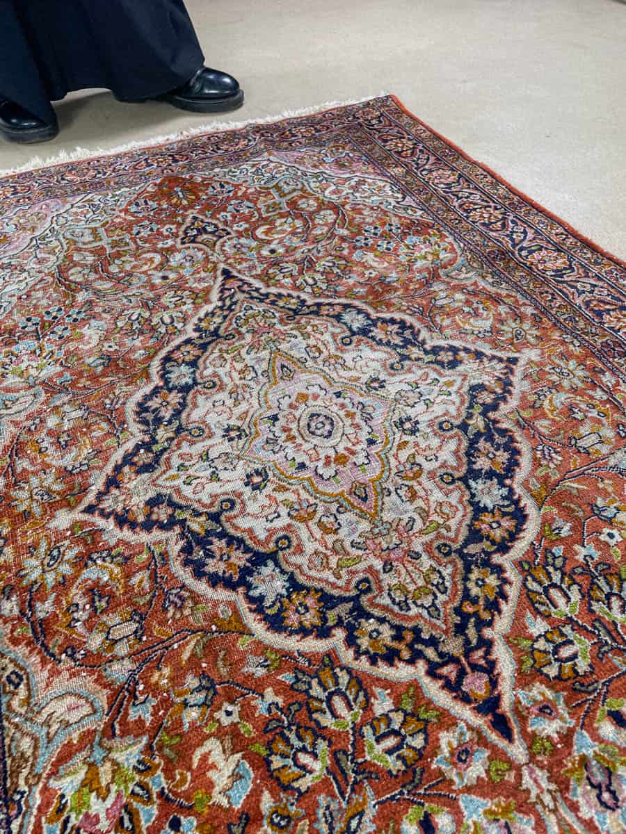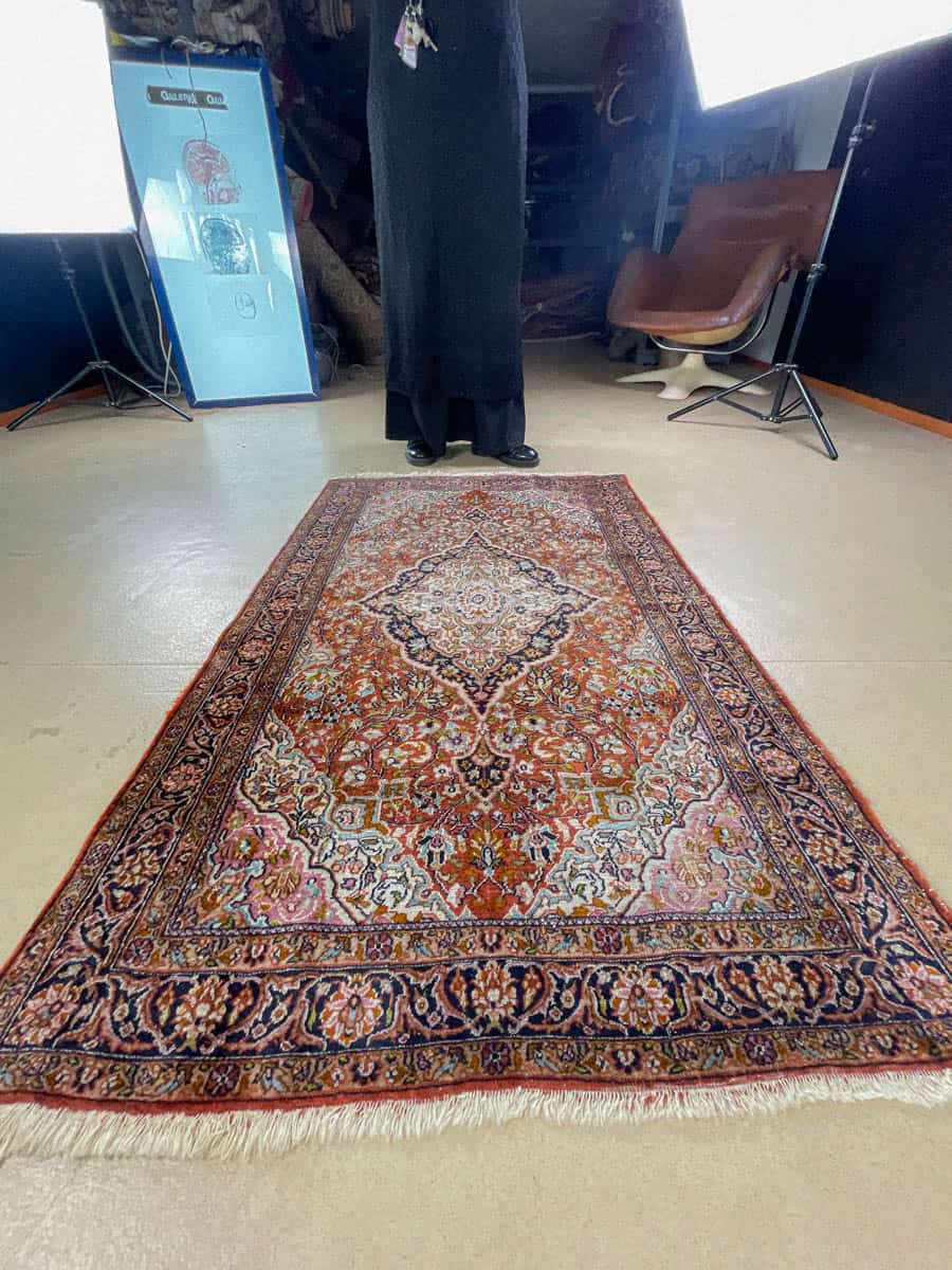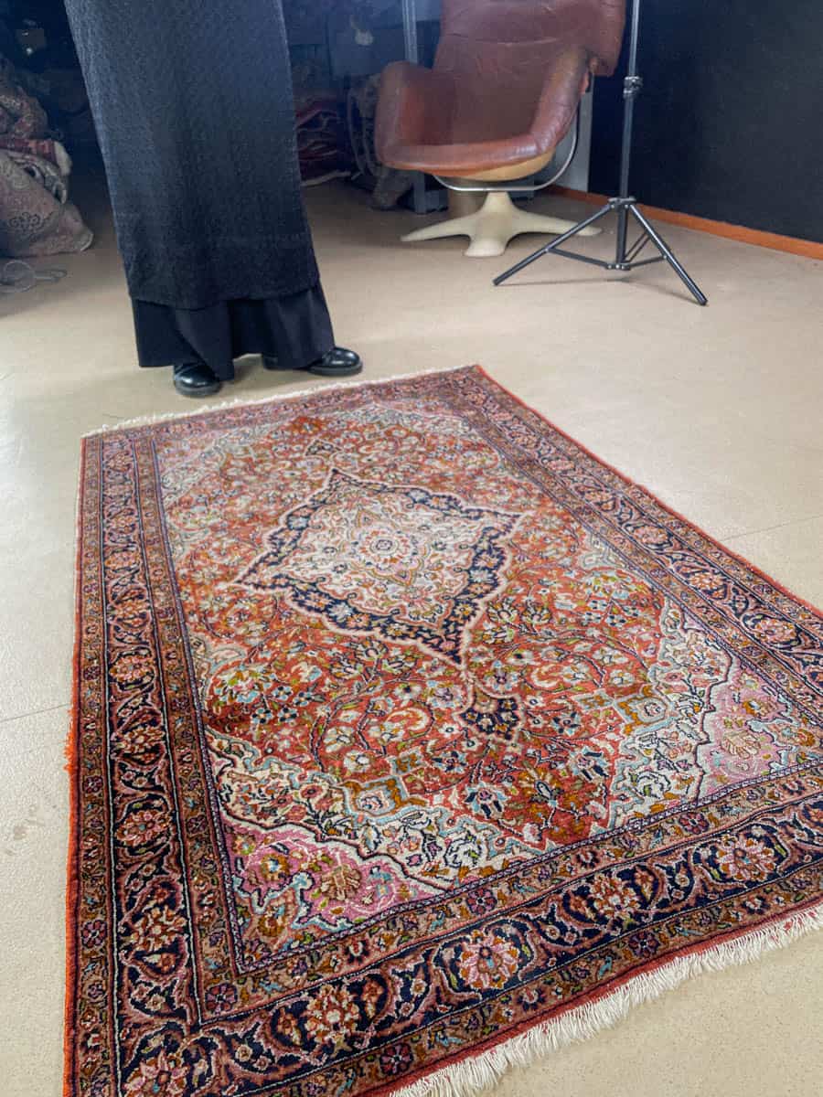 Tämä matto sijaitsee Galleriallamme osoitteessa Kankurinkatu 7, Punavuori – jos haluat tulla katsomaan sitä paikan päälle, sovithan näytön viestitse tai puhelimitse.