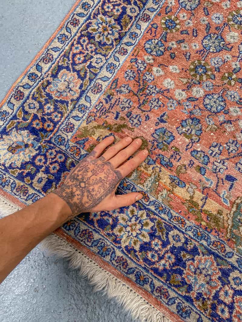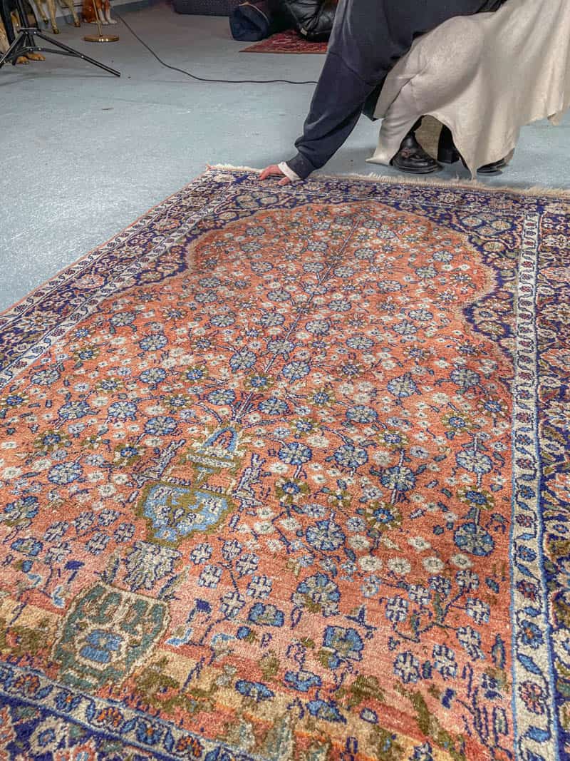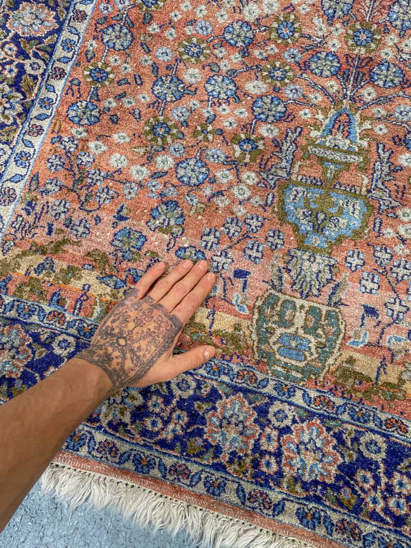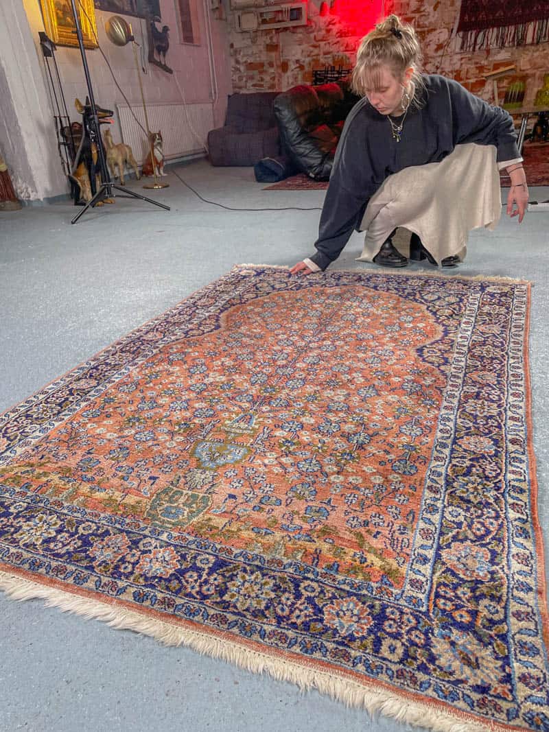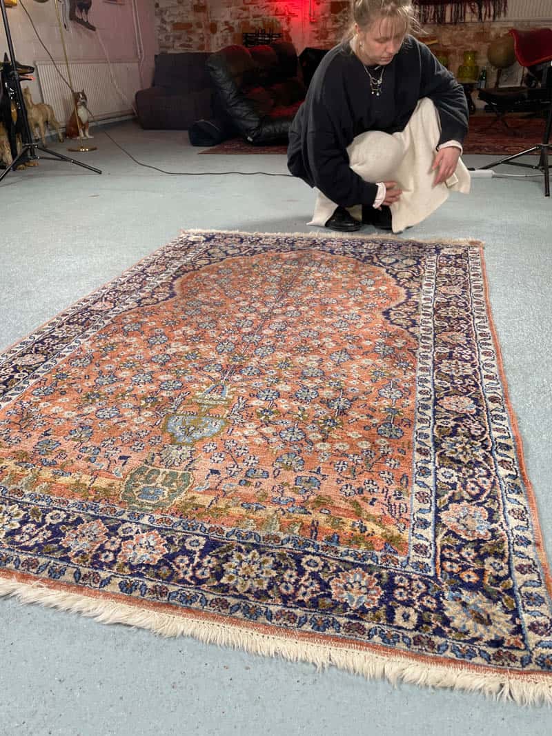 Tämä matto sijaitsee Galleriallamme osoitteessa Kankurinkatu 7, Punavuori – jos haluat tulla katsomaan sitä paikan päälle, sovithan näytön viestitse tai puhelimitse.
