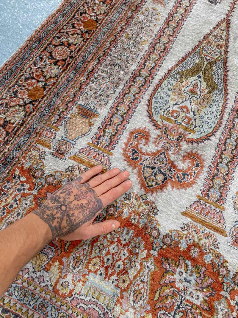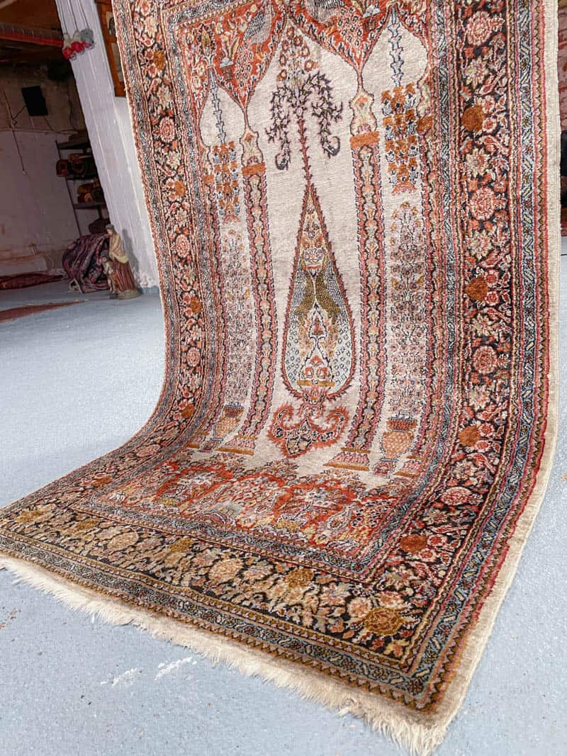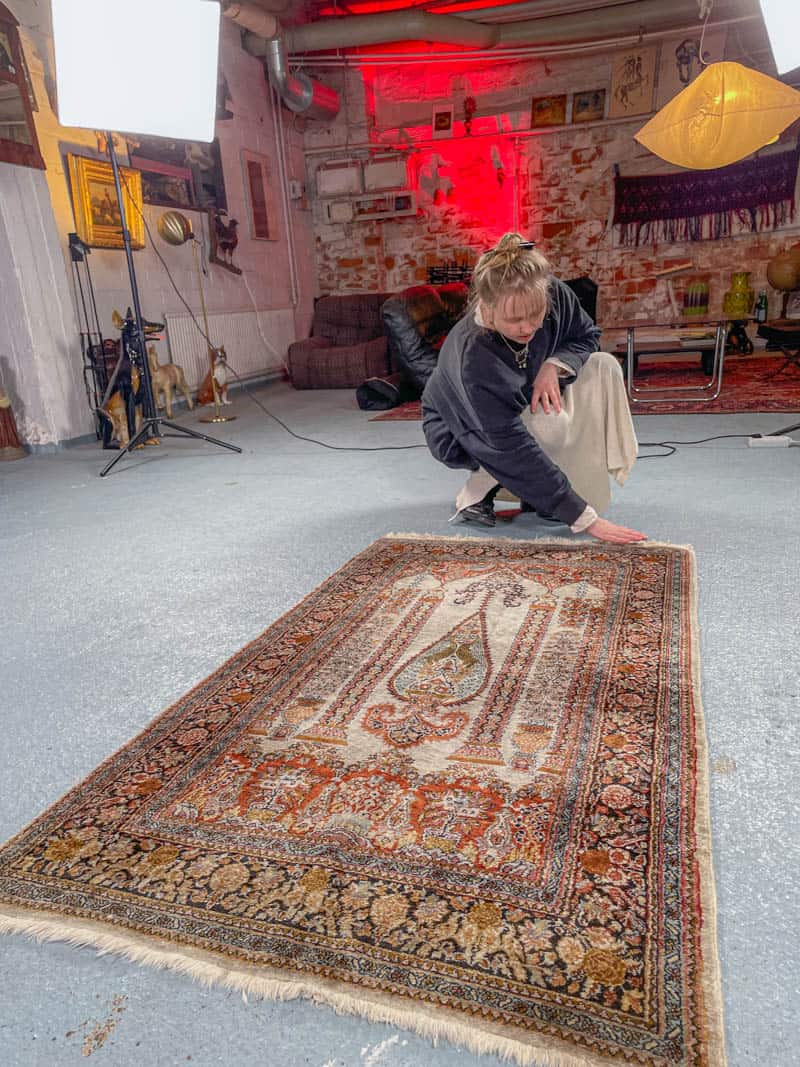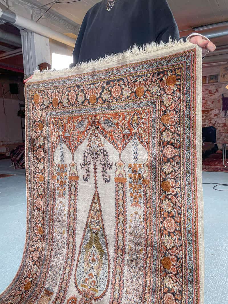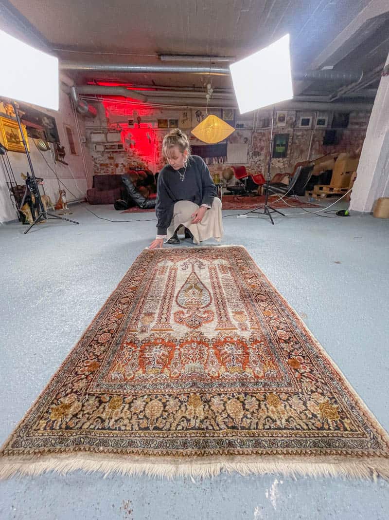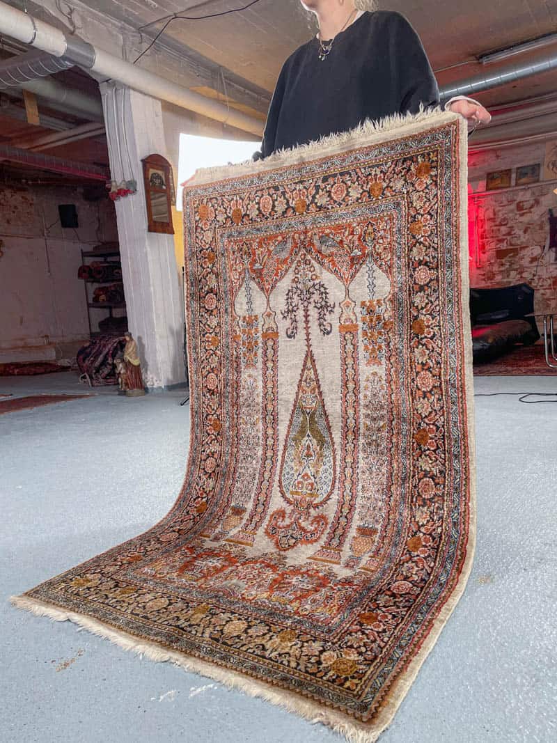 Tämä matto sijaitsee Galleriallamme osoitteessa Kankurinkatu 7, Punavuori – jos haluat tulla katsomaan sitä paikan päälle, sovithan näytön viestitse tai puhelimitse.