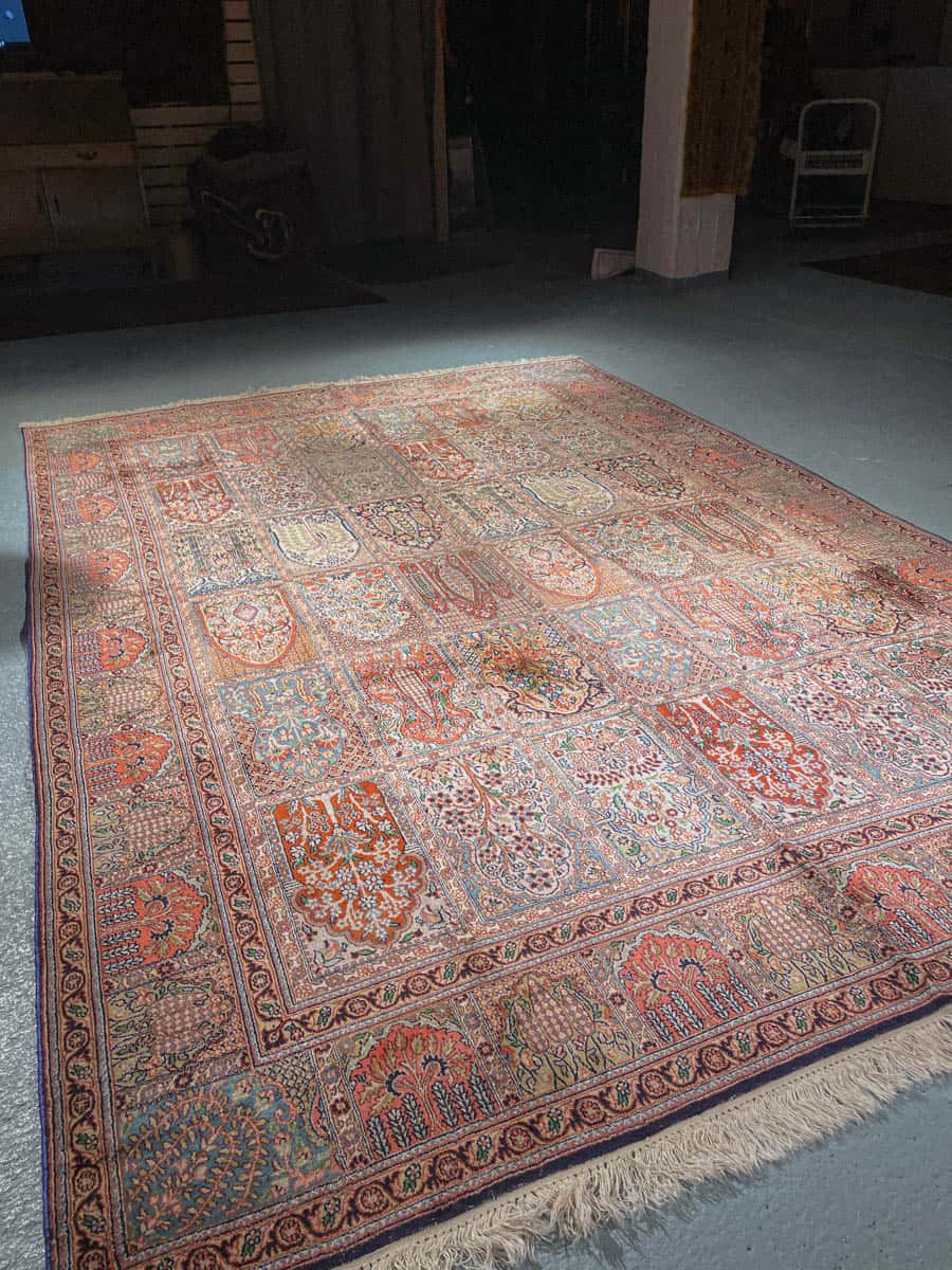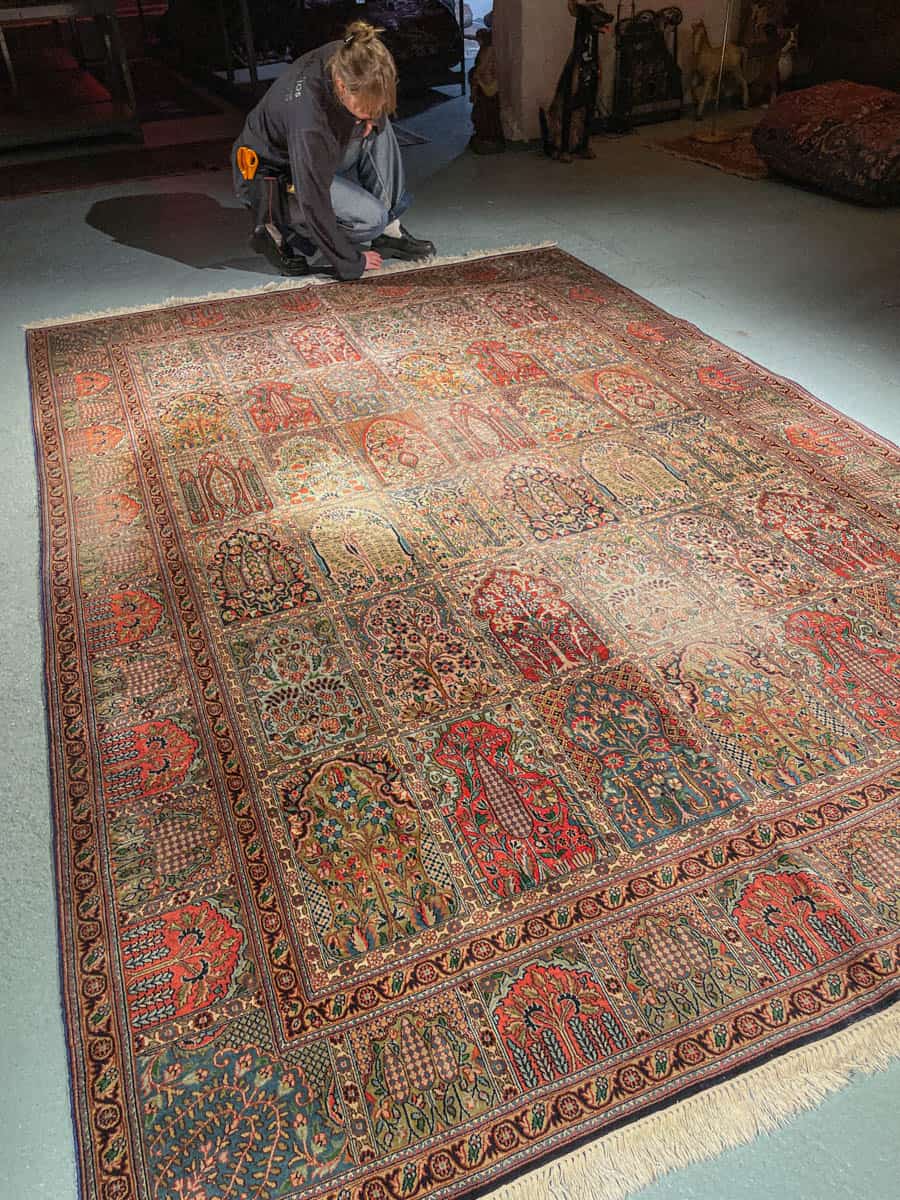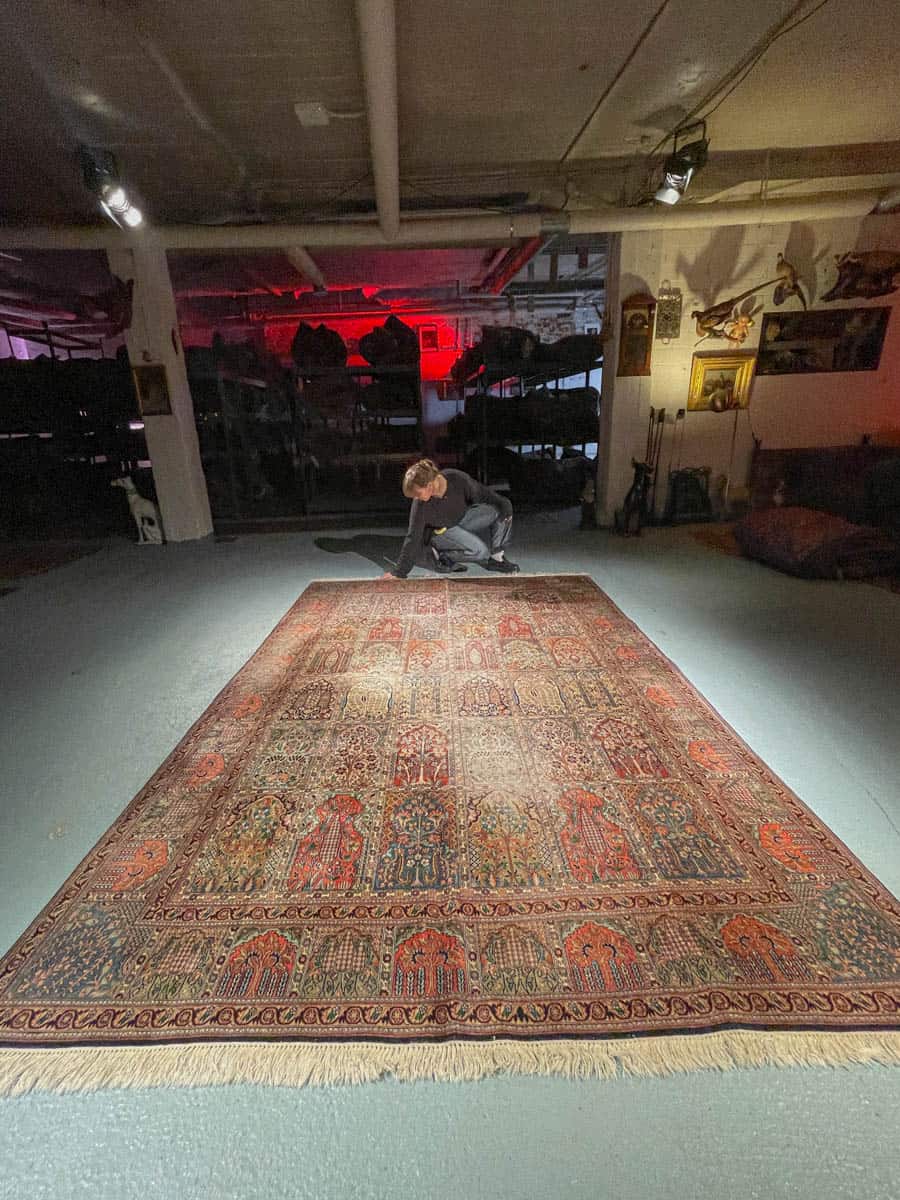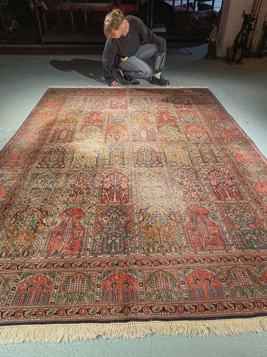 Tämä matto sijaitsee Galleriallamme osoitteessa Kankurinkatu 7, Punavuori – jos haluat tulla katsomaan sitä paikan päälle, sovithan näytön viestitse tai puhelimitse.