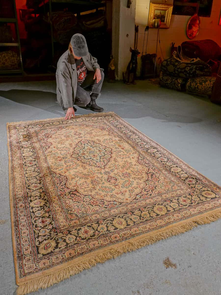 Tämä matto sijaitsee Galleriallamme osoitteessa Kankurinkatu 7, Punavuori – jos haluat tulla katsomaan sitä paikan päälle, sovithan näytön viestitse tai puhelimitse.
