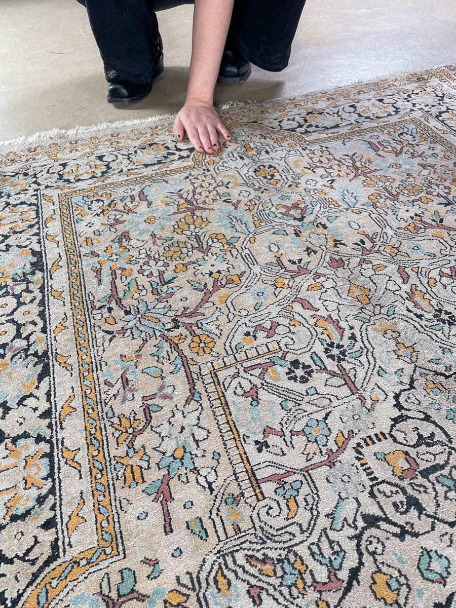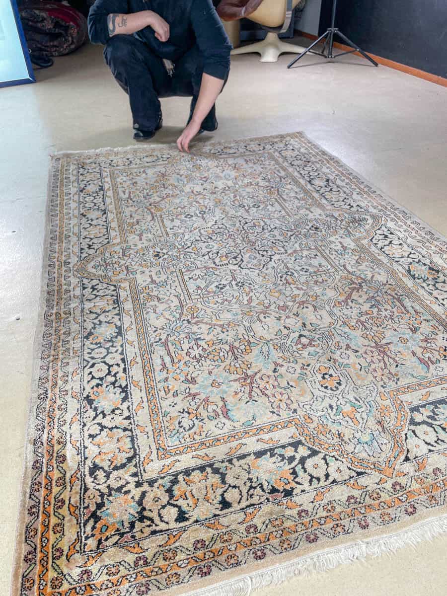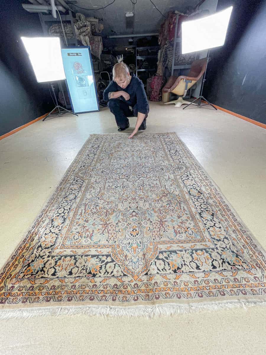 Tämä matto sijaitsee Galleriallamme osoitteessa Kankurinkatu 7, Punavuori – jos haluat tulla katsomaan sitä paikan päälle, sovithan näytön viestitse tai puhelimitse.