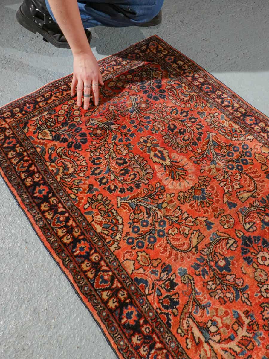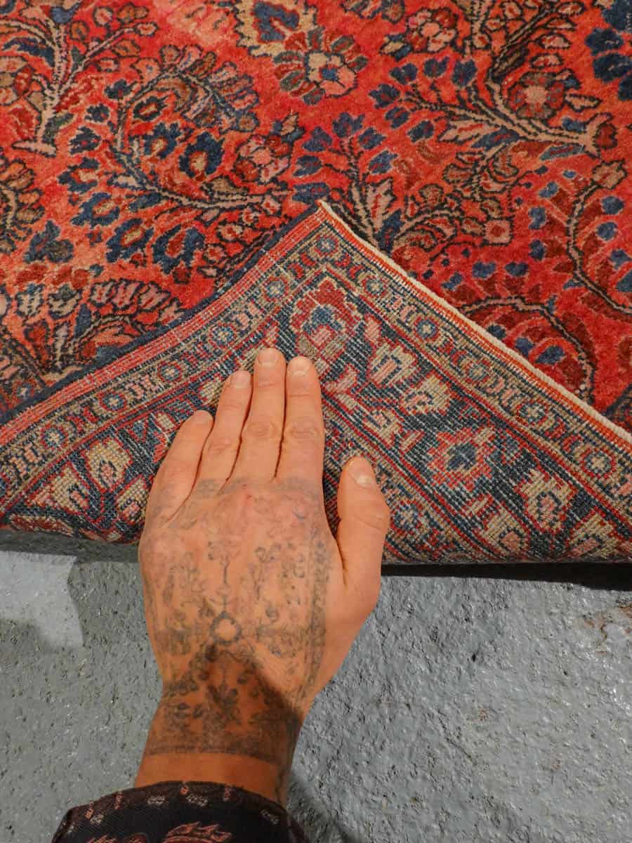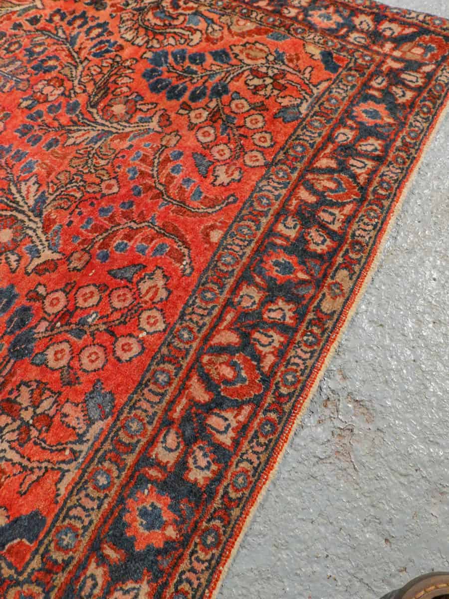 Uskomattoman kaunis antiikkinen Sarouk punertavalla väripaletilla ja koristeellisella kukkaiskuvioinnilla. Tyyli on niin sanottu US Sarouk, joita on valmistettu Persiassa 1920-luvulla Yhdysvaltojen markkinoille.