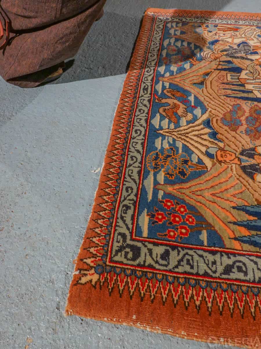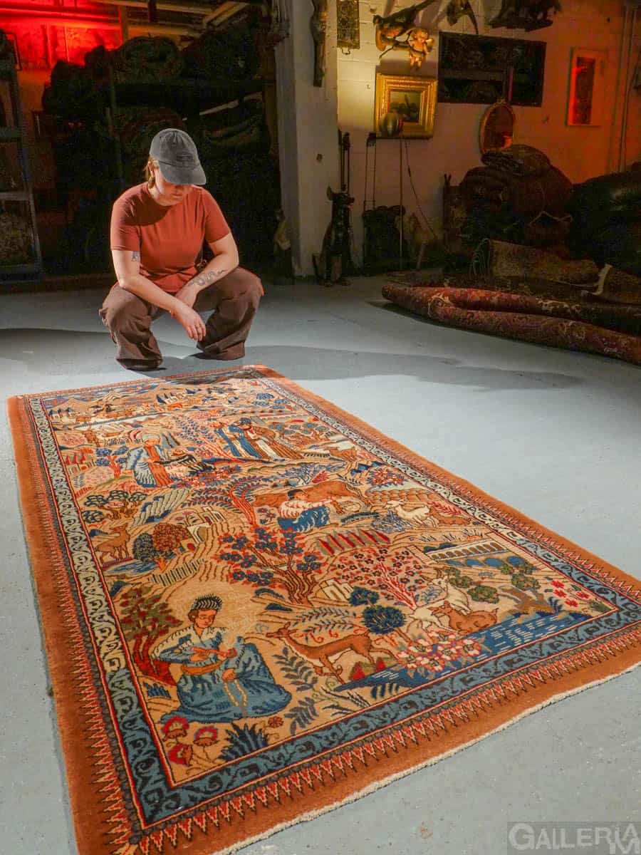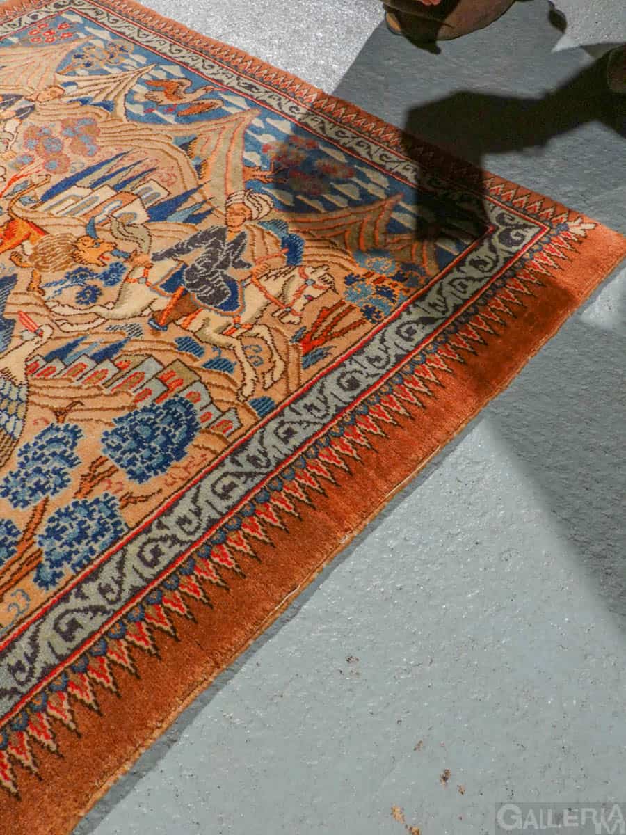 Tämä matto sijaitsee Galleriallamme osoitteessa Kankurinkatu 7, Punavuori – jos haluat tulla katsomaan sitä paikan päälle, sovithan näytön viestitse tai puhelimitse.