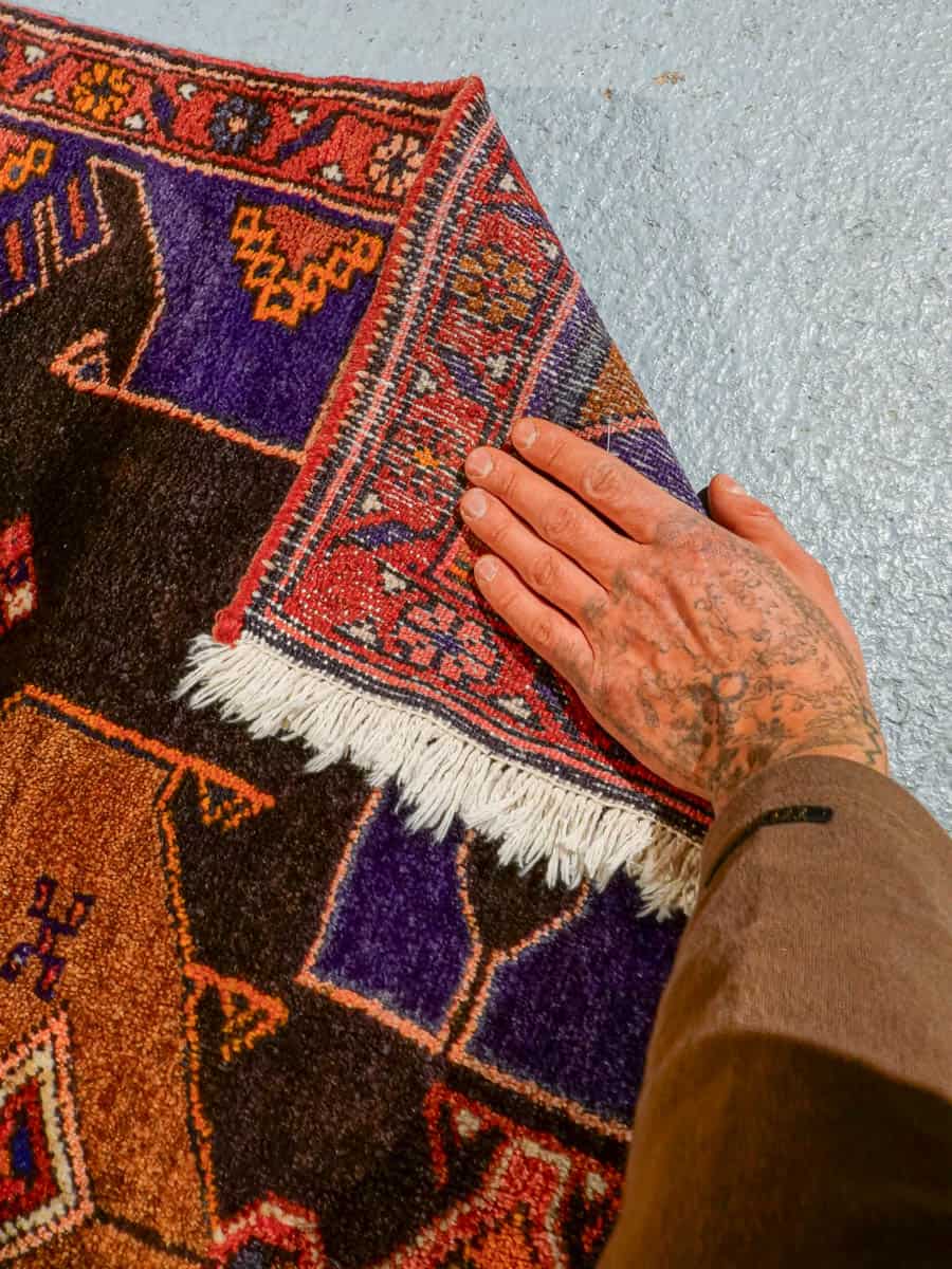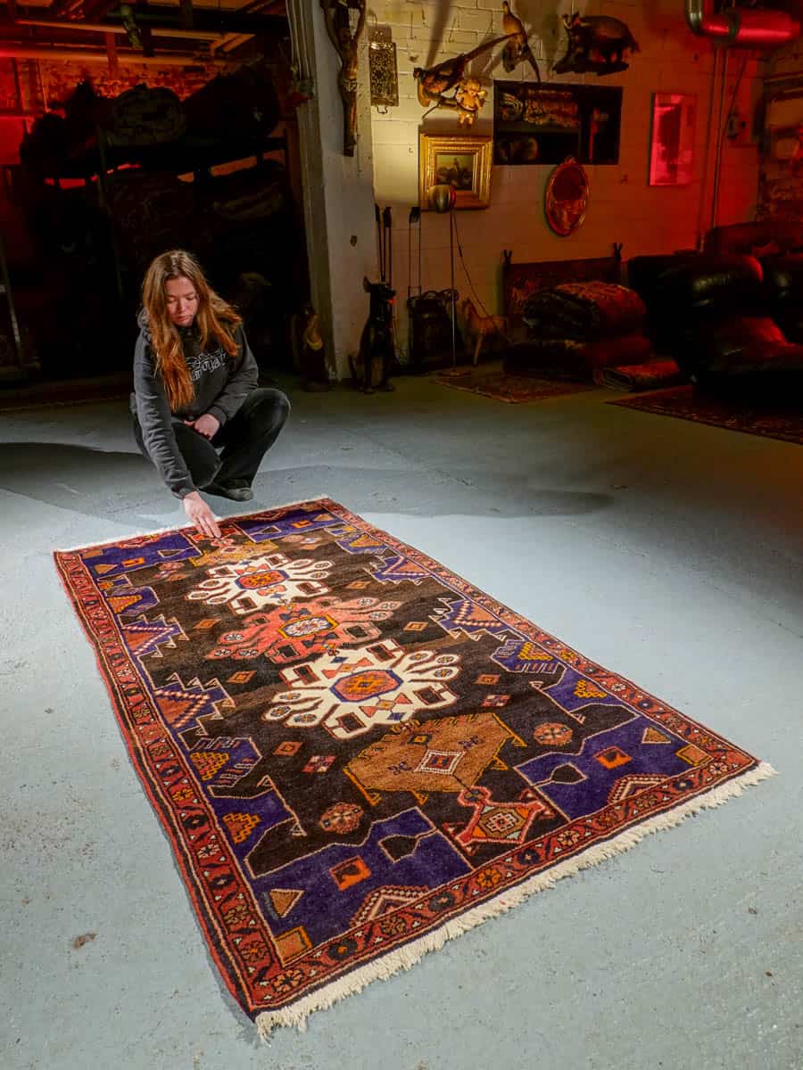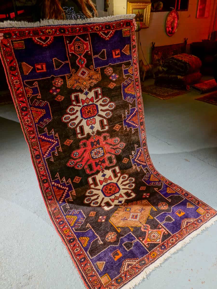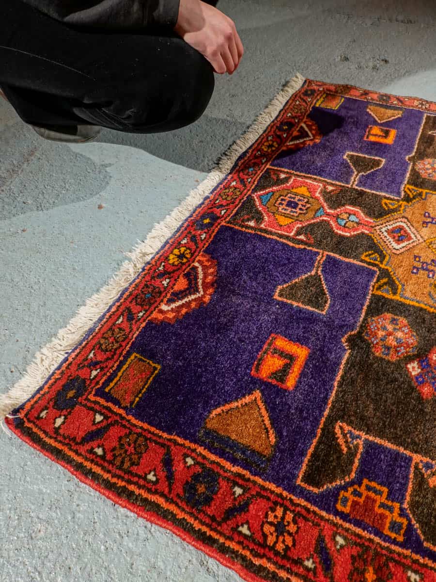 Tämä matto sijaitsee Galleriallamme osoitteessa Kankurinkatu 7, Punavuori – jos haluat tulla katsomaan sitä paikan päälle, sovithan näytön viestitse tai puhelimitse.