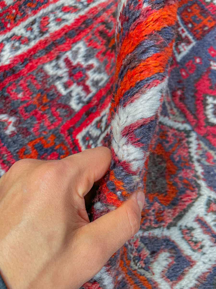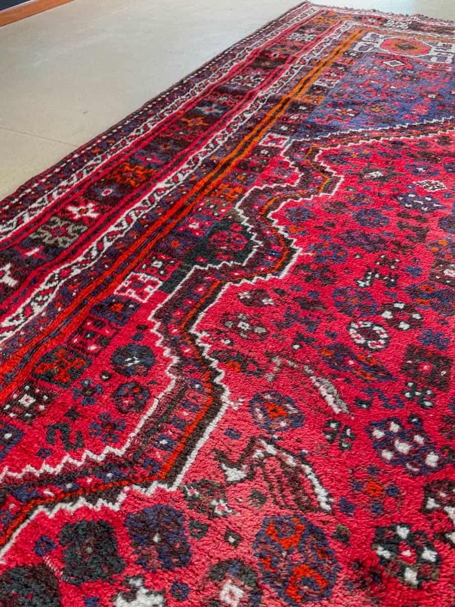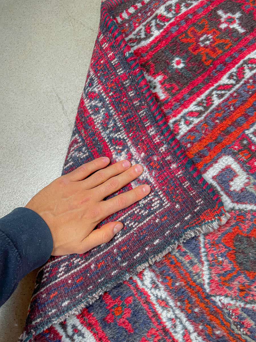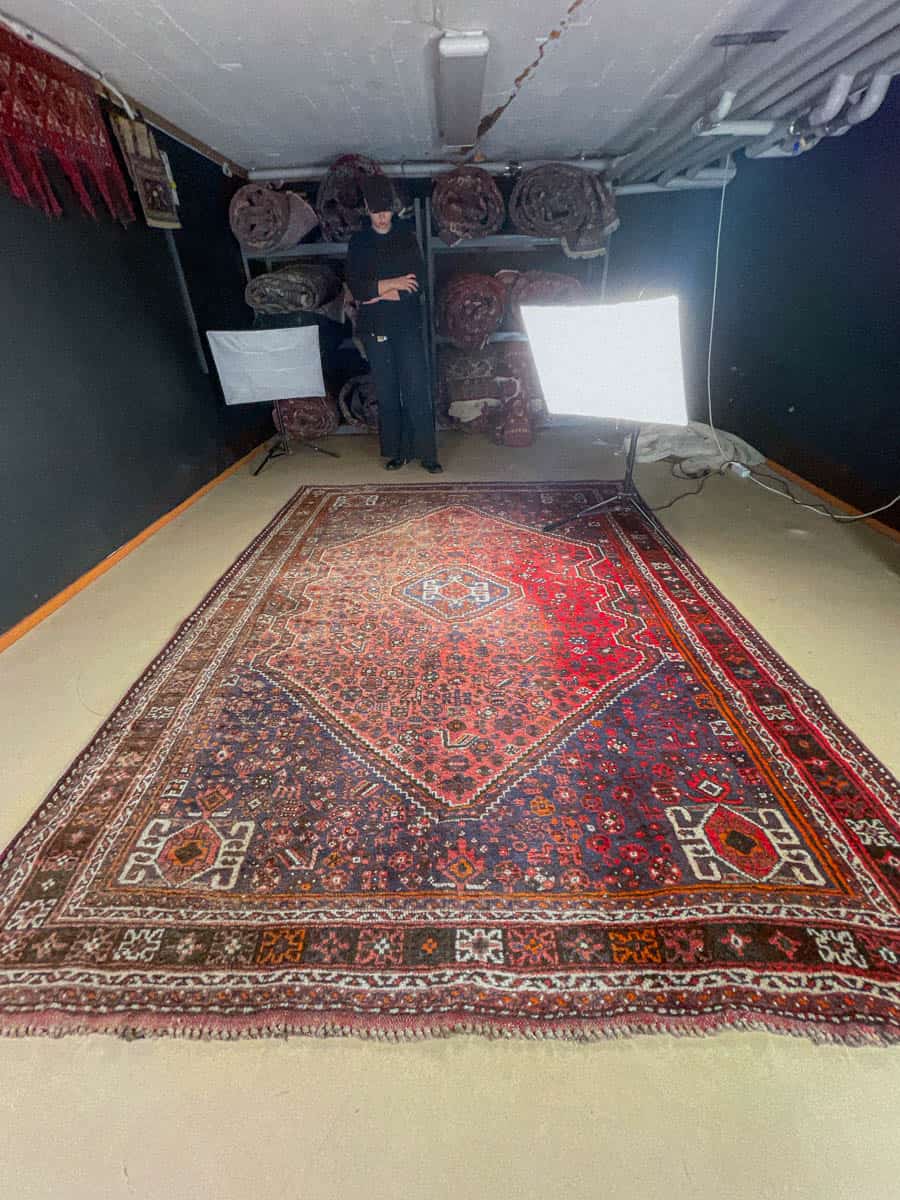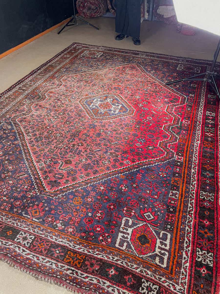 Tämä matto sijaitsee Töölön varastollamme – jos haluat tulla katsomaan sitä paikan päälle, sovithan näytön viestitse tai puhelimitse.